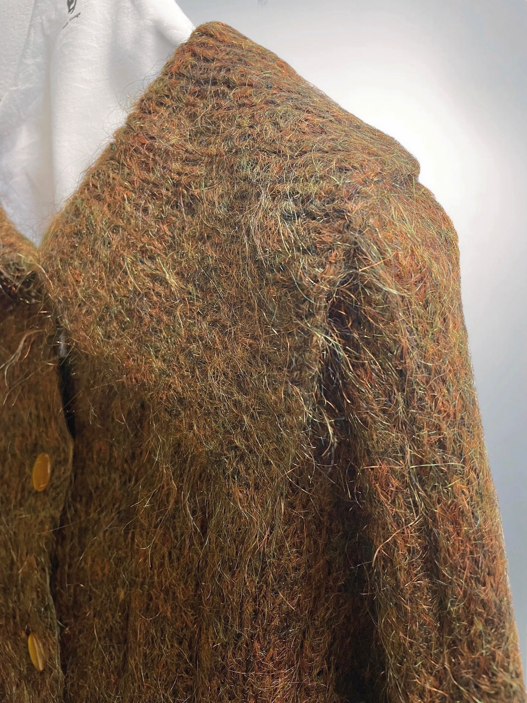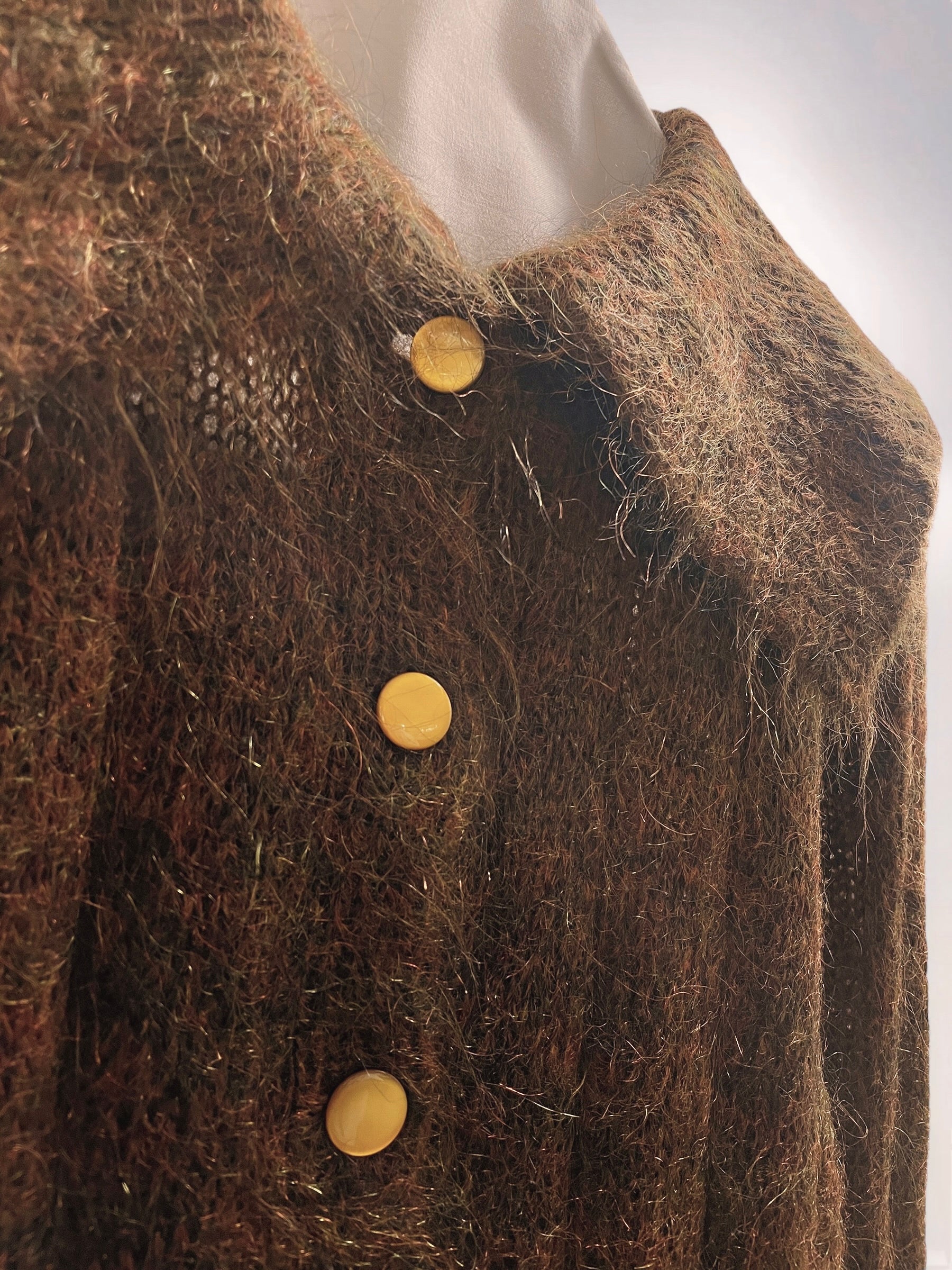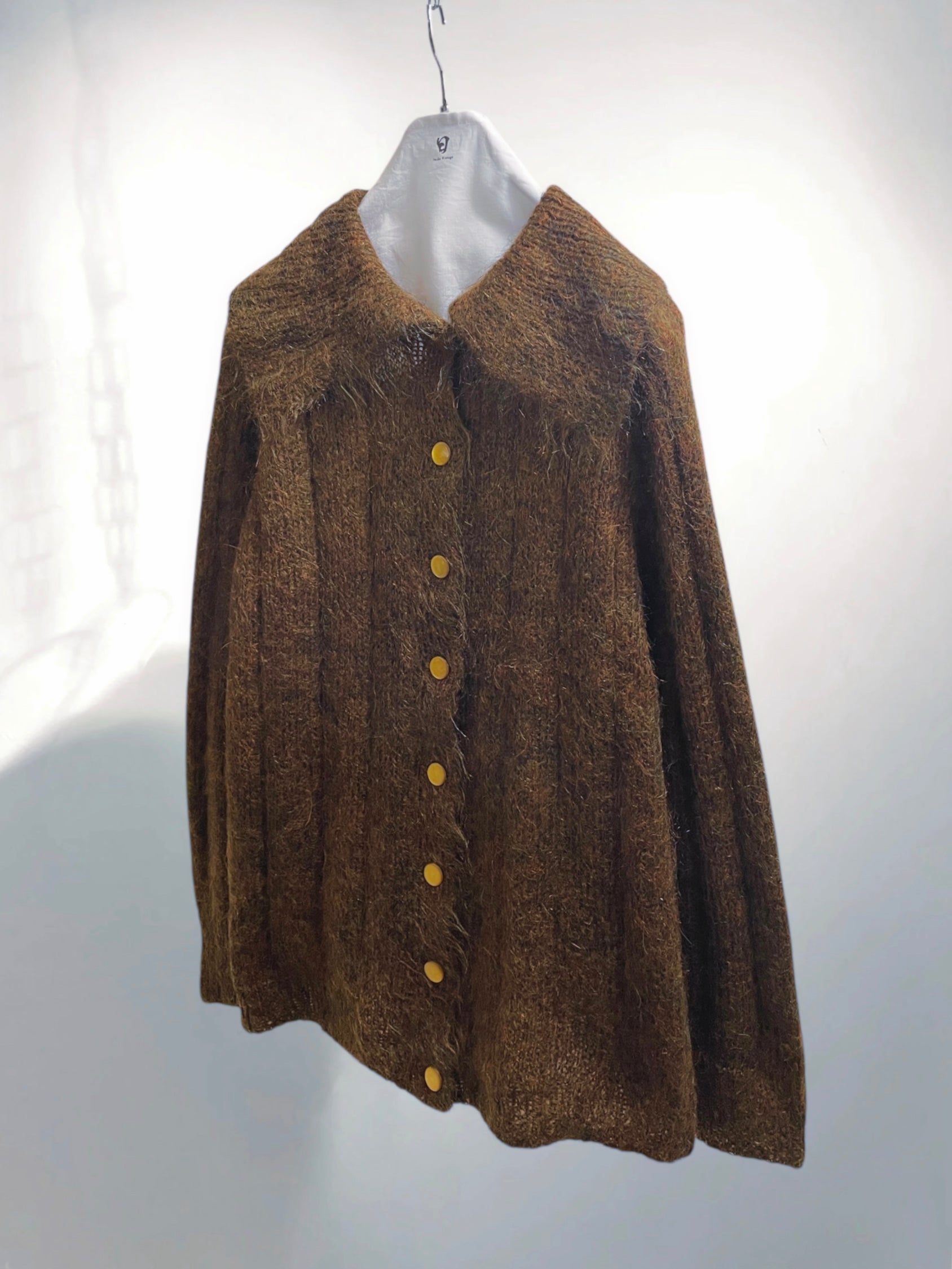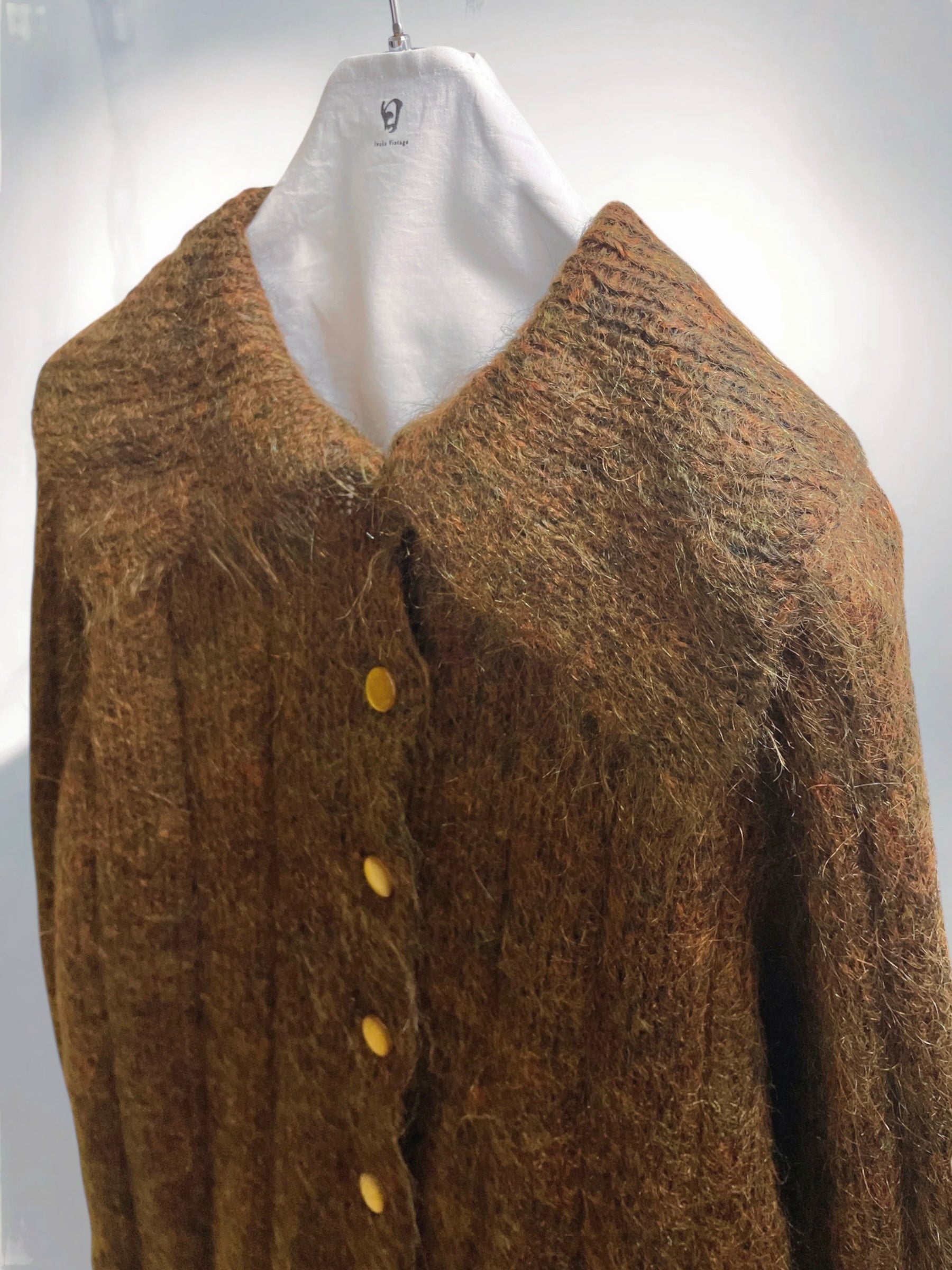 Vintage Brown Mohair Cardigan with Oversized Collar (70s–Early 80s) – Shaggy Texture