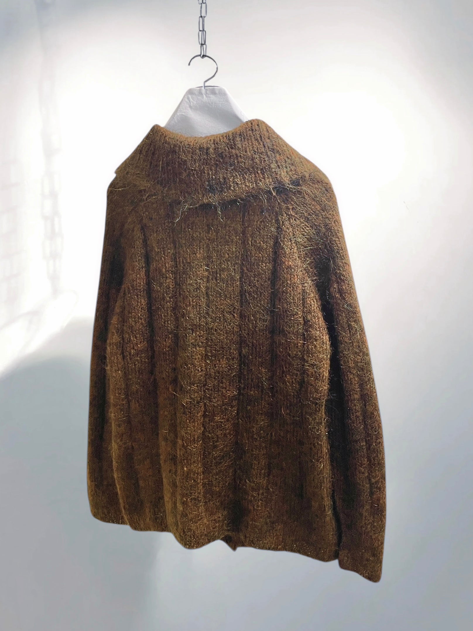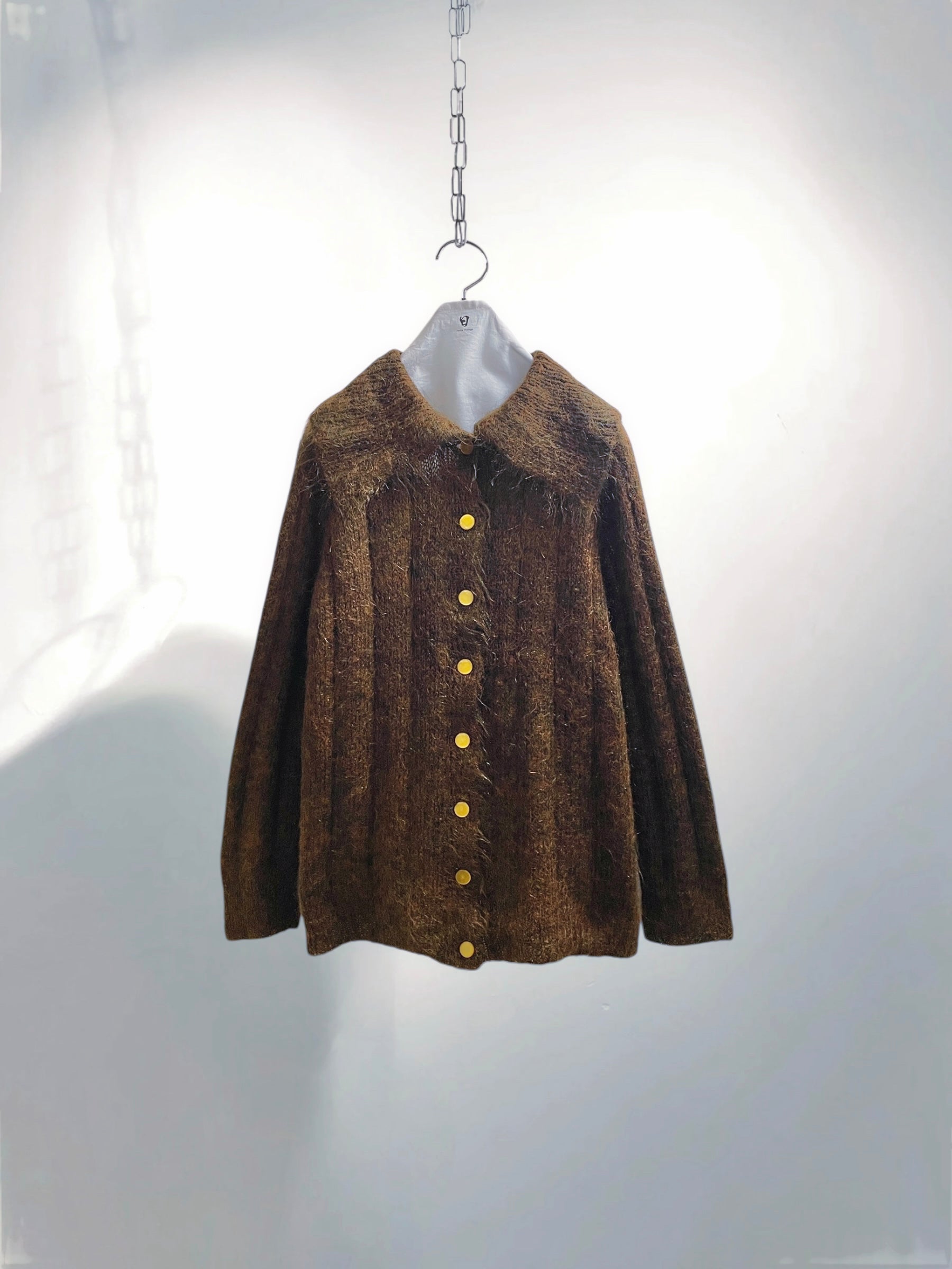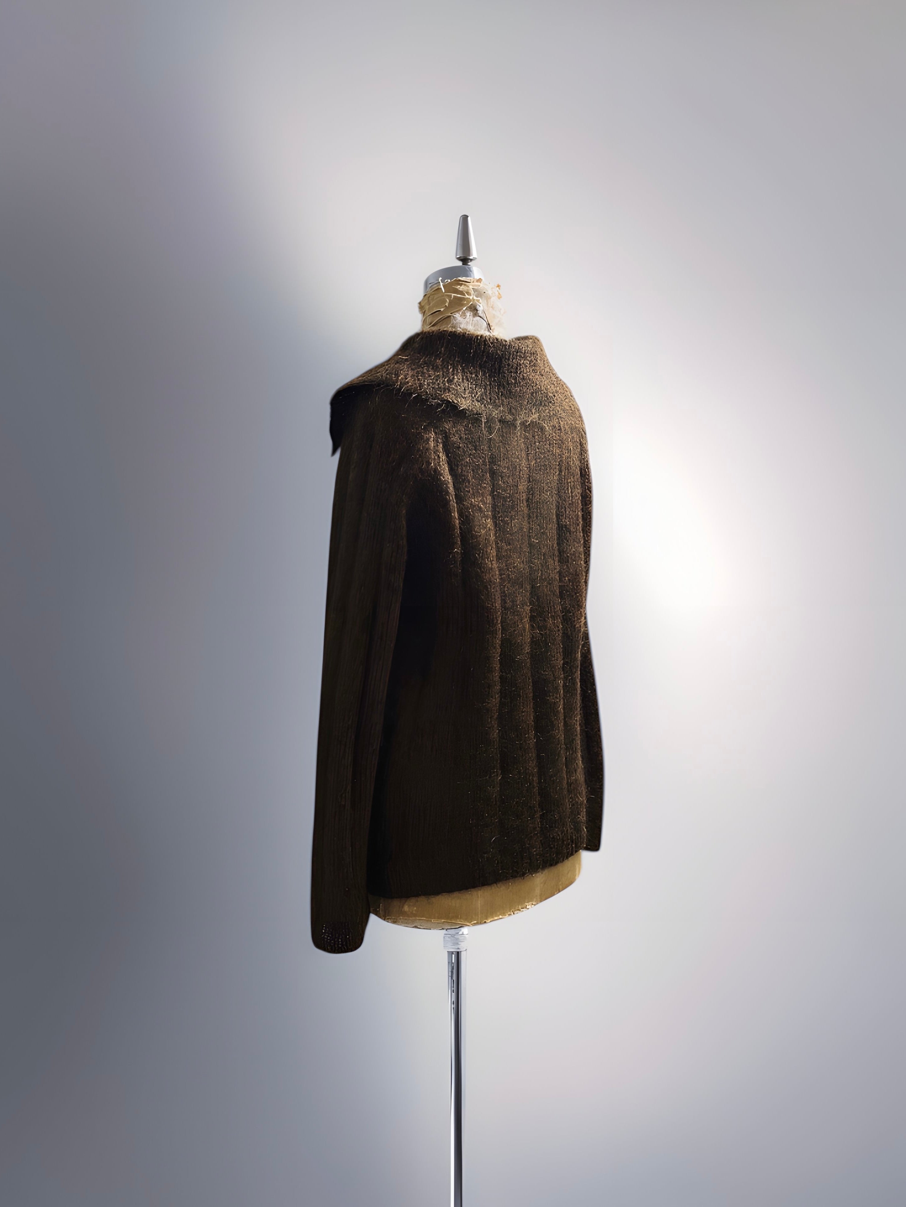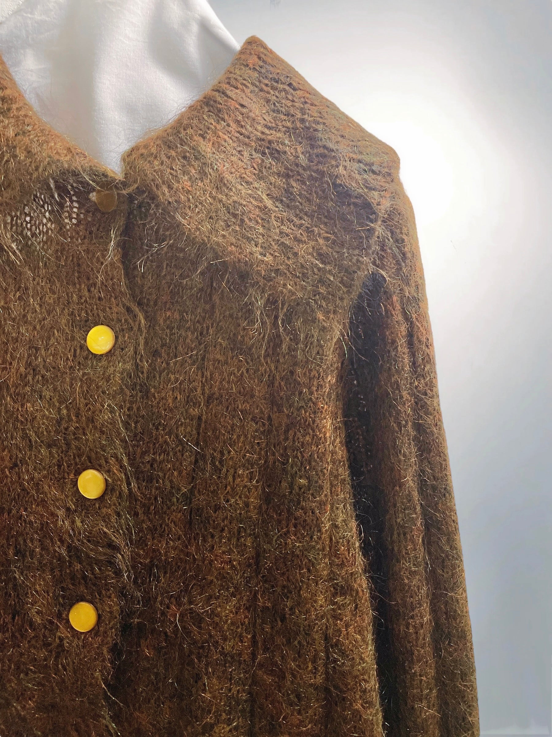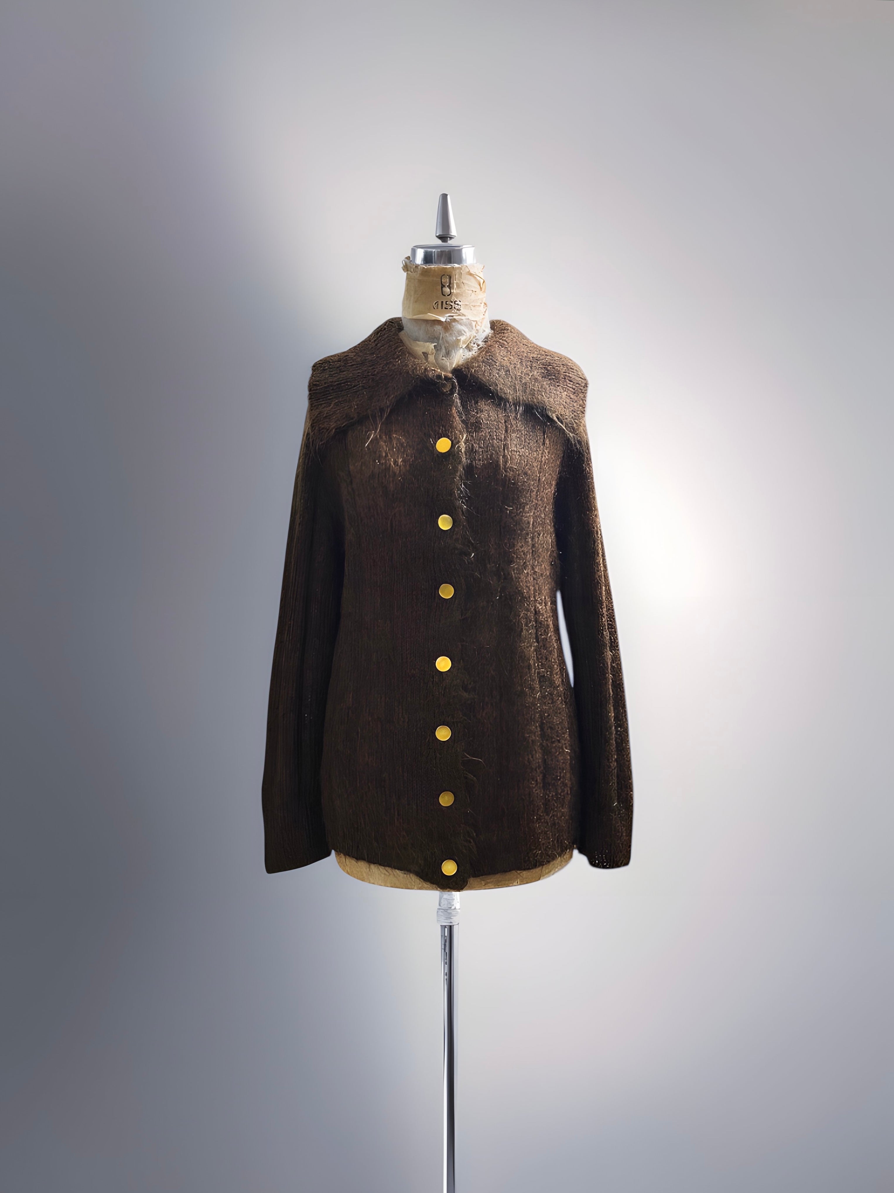 Vintage Brown Mohair Cardigan with Oversized Collar (70s–Early 80s) – Shaggy Texture
