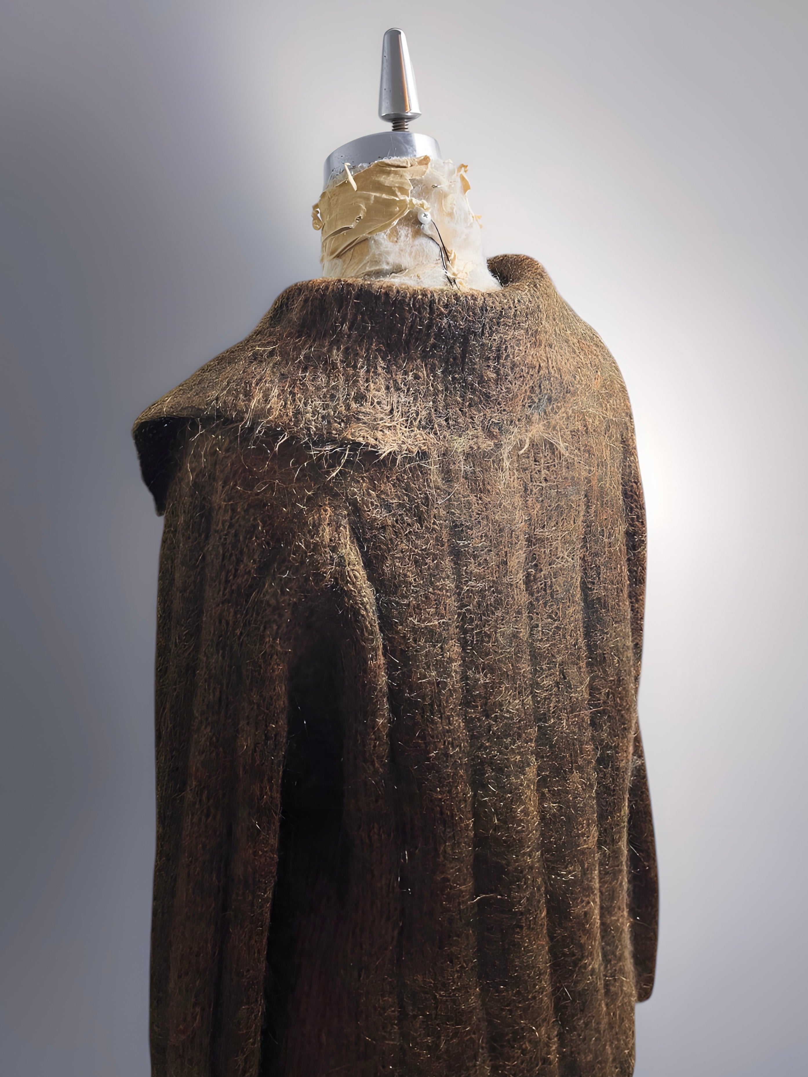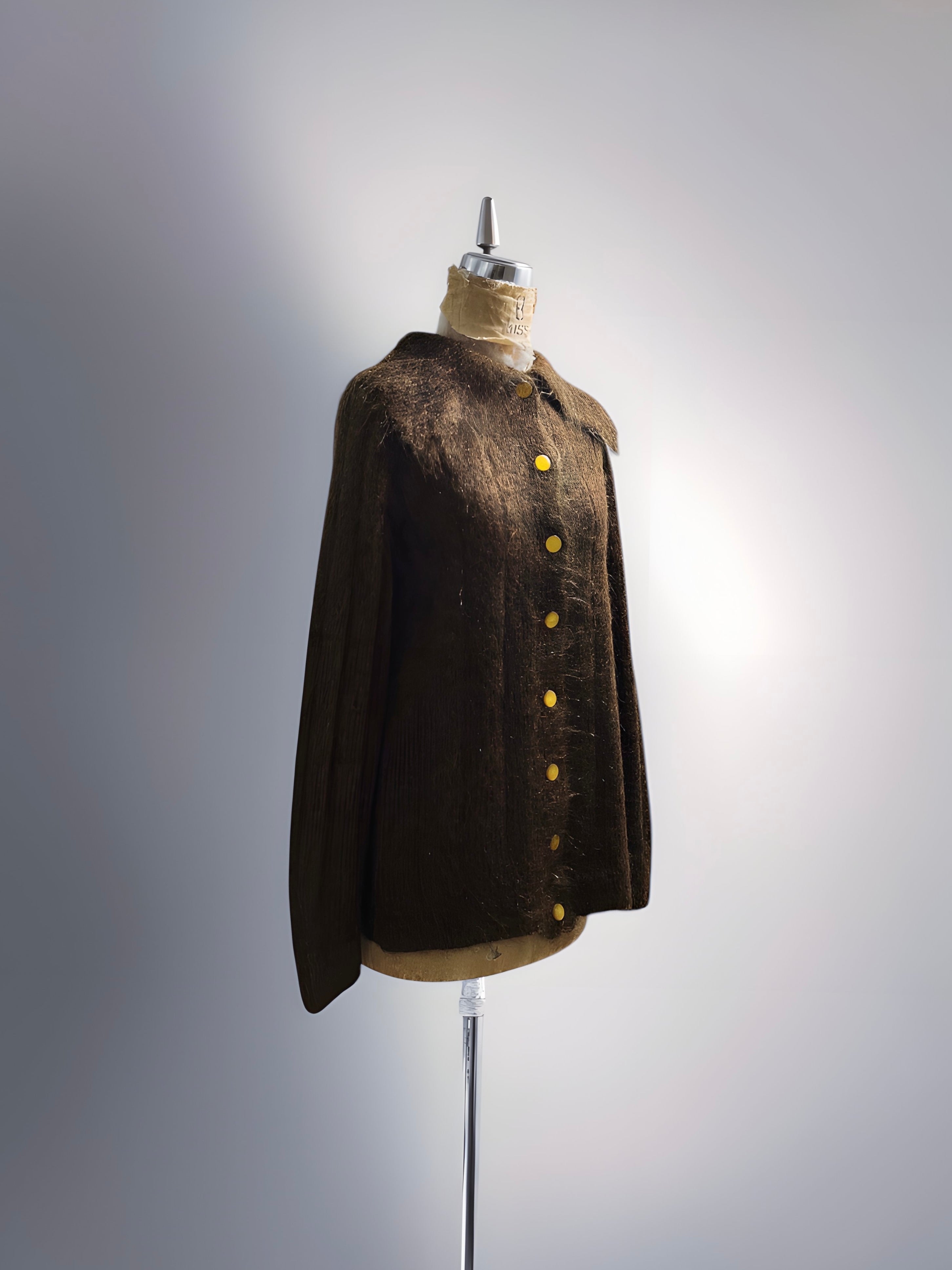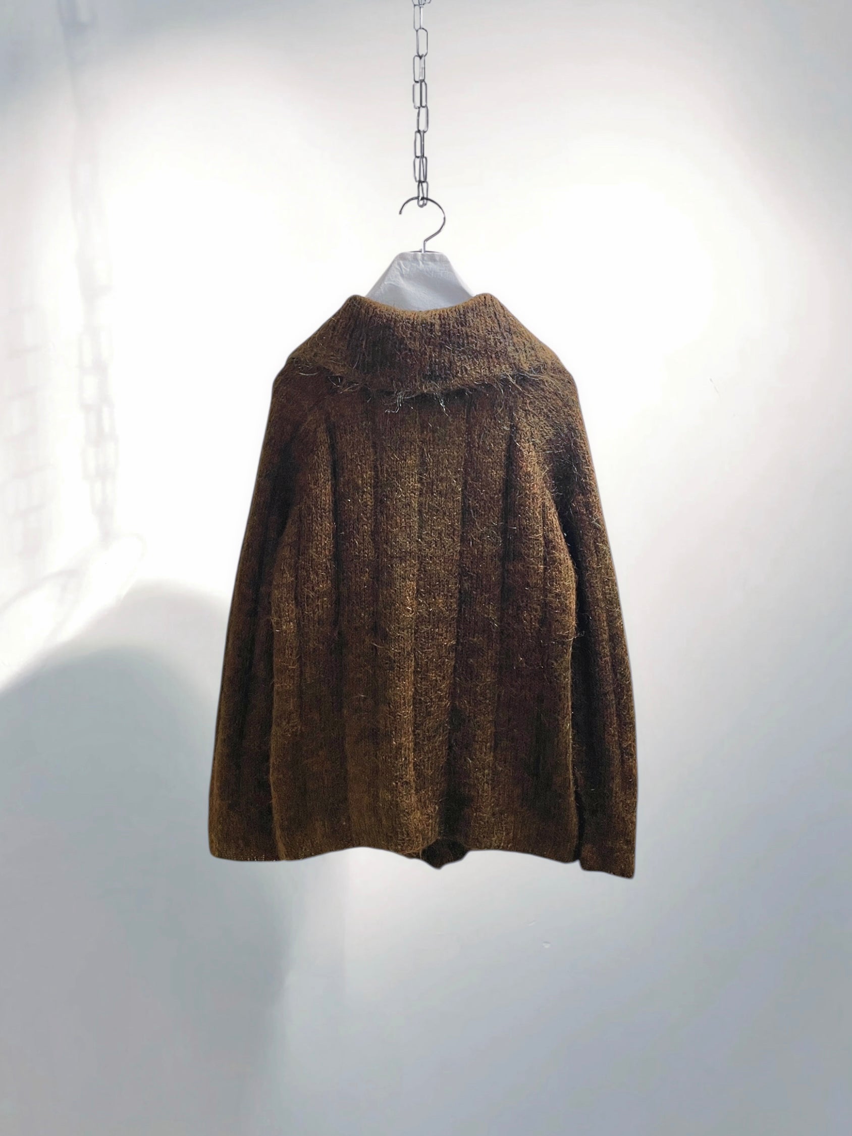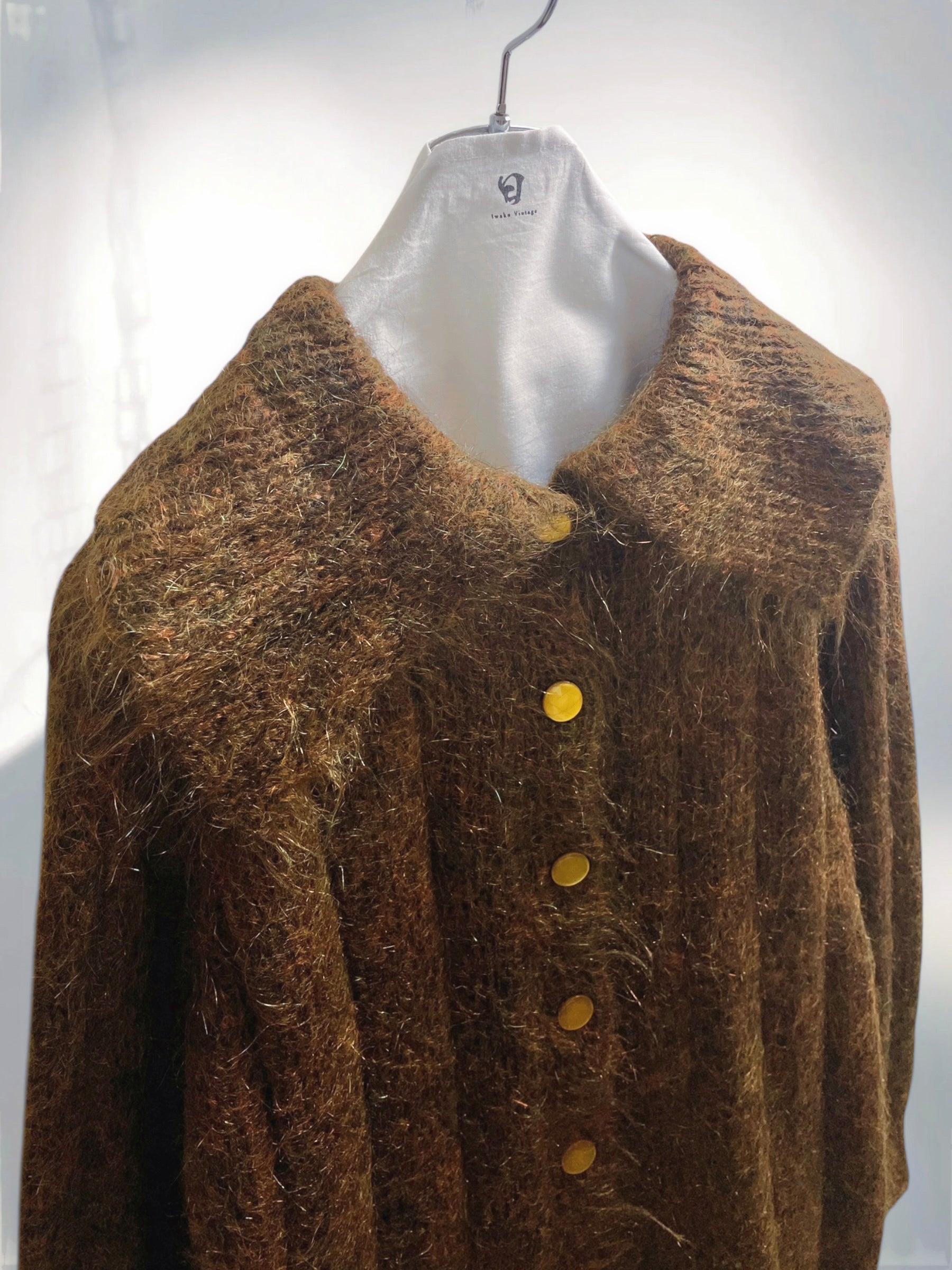 Vintage Brown Mohair Cardigan with Oversized Collar (70s–Early 80s) – Shaggy Texture