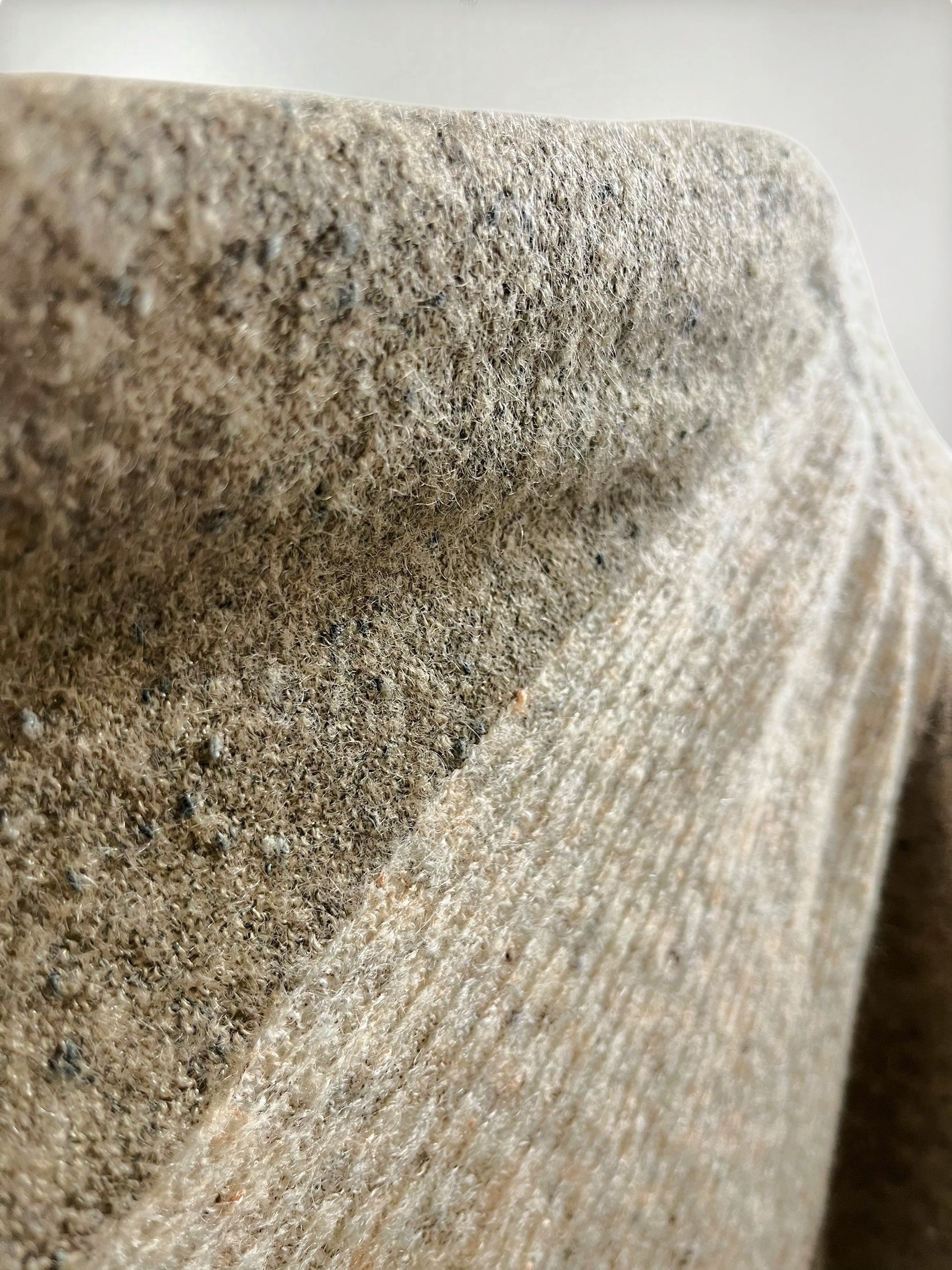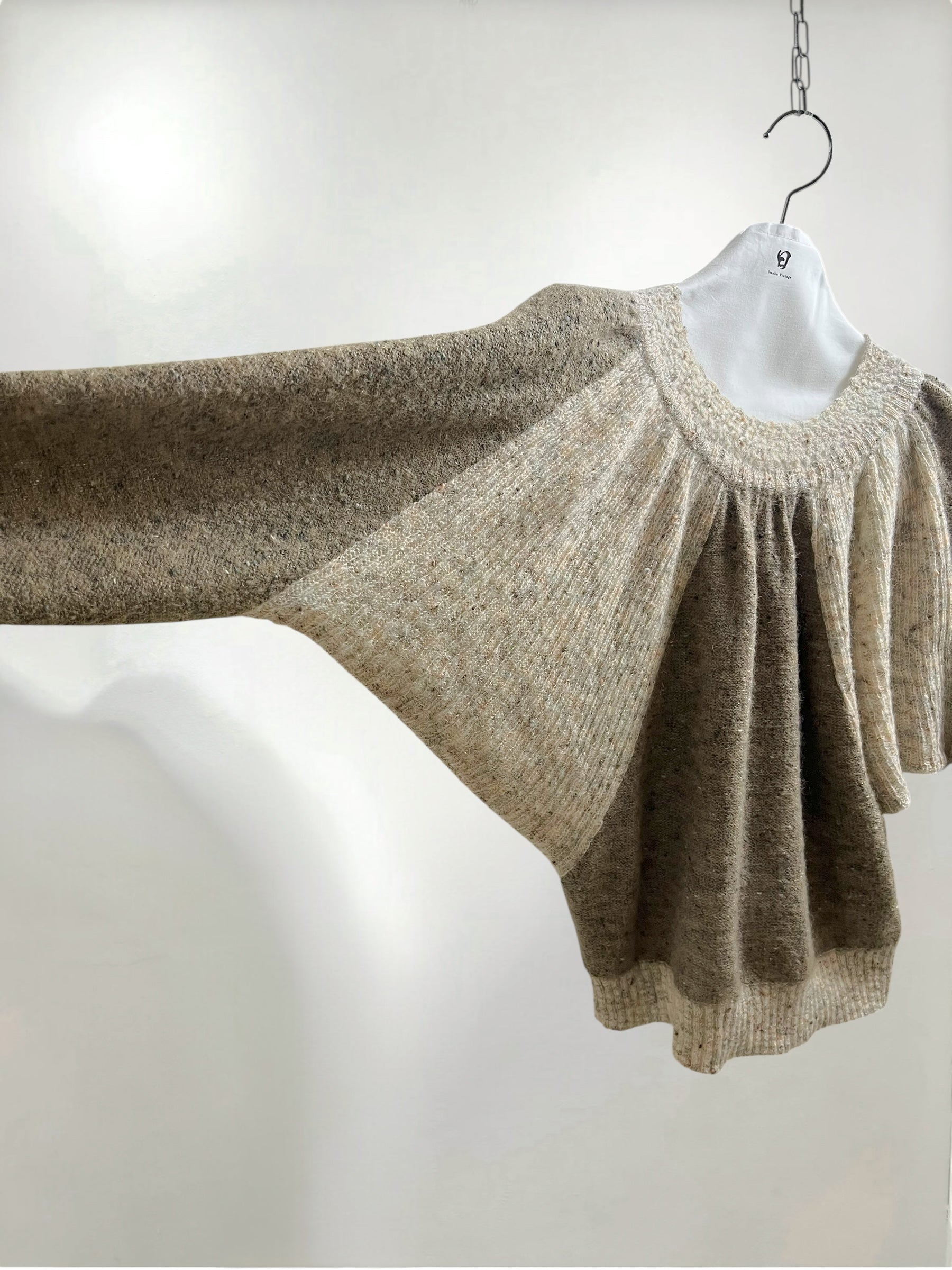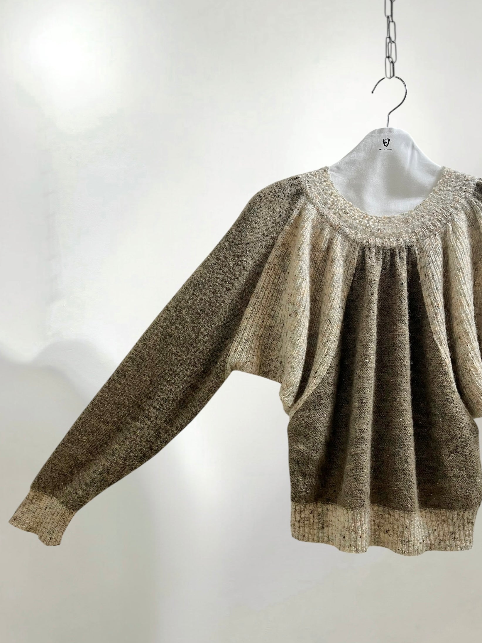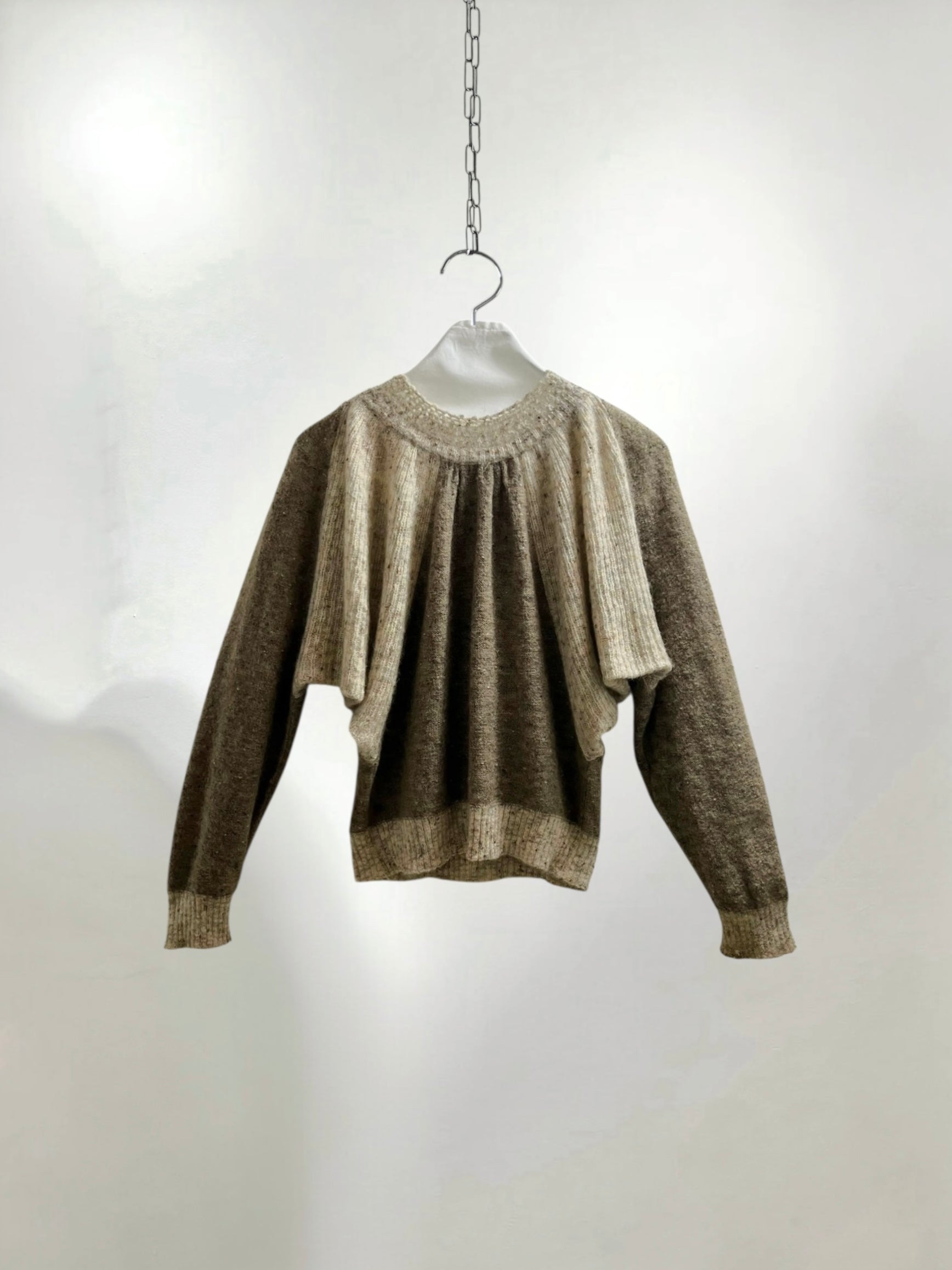 Vintage Taupe Melange Mohair–Wool Blend Sweater with Gathered Yoke (Late 80s–Early 90s) – Sculptural Drape