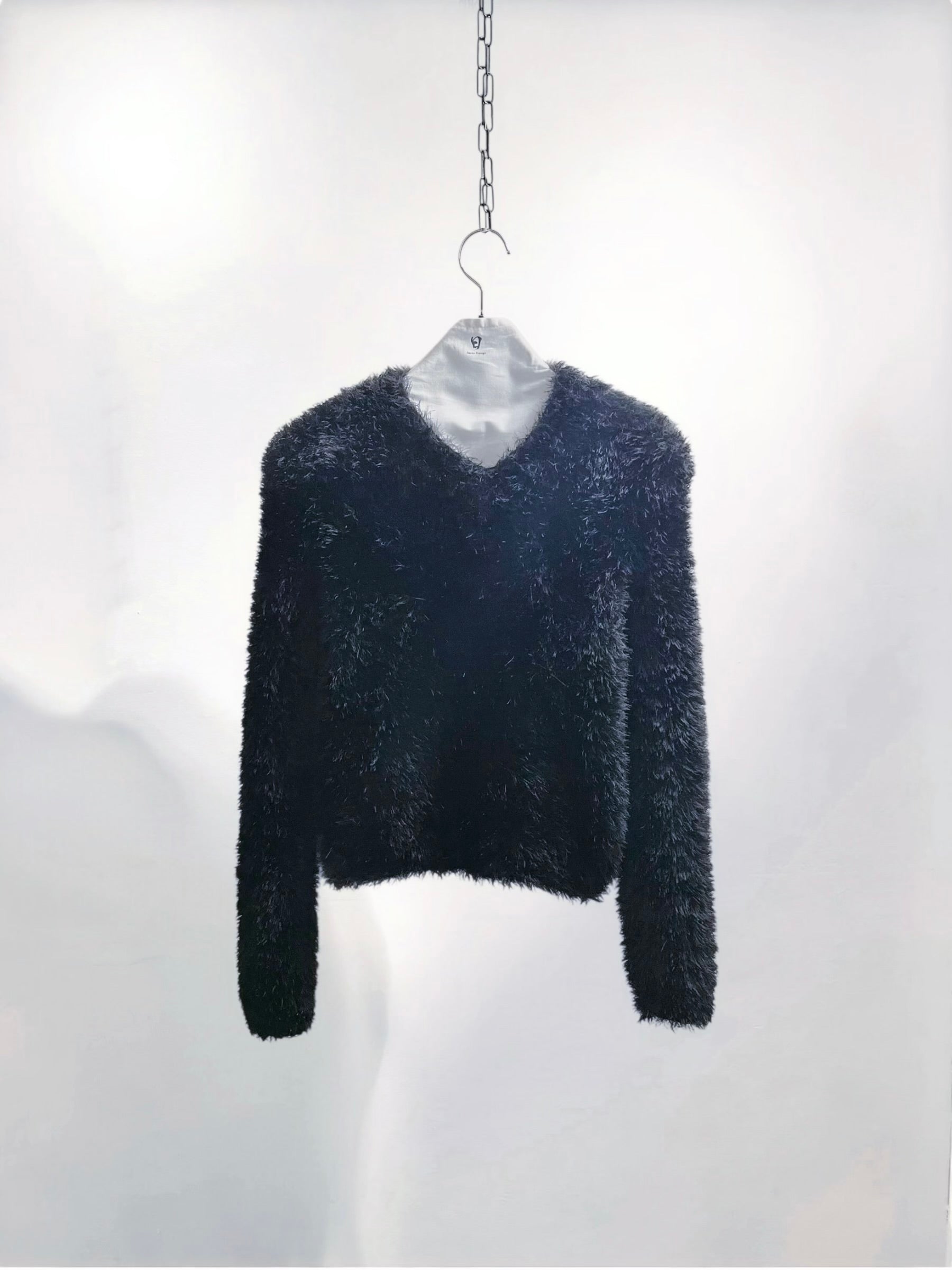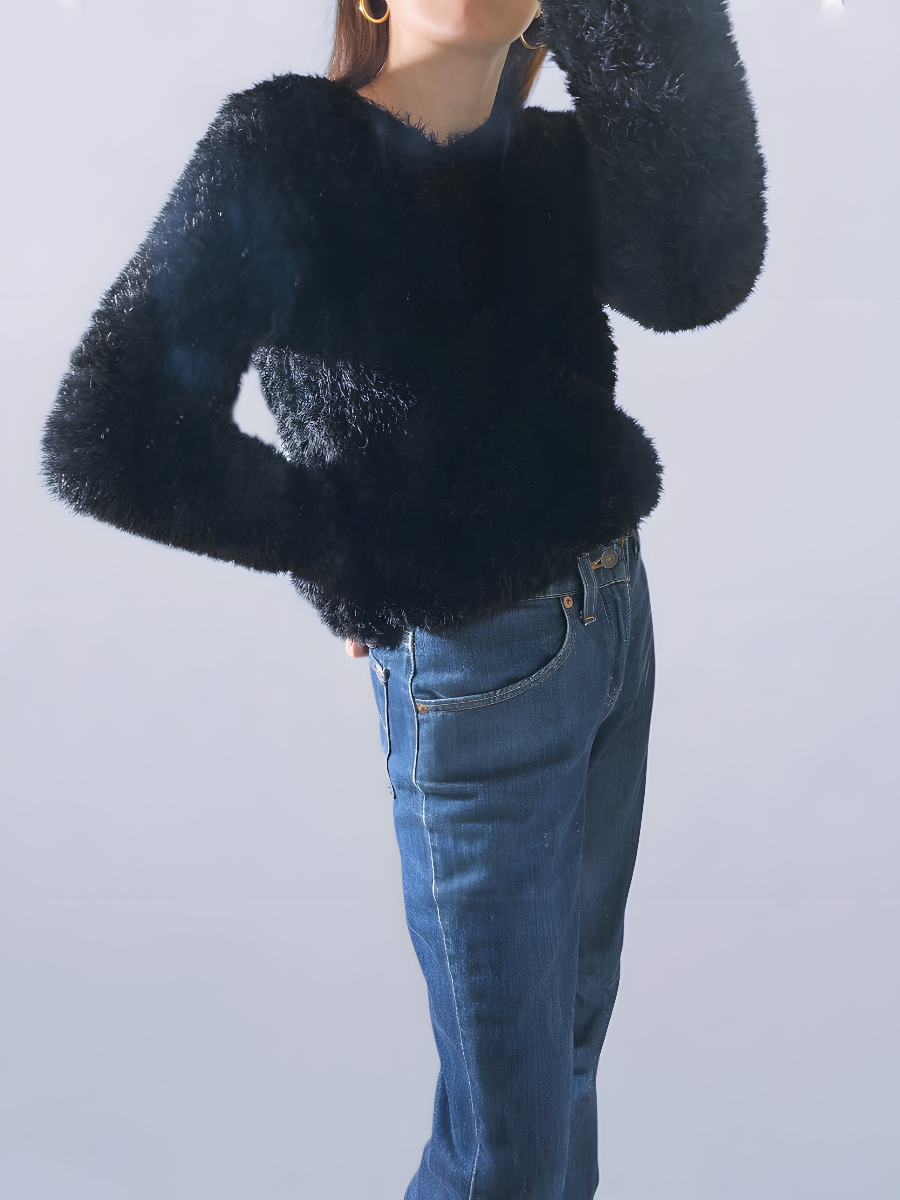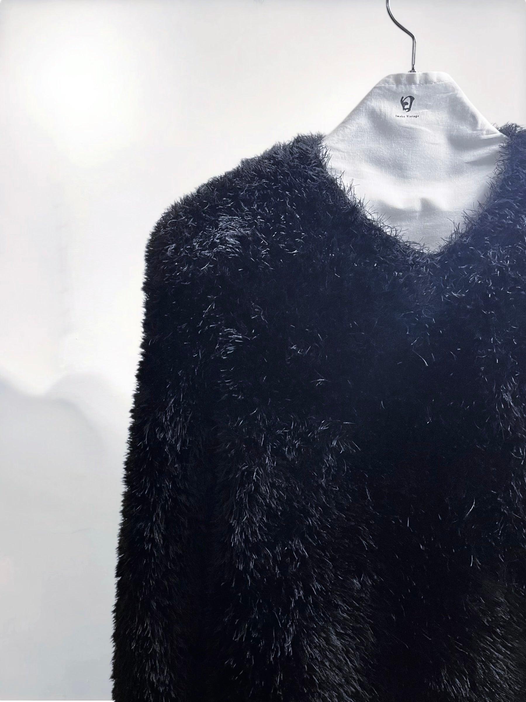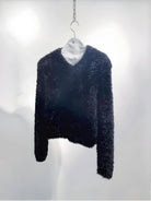 Black V-Neck Sweater with Eyelash Knit (Late 90s–Early 2000s) – Statement Texture