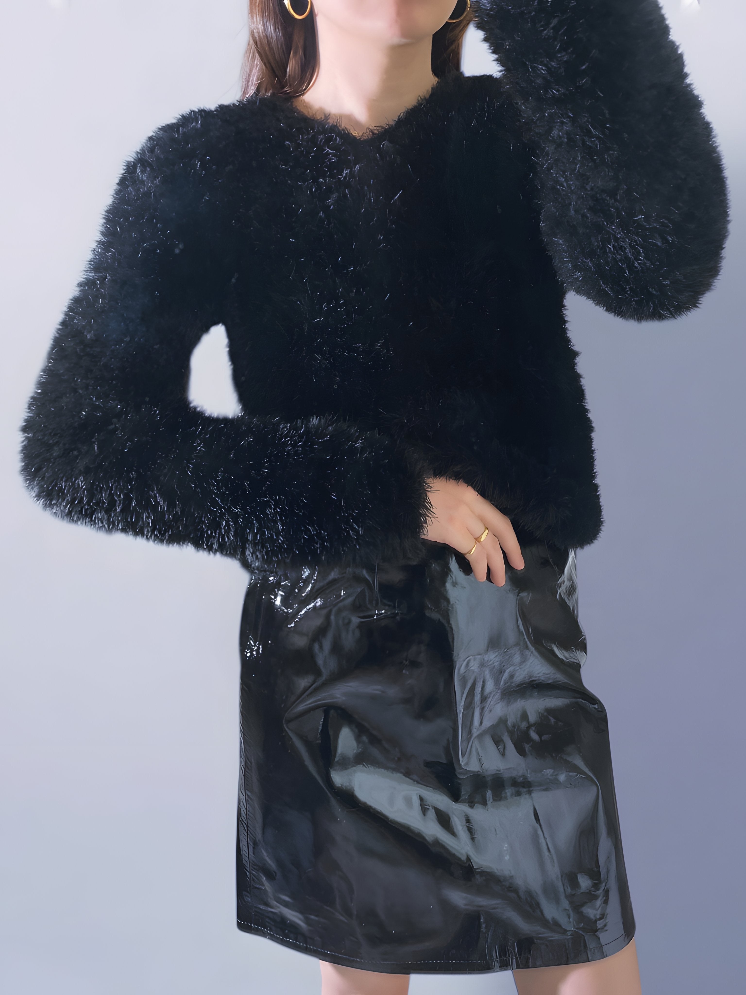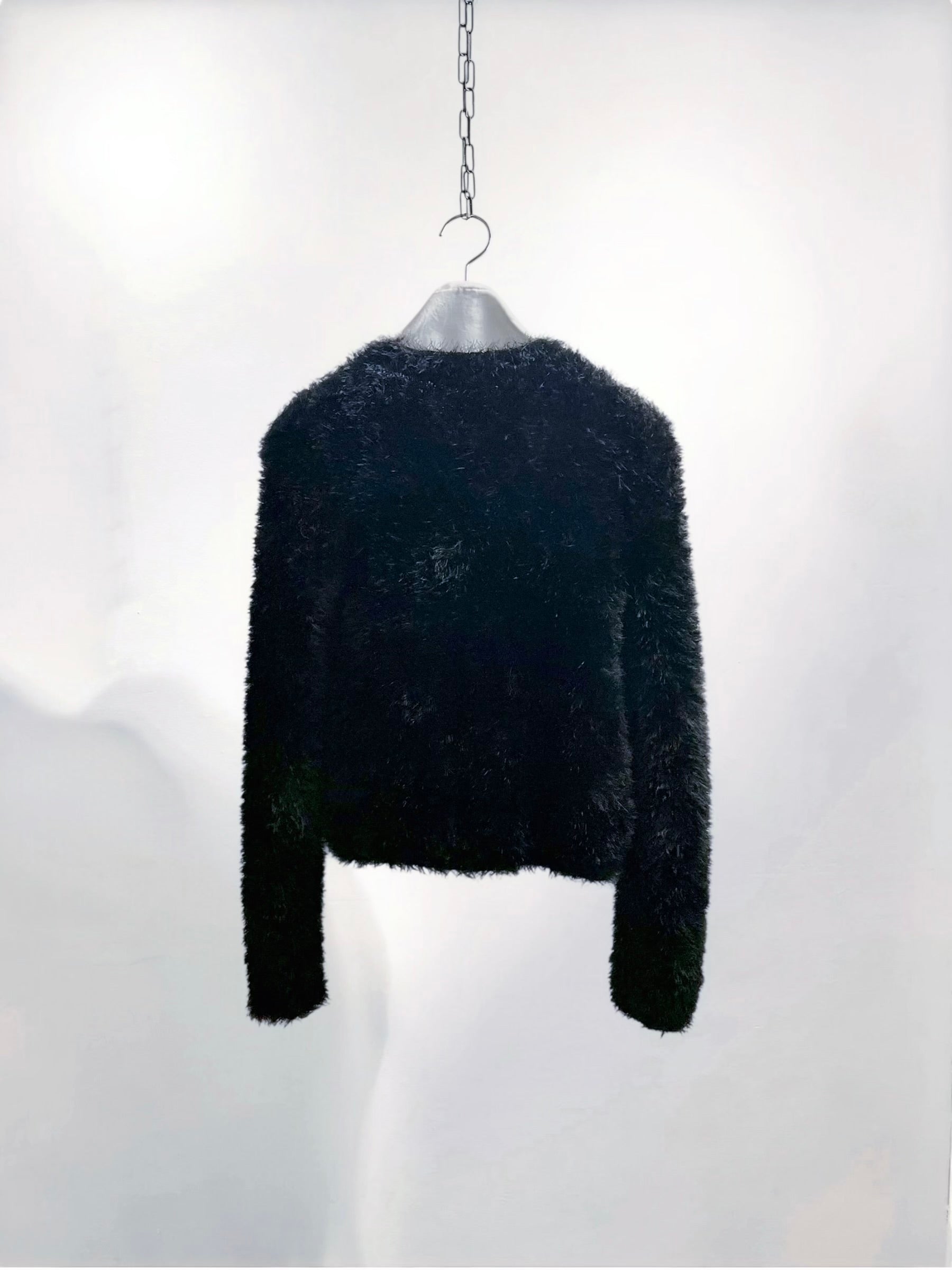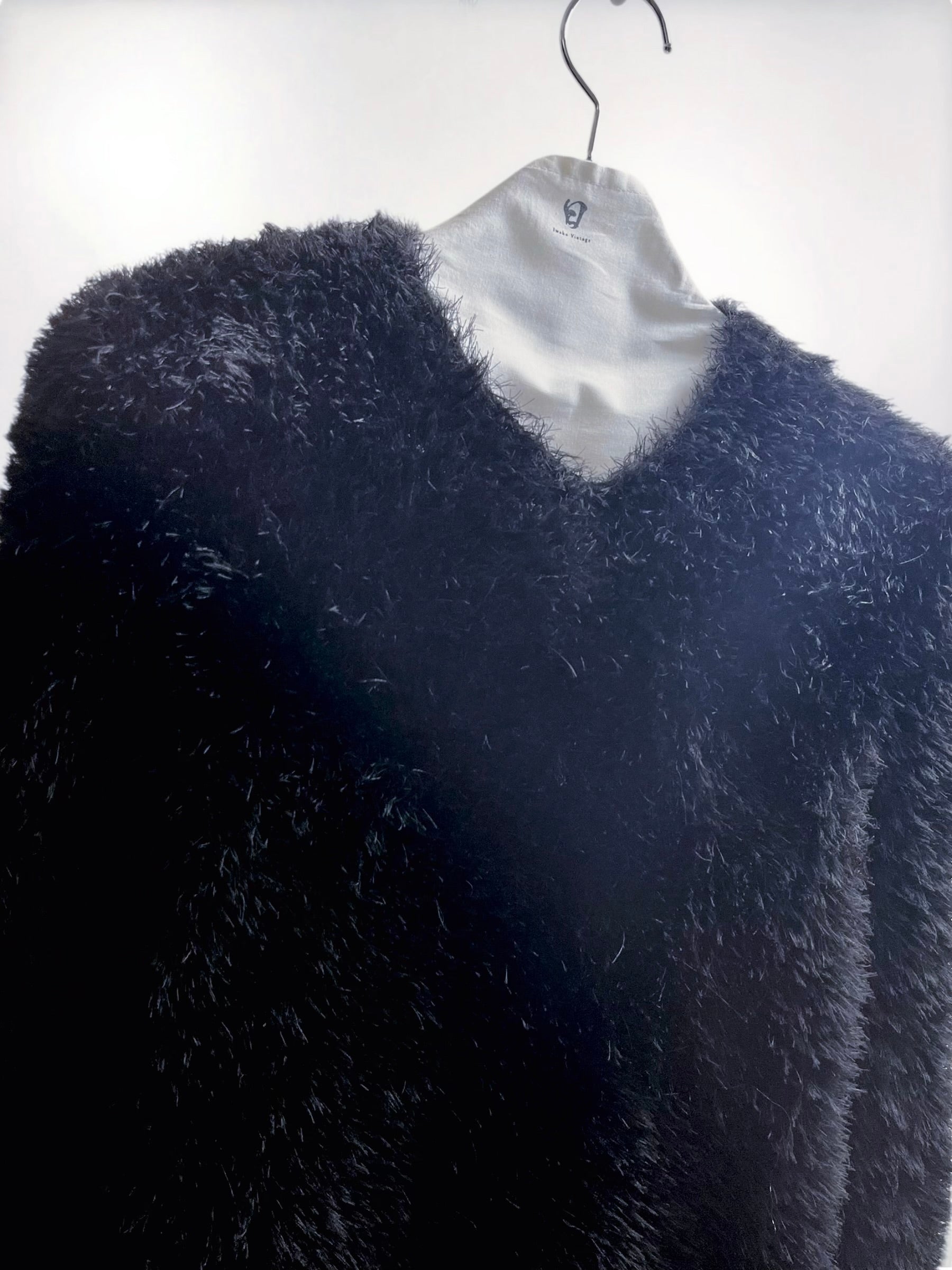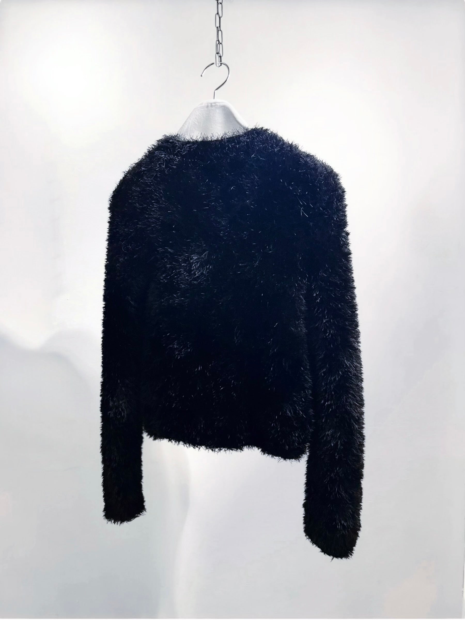 Black V-Neck Sweater with Eyelash Knit (Late 90s–Early 2000s) – Statement Texture