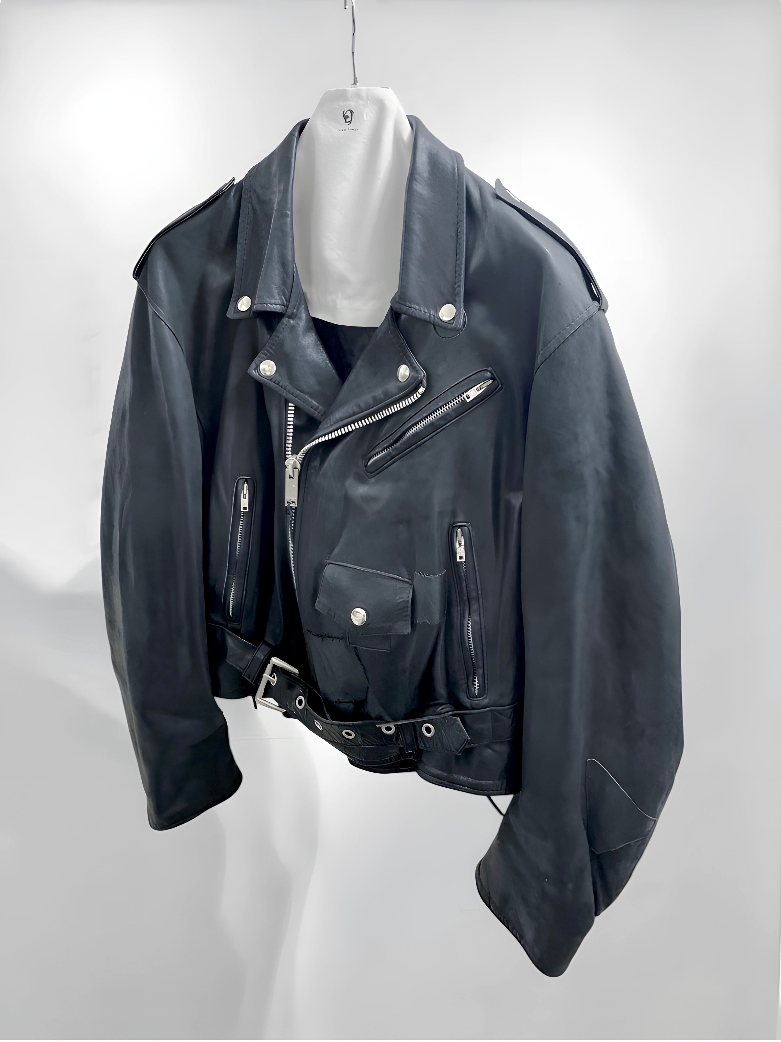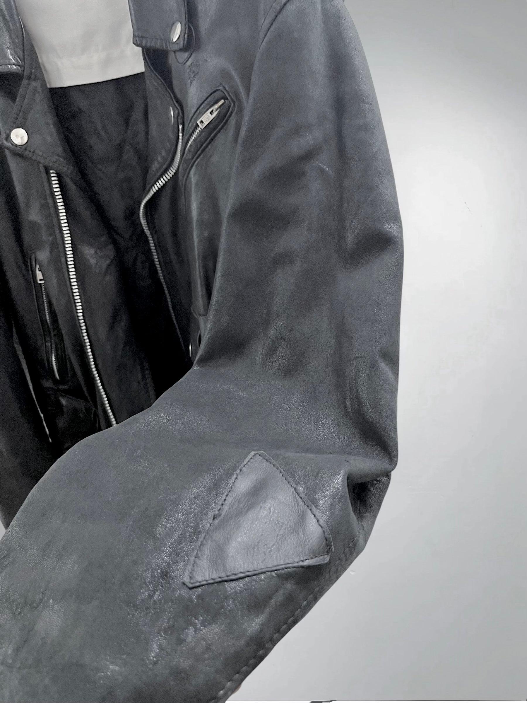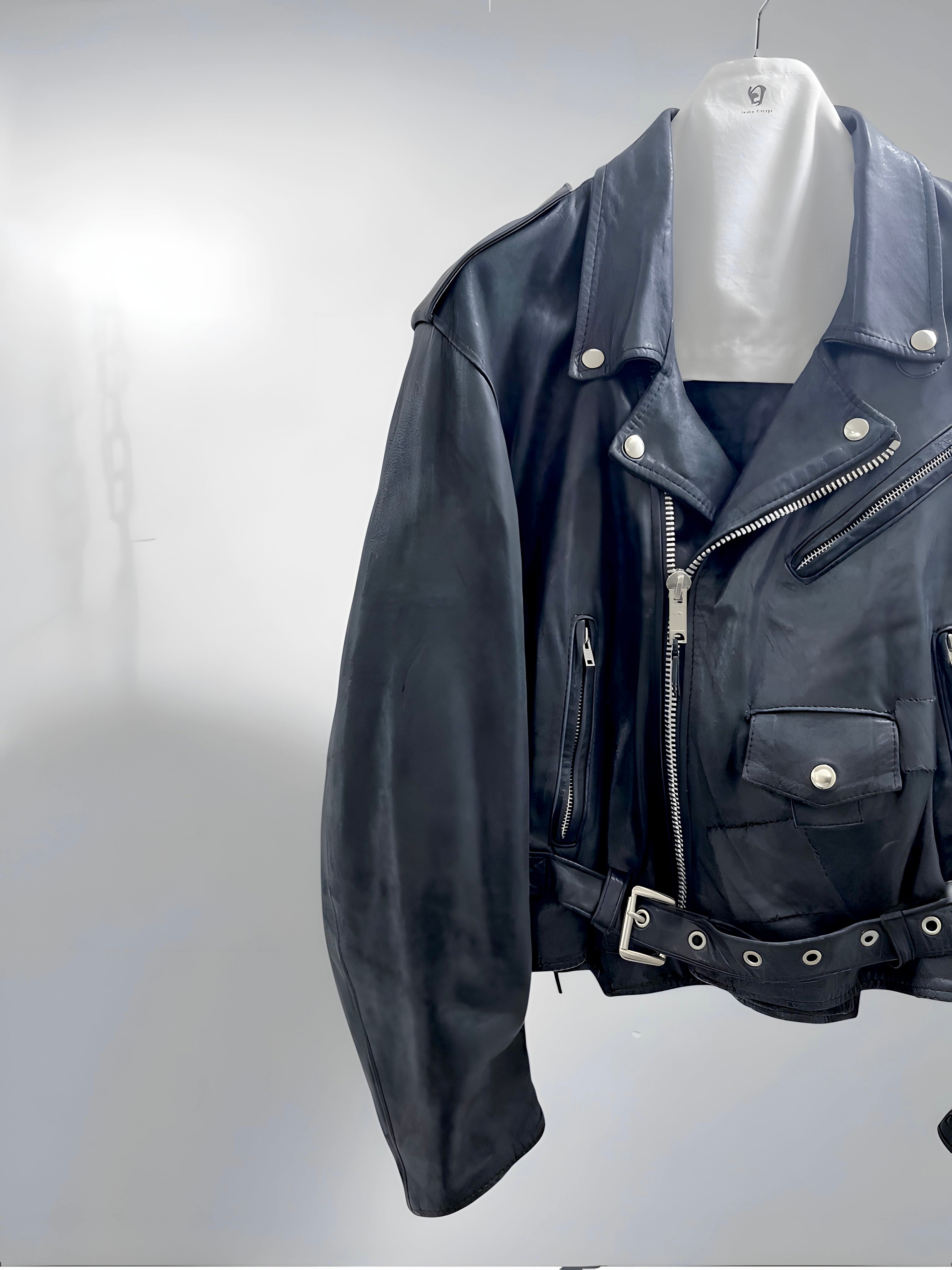 (It has a classic and heavy rider's design, but the soft, thick leather makes it not bulky, and it has a light and delicate European design. The soft fabric fits the body well and looks beautiful when worn as a jacket.)