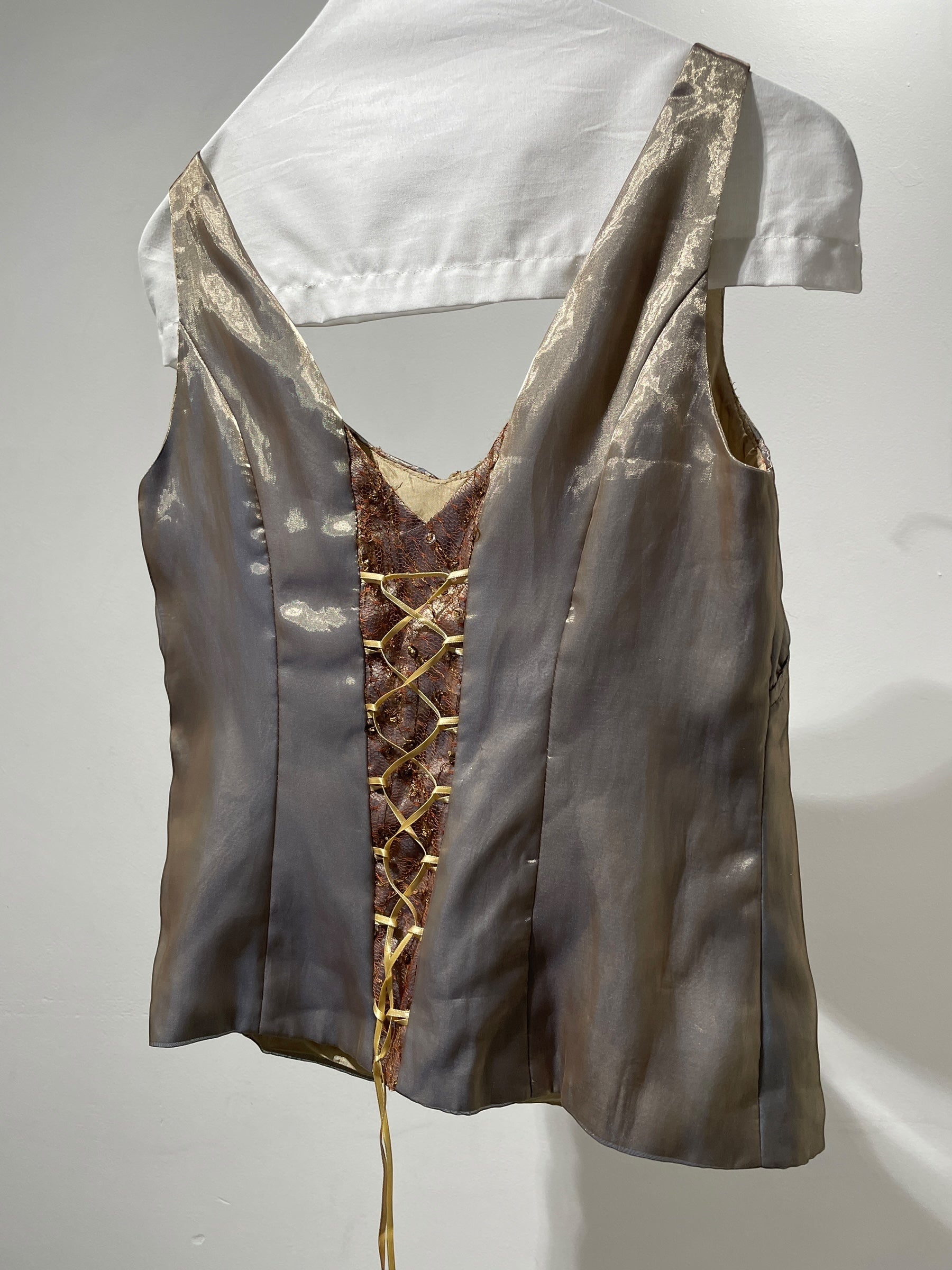 【C】Old clothes with a feeling of use, a little dirt and damage.