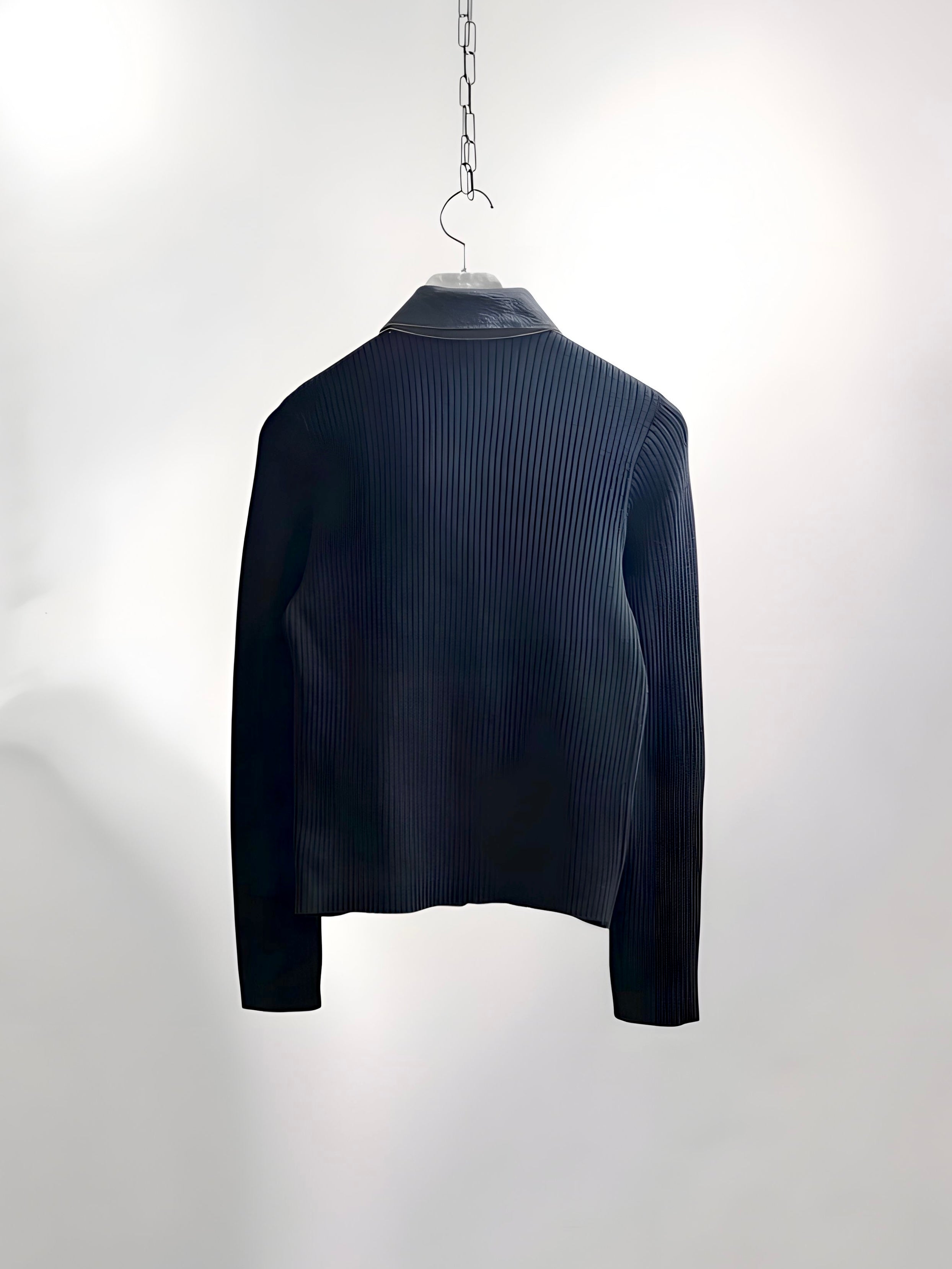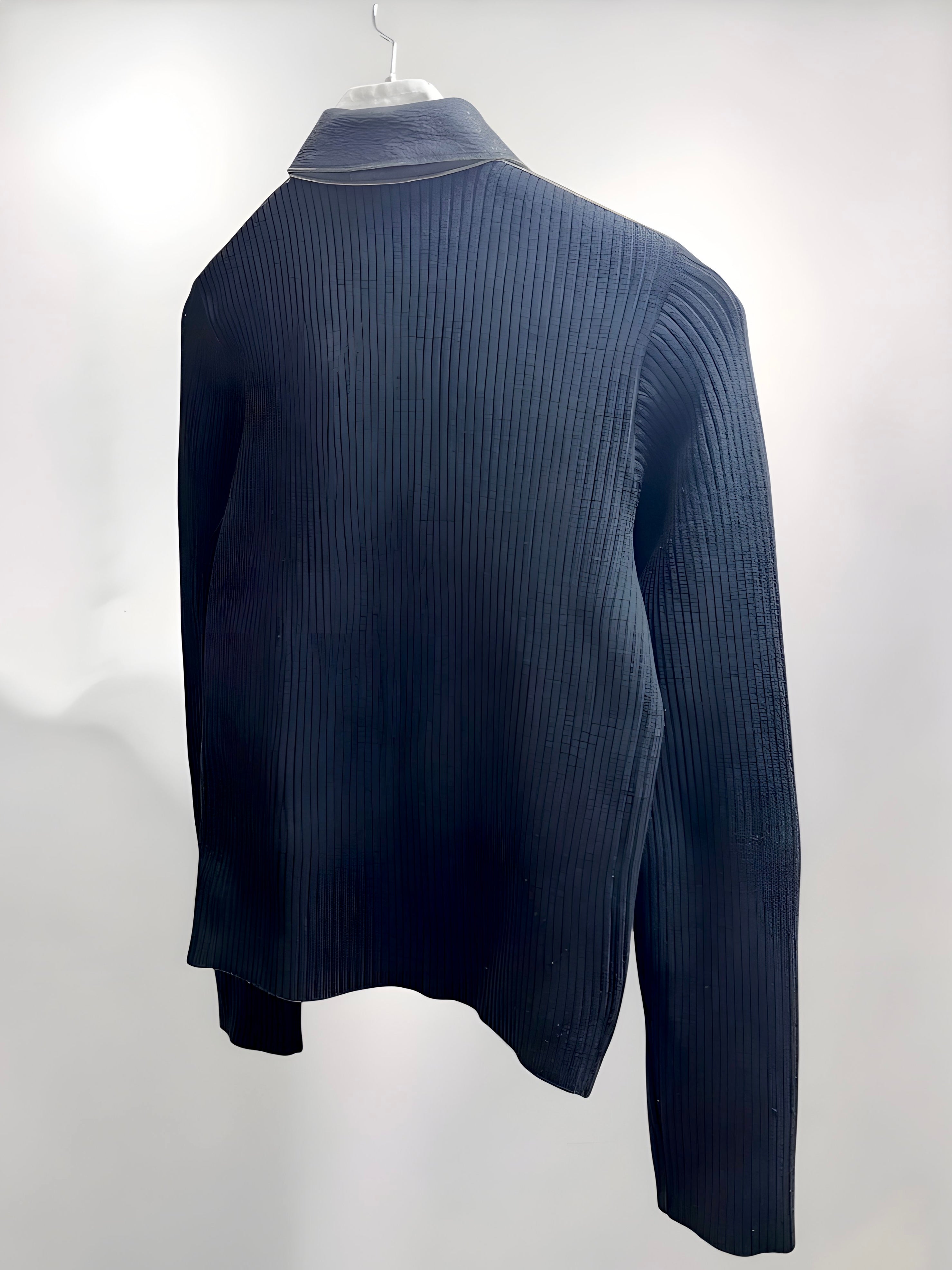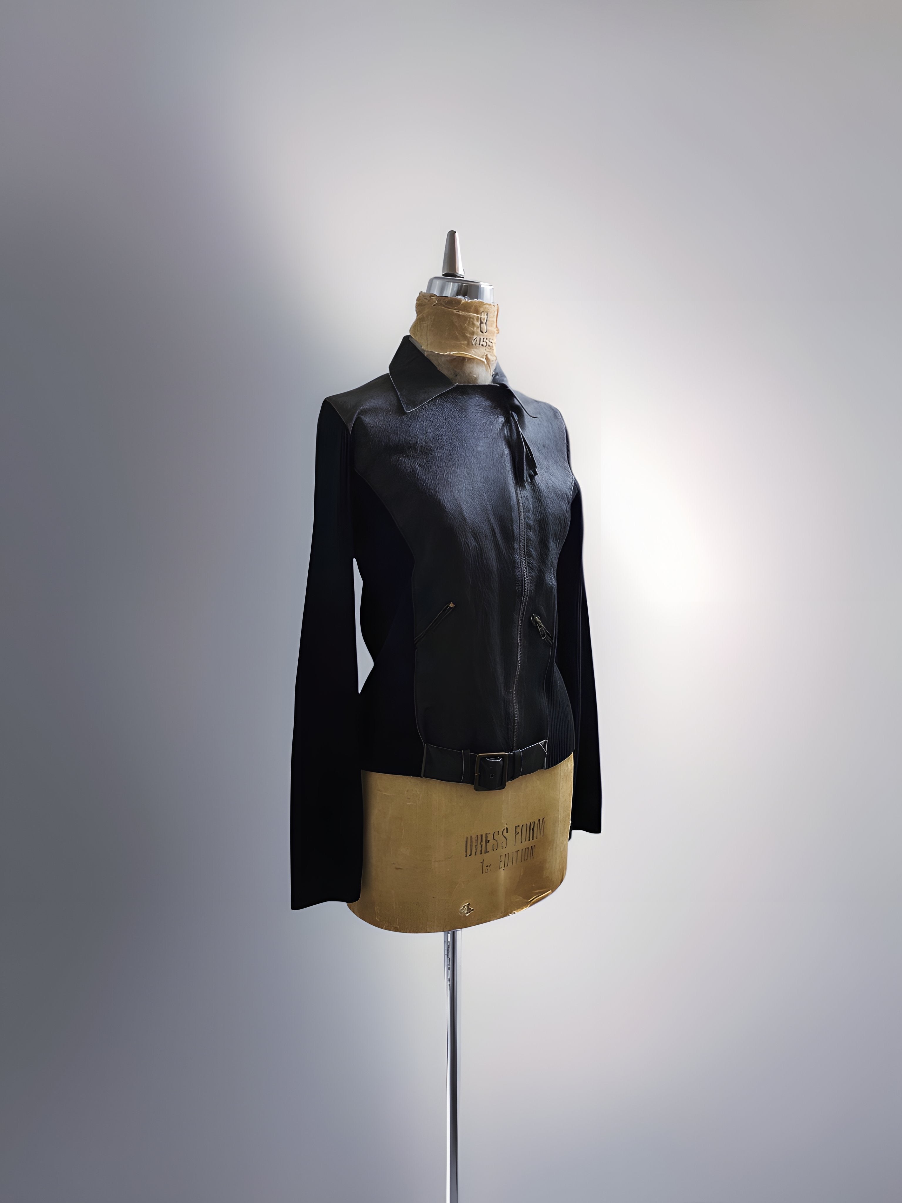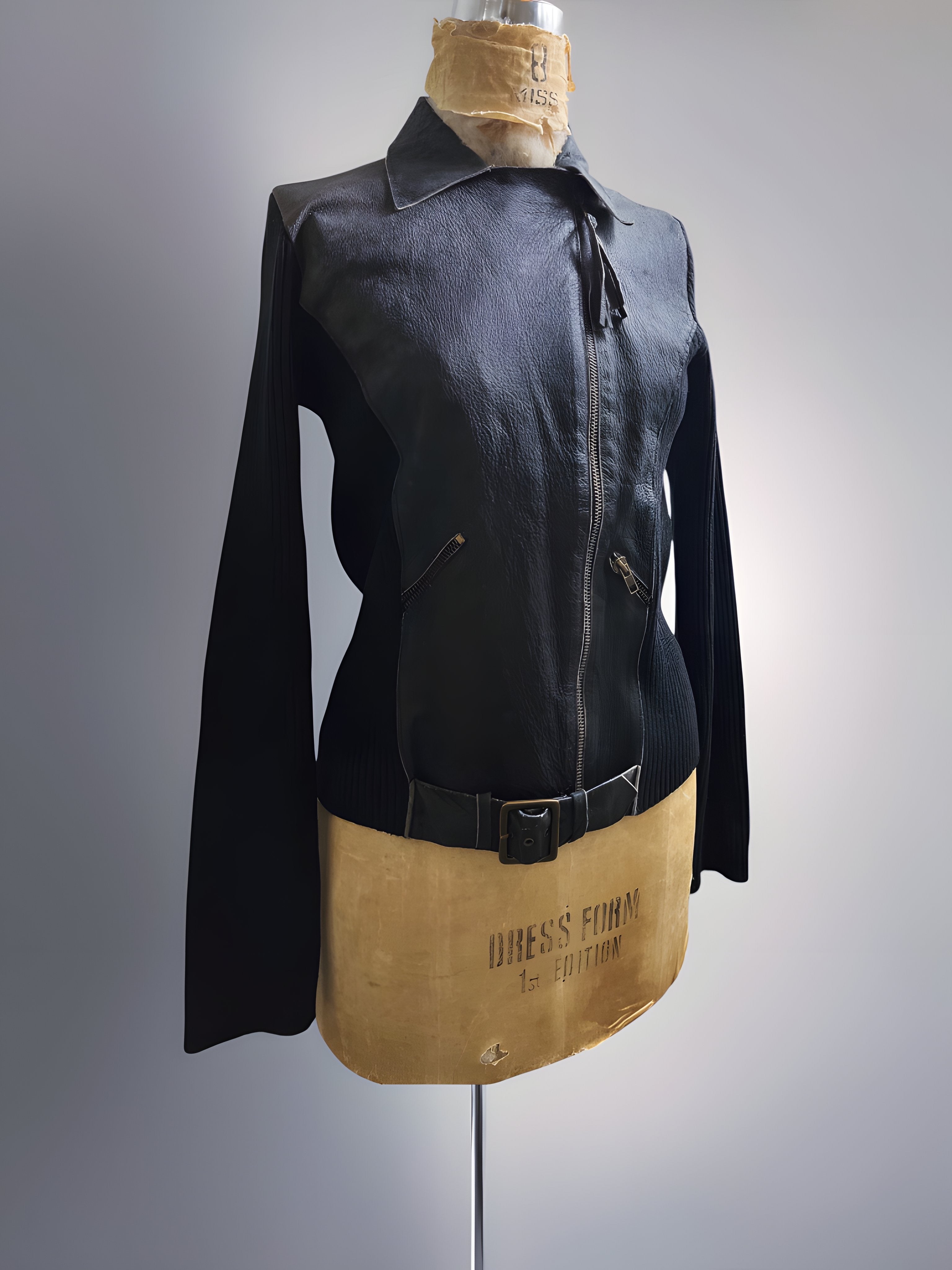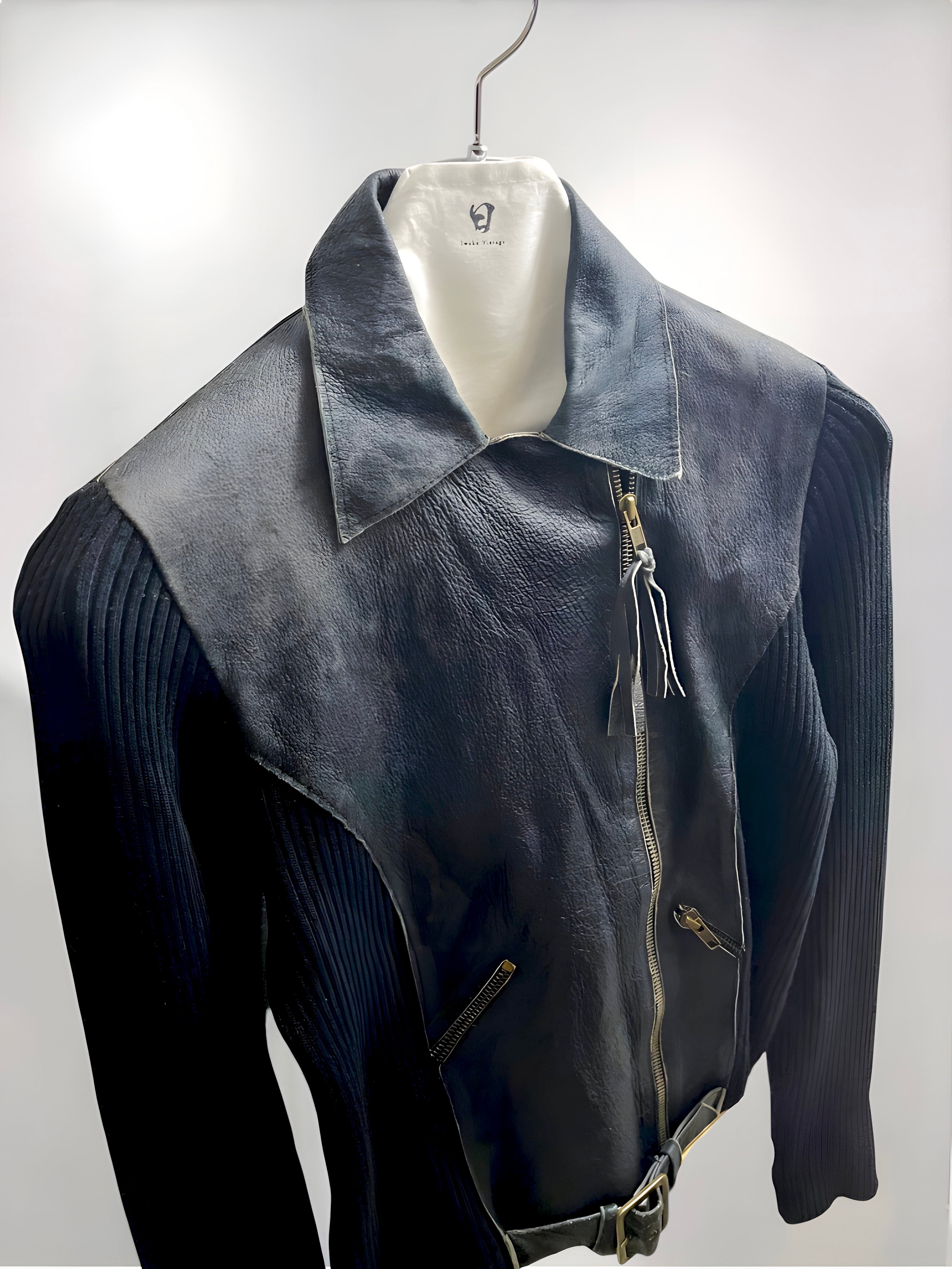 Charcoal Leather Jacket with Asymmetric Zip and Ribbed Sleeves (Late 90s–Early 2000s) – Belted Hem
