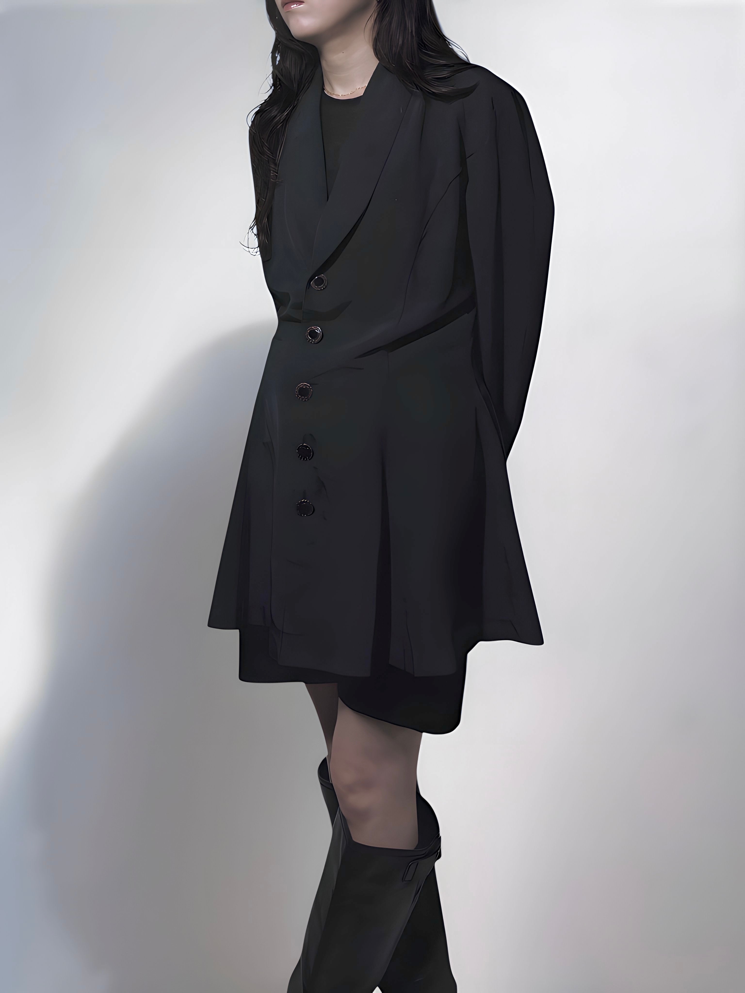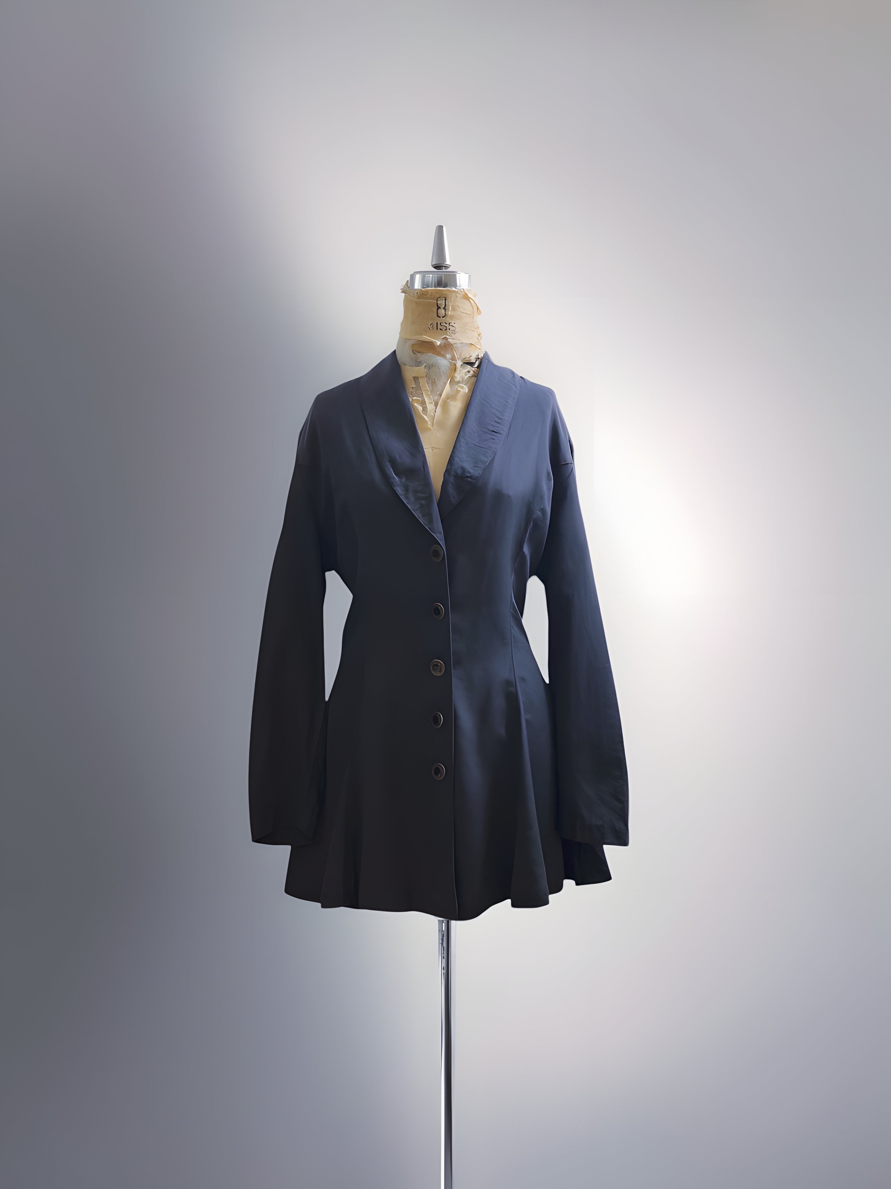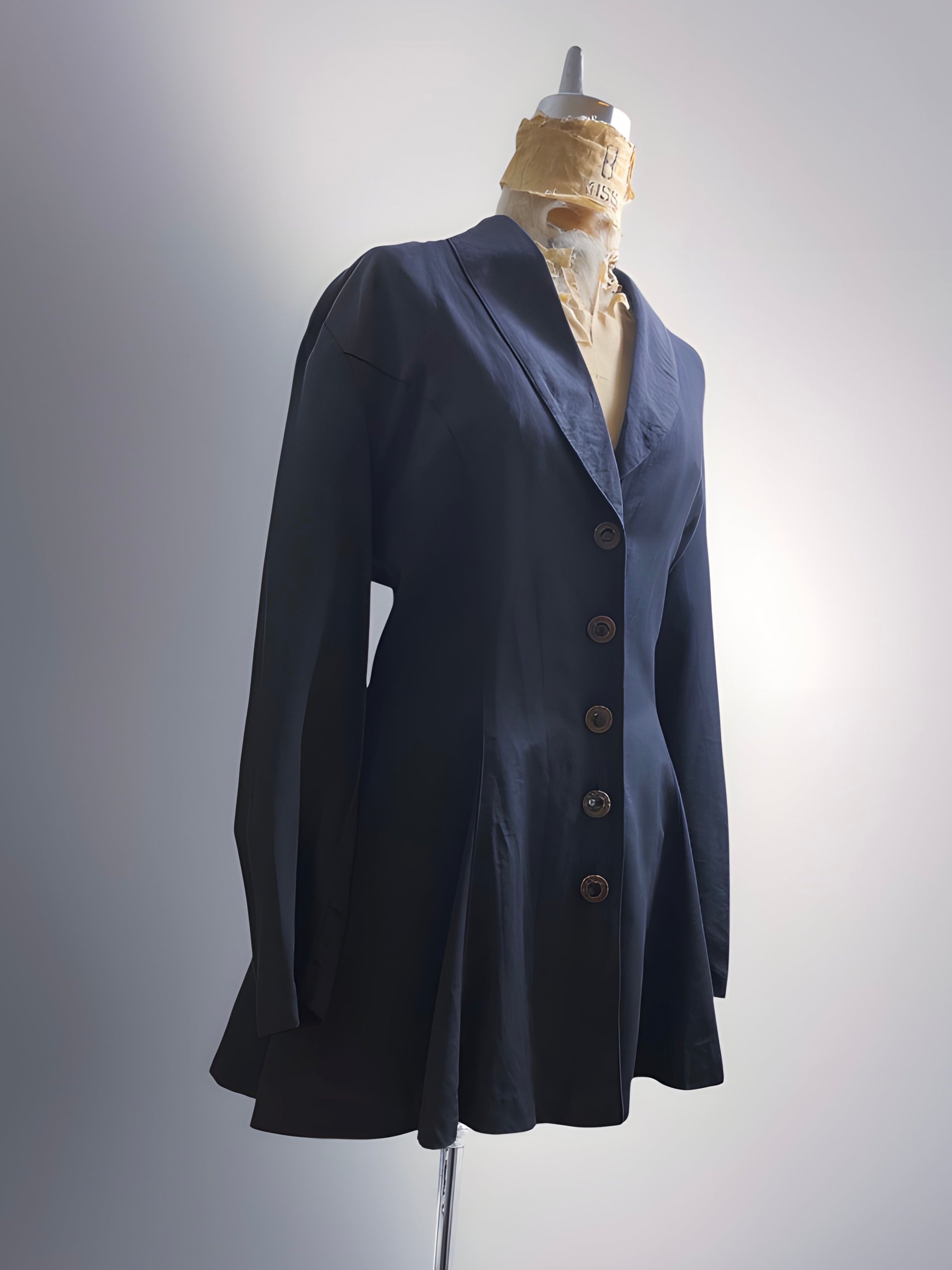 Vintage Draped Peplum Jacket with Ornamental Buttons (Late 90s / Early 2000)