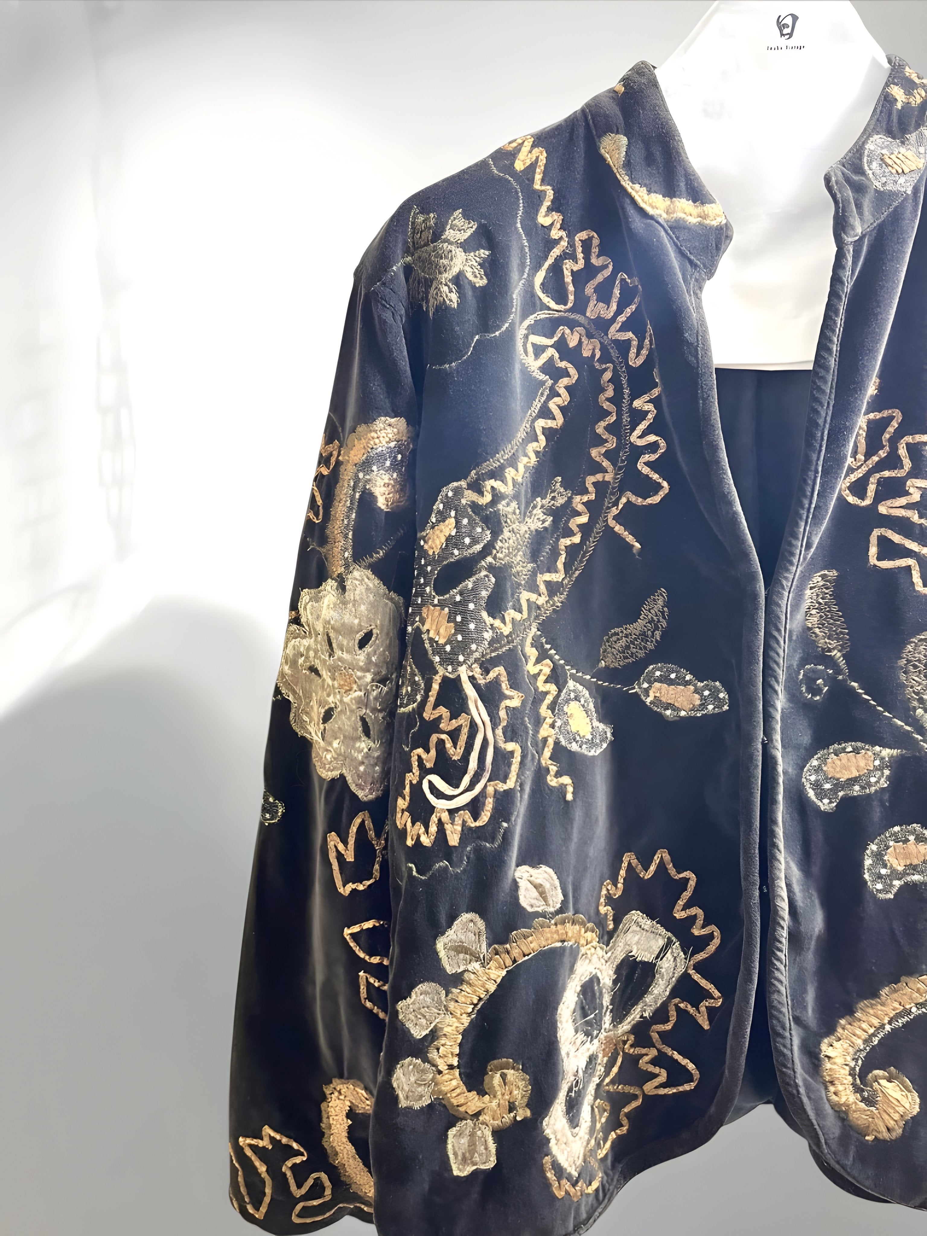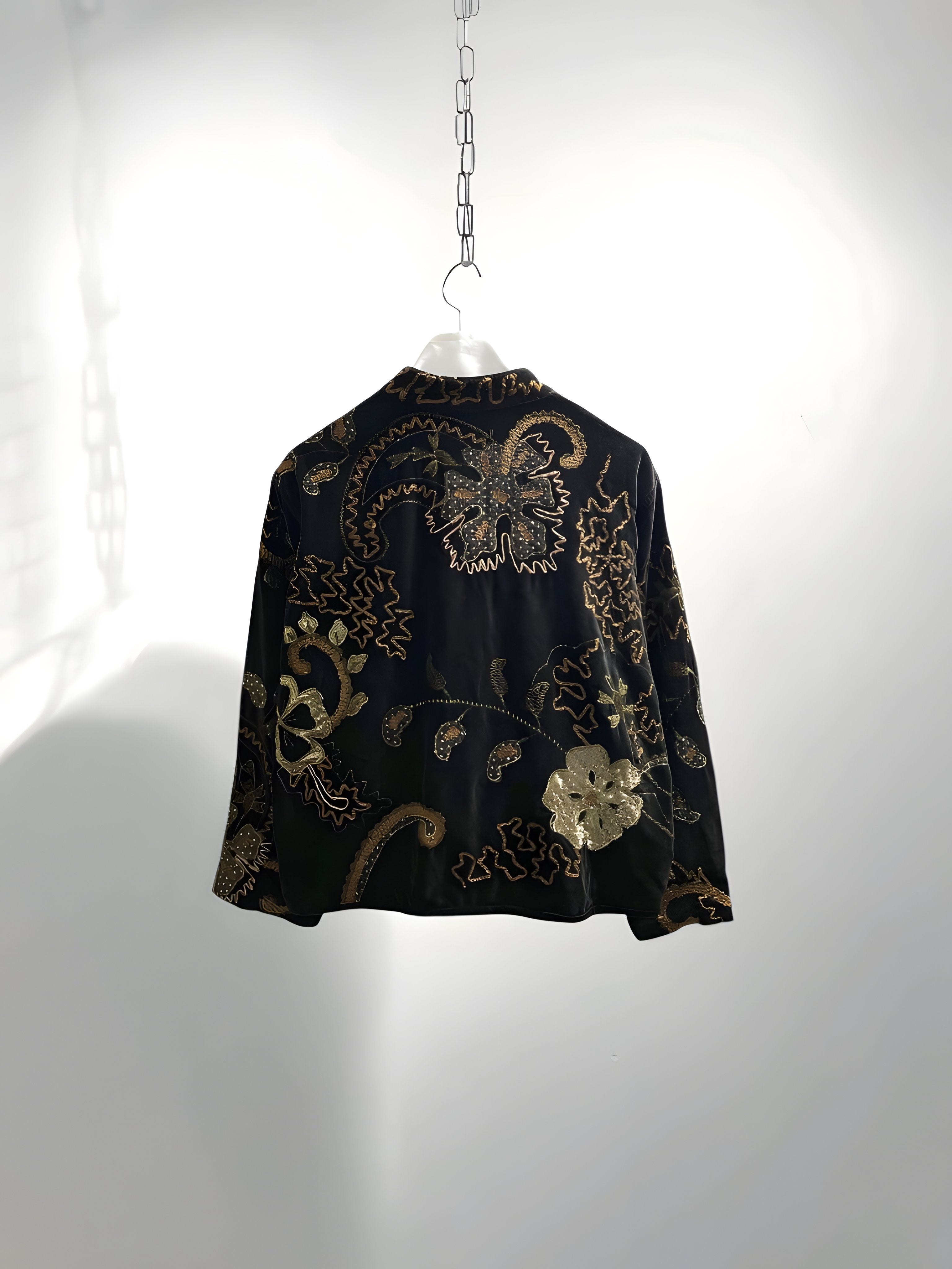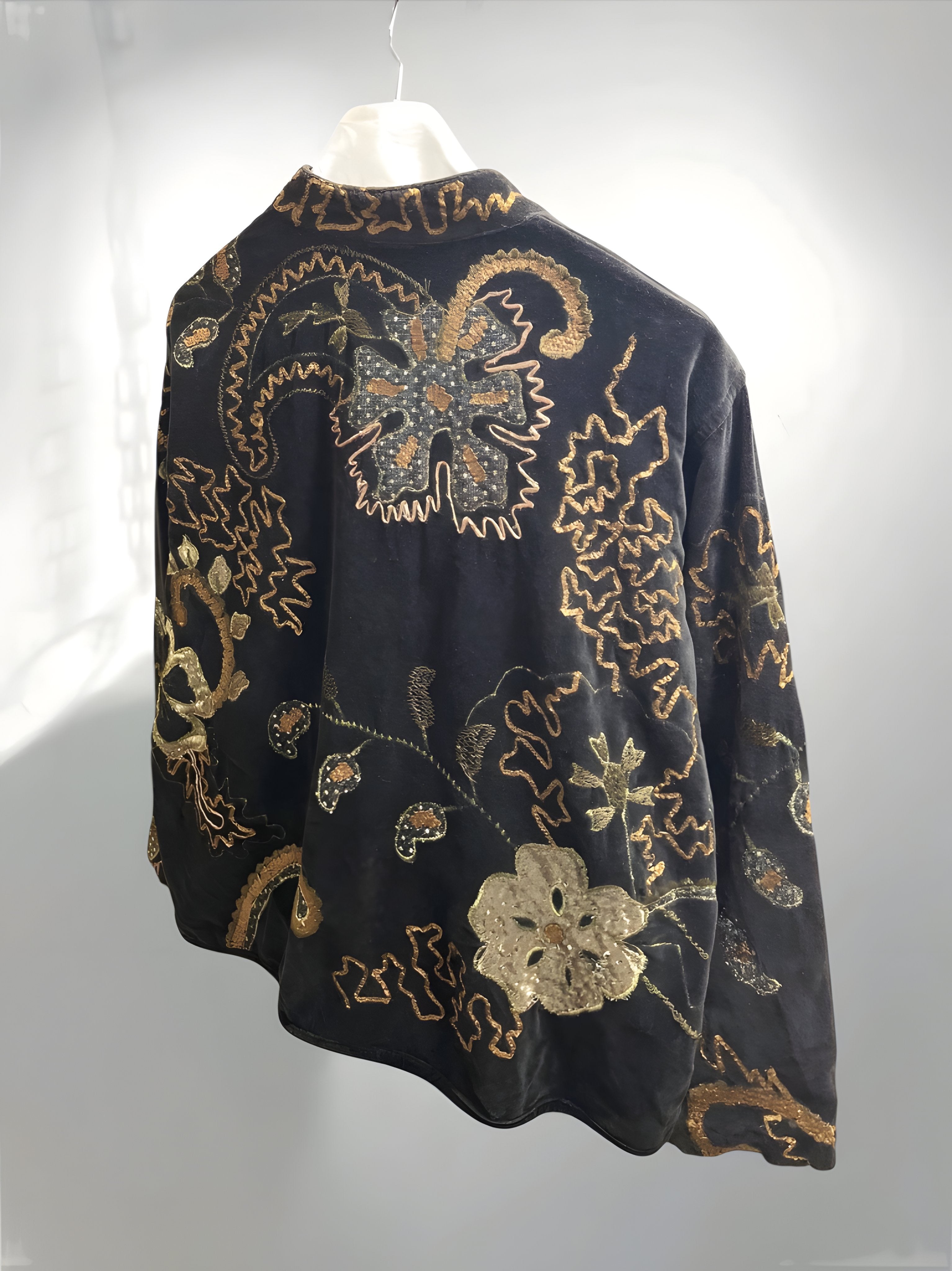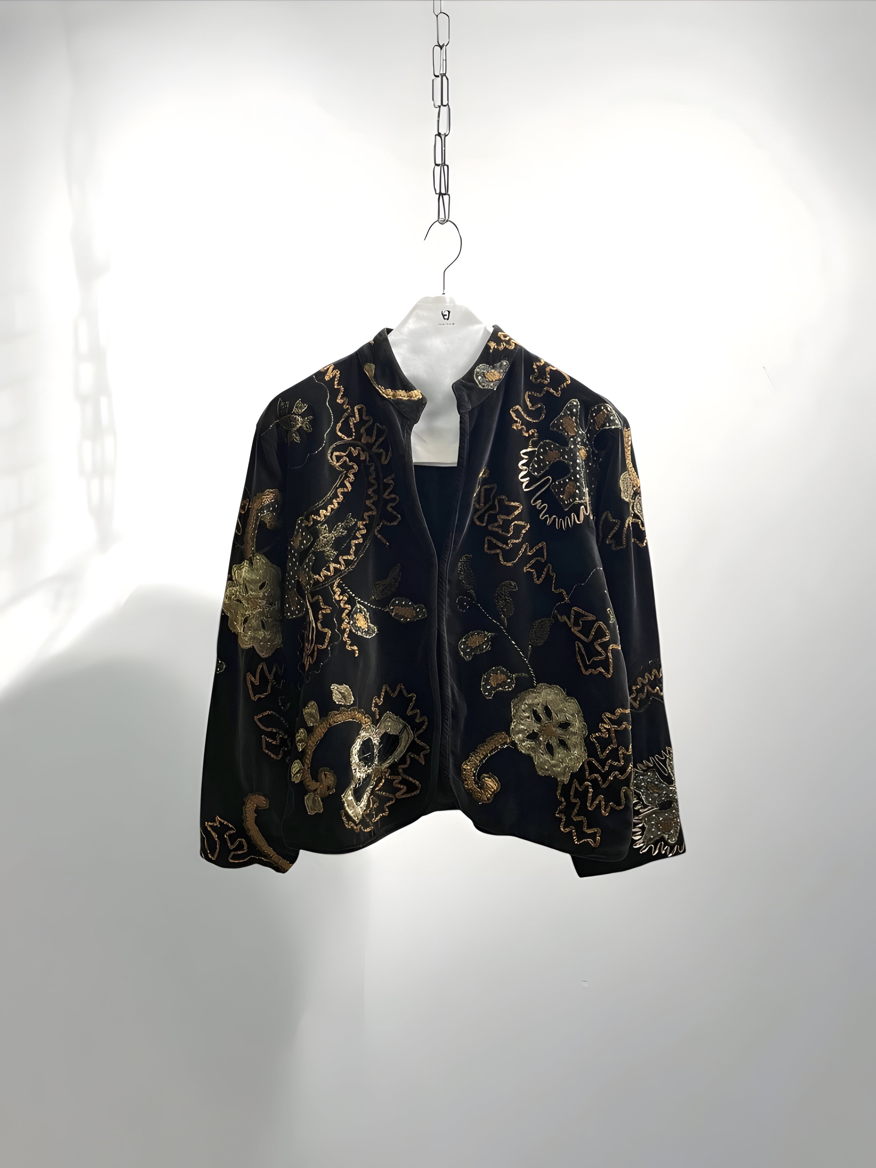 Vintage Black Cotton Jacket with Metallic Floral Embroidery (90s)