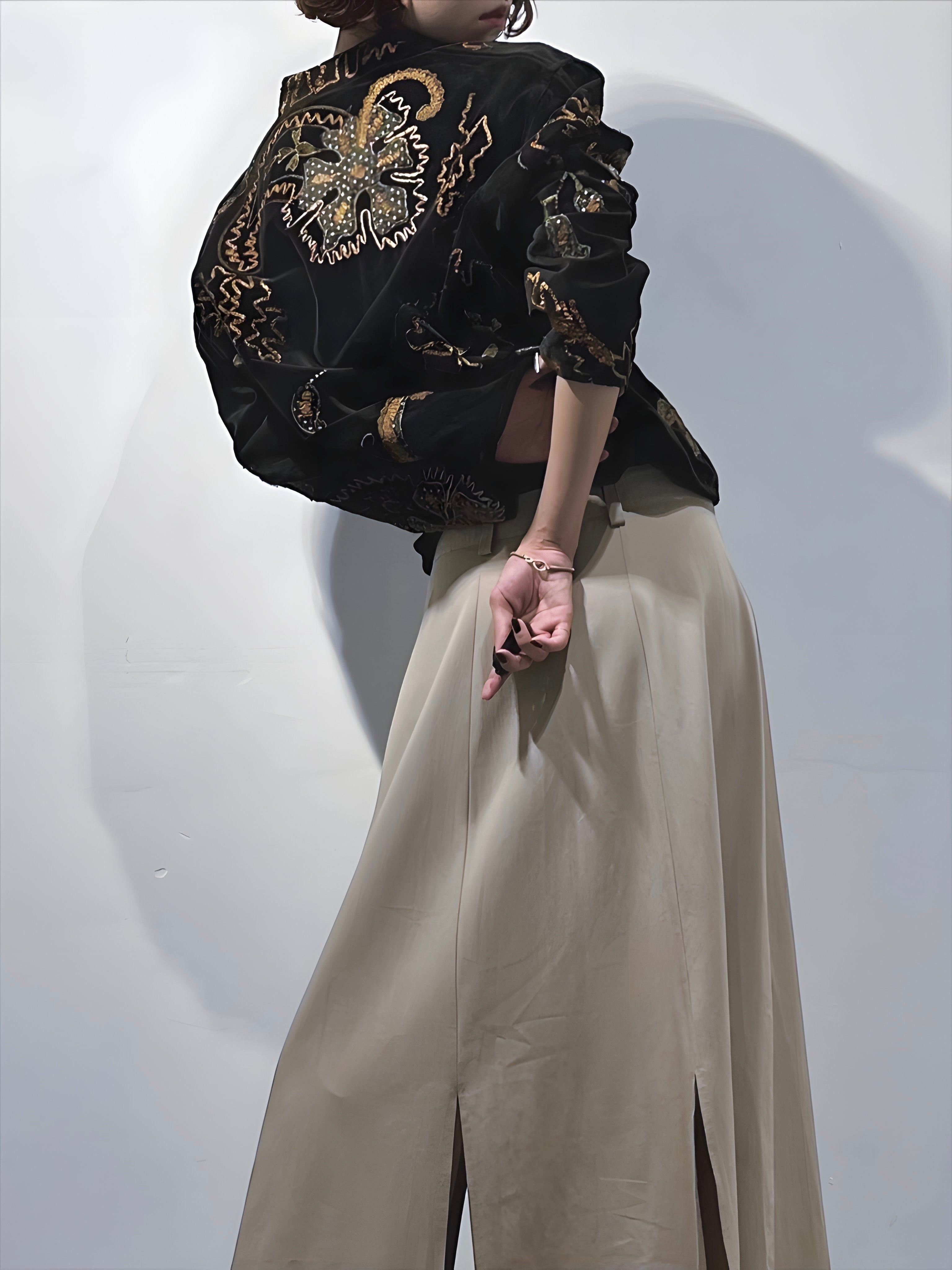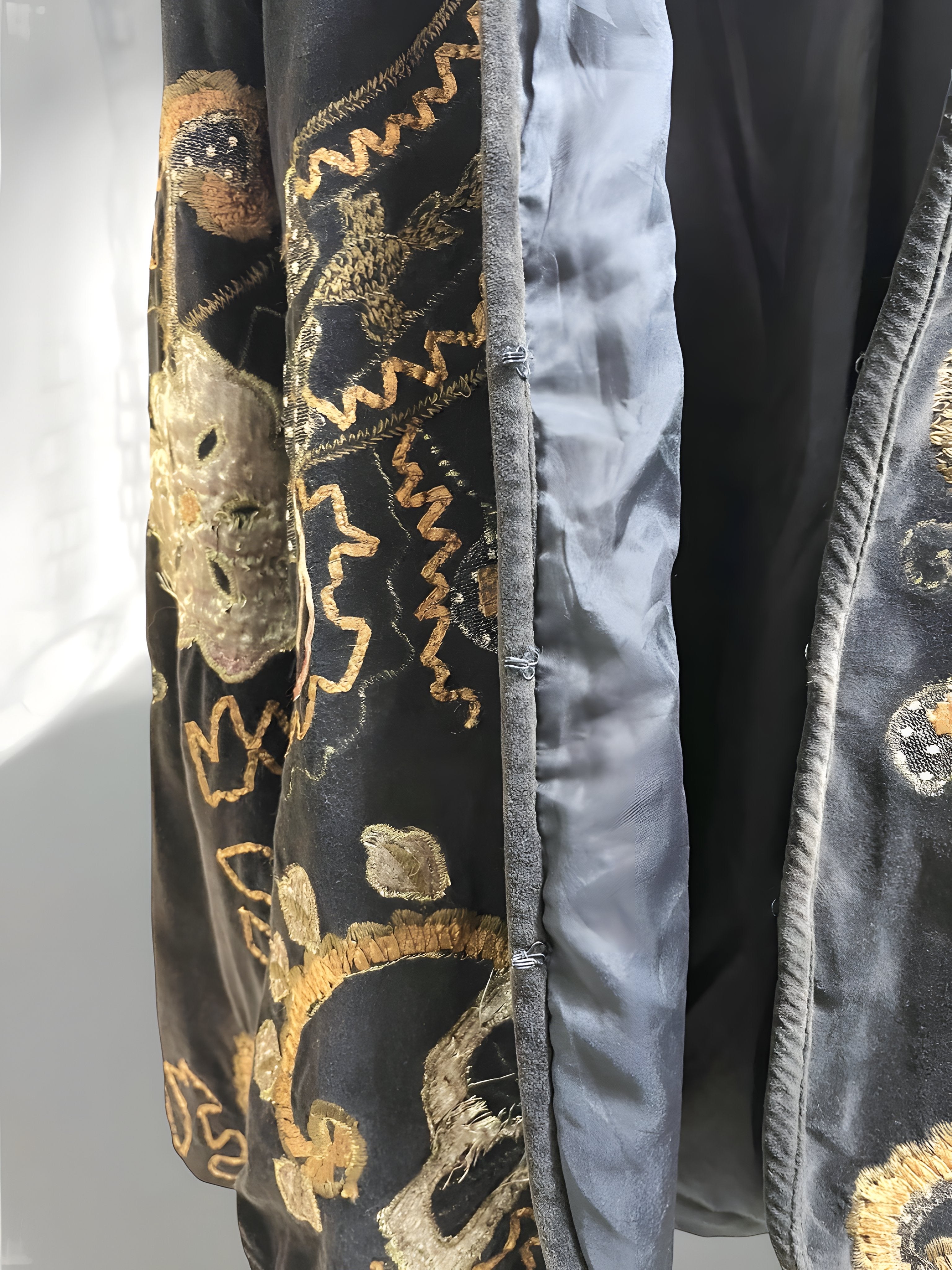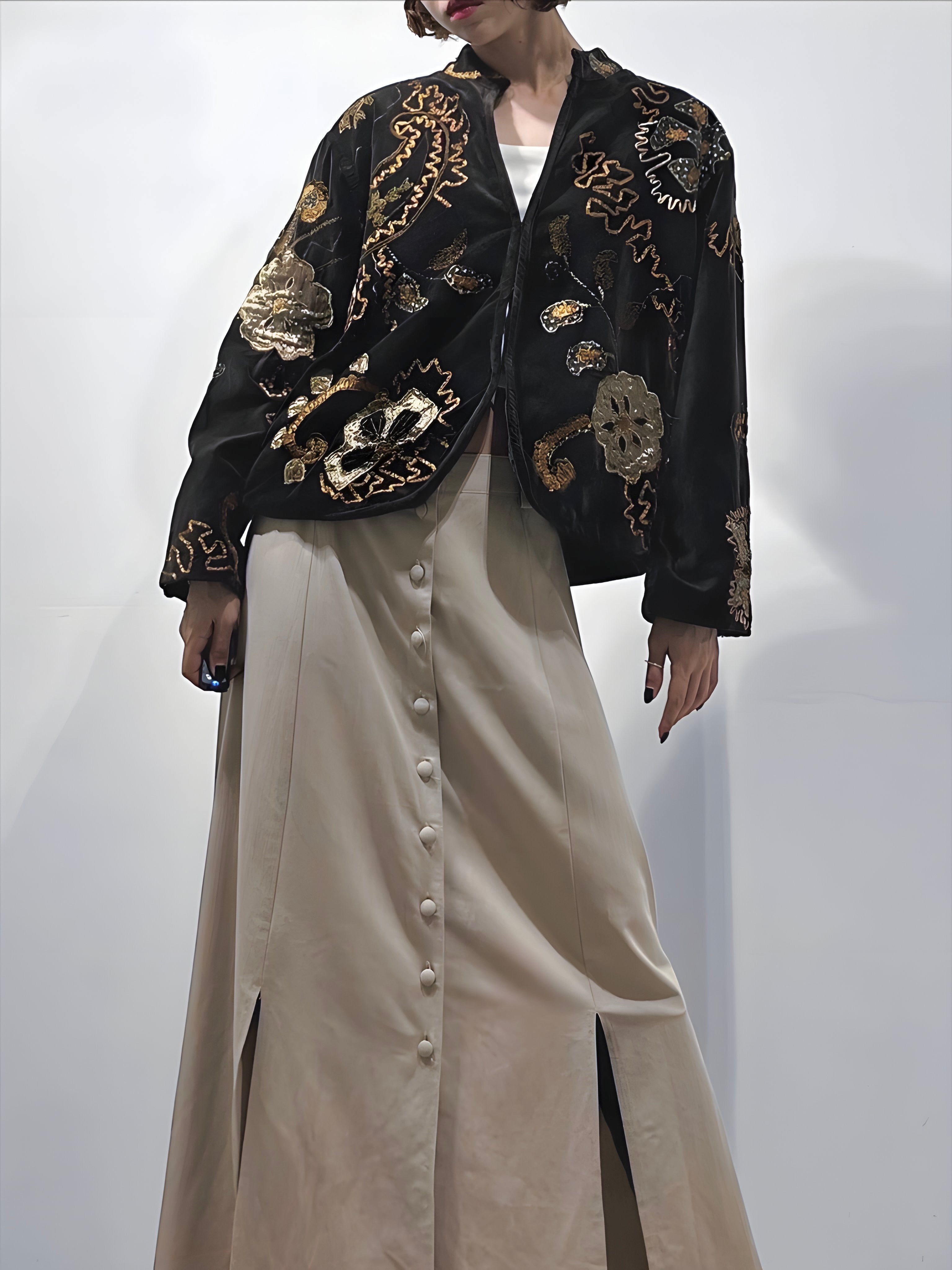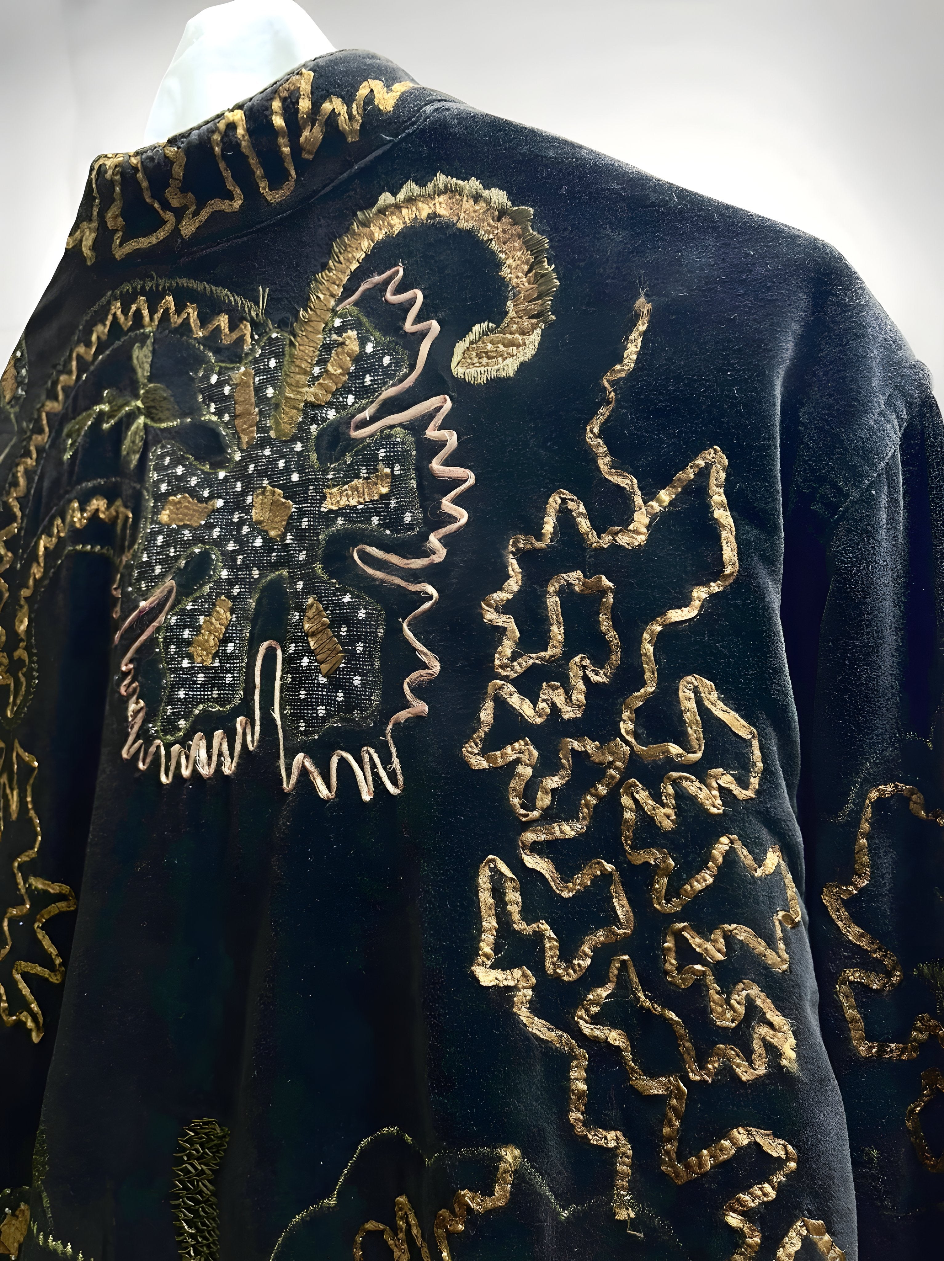 Vintage Black Cotton Jacket with Metallic Floral Embroidery (90s)