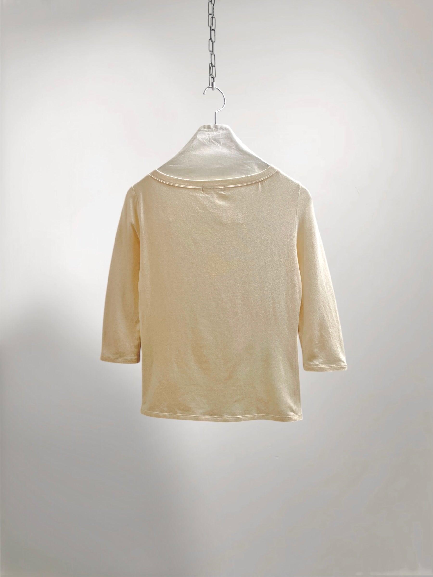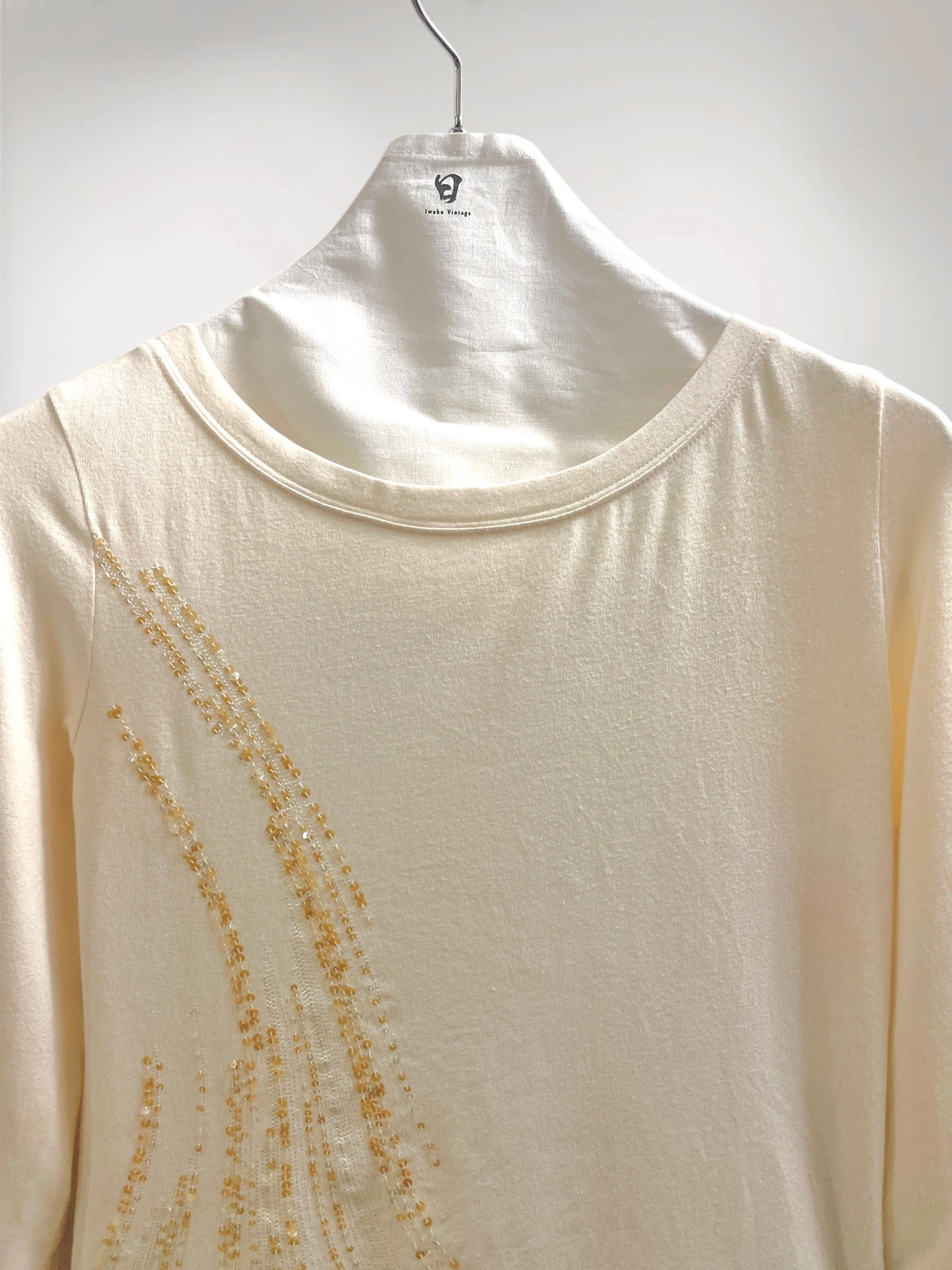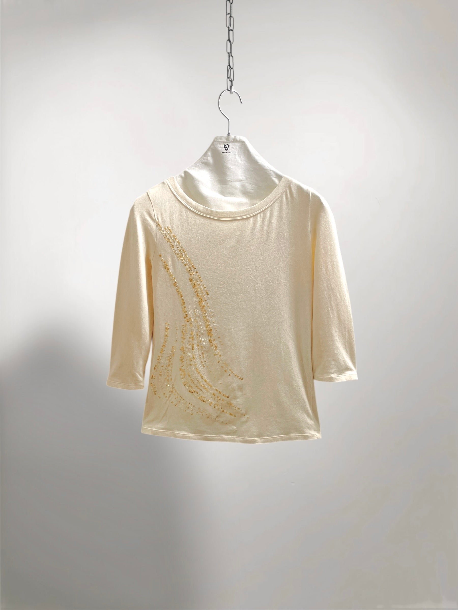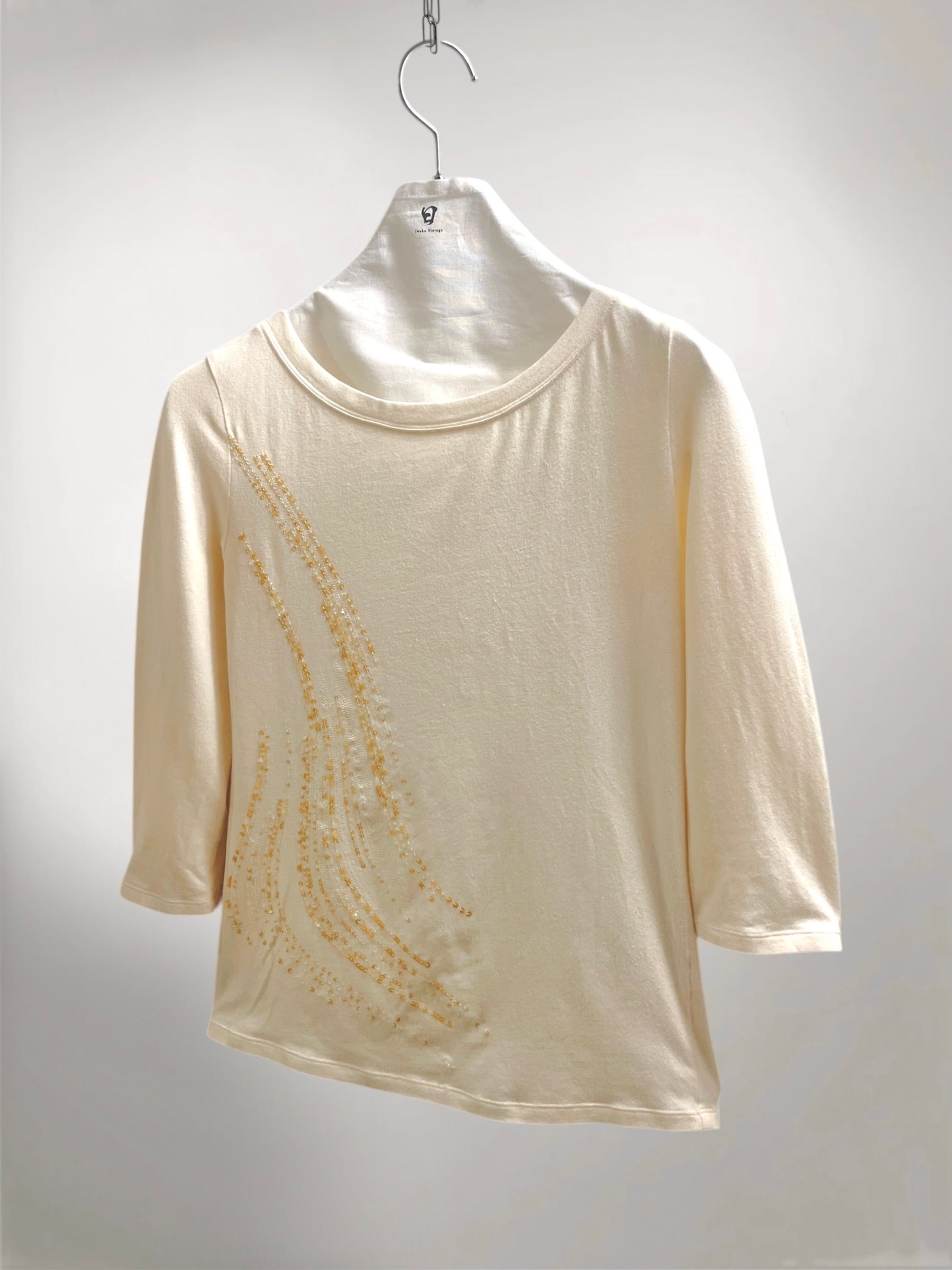 " ANTEPRIMA " Ivory Cropped Top with Beaded Abstract Motif (Early 2000s) –, Subtle Decorative Accent