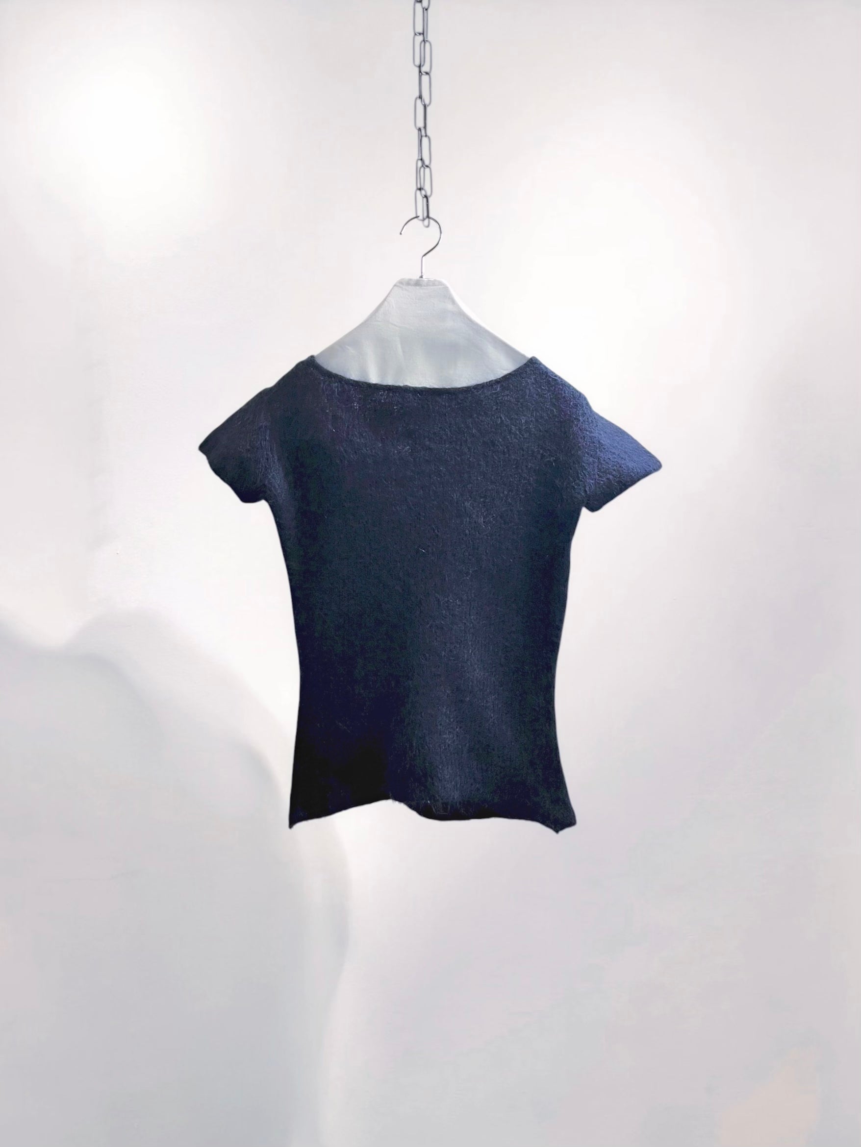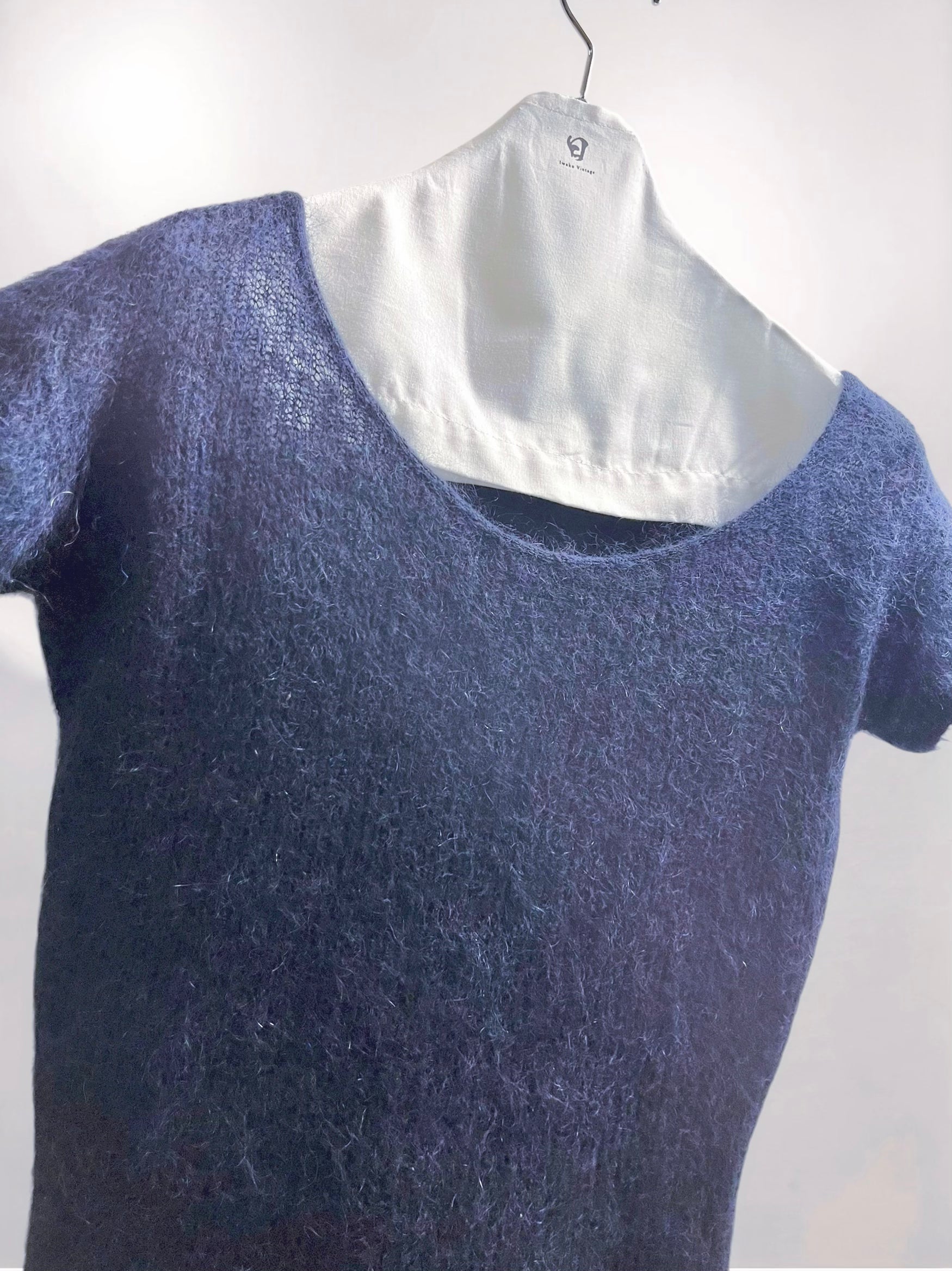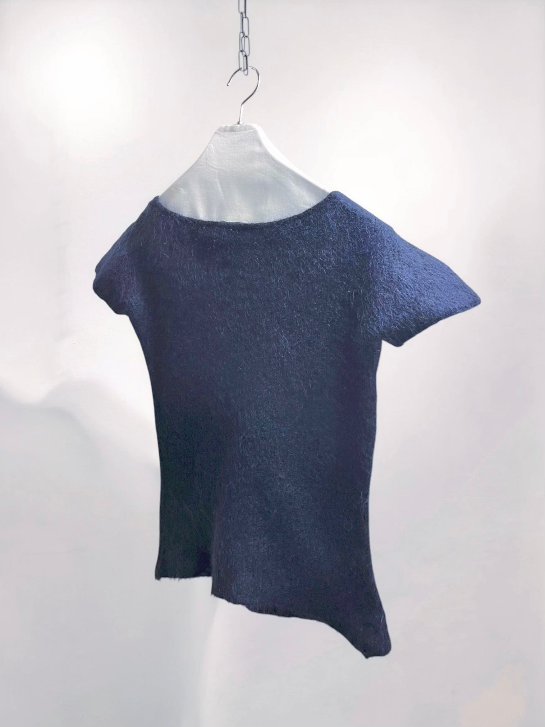 MaxMara Navy Mohair Short-Sleeve Top with Shaggy Texture (Late 90s–Early 2000s) – Italy Made