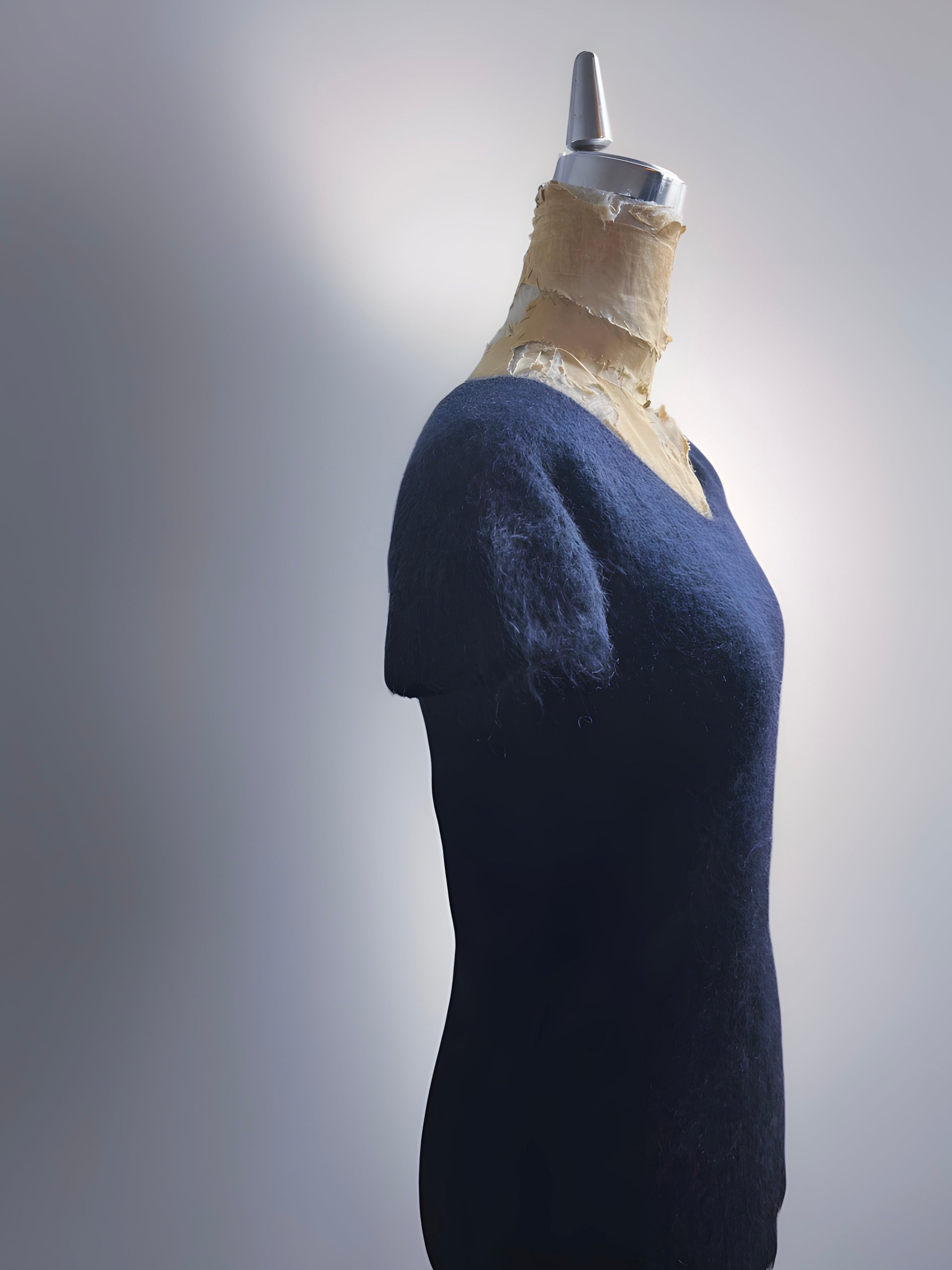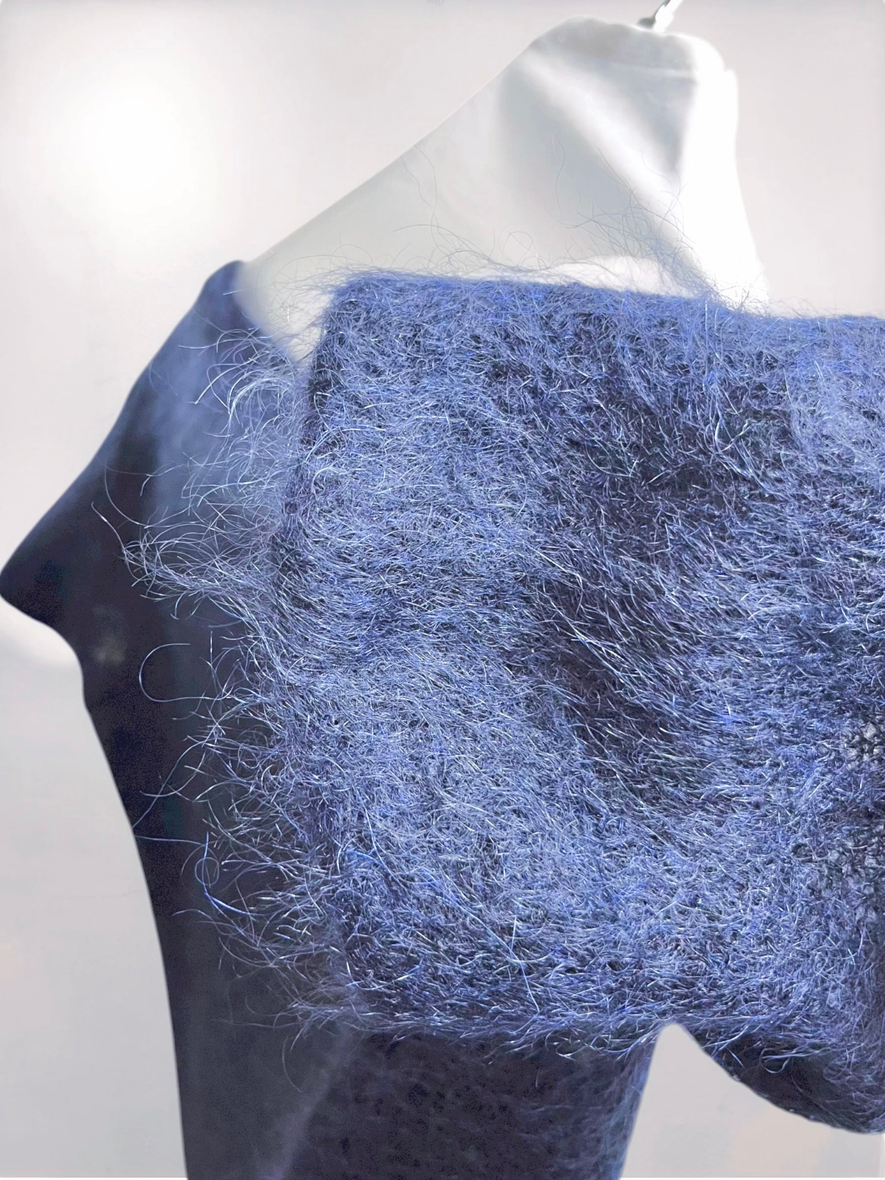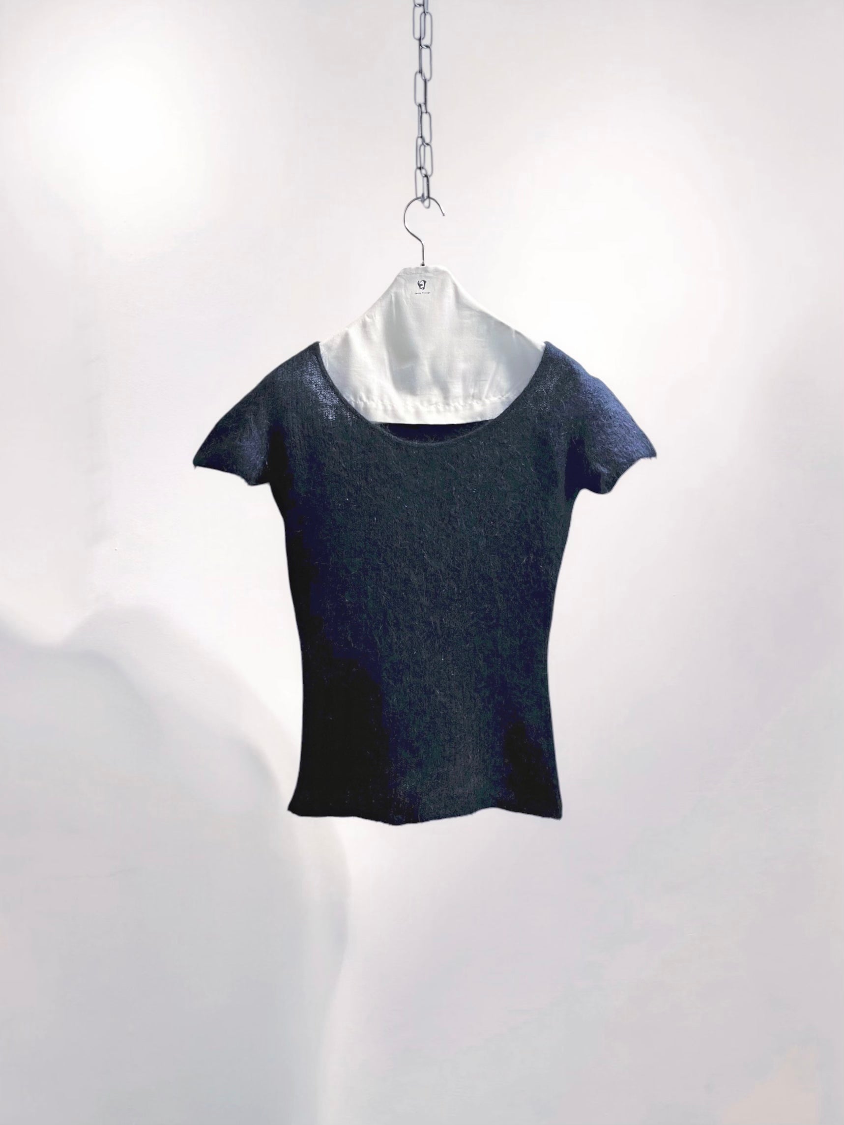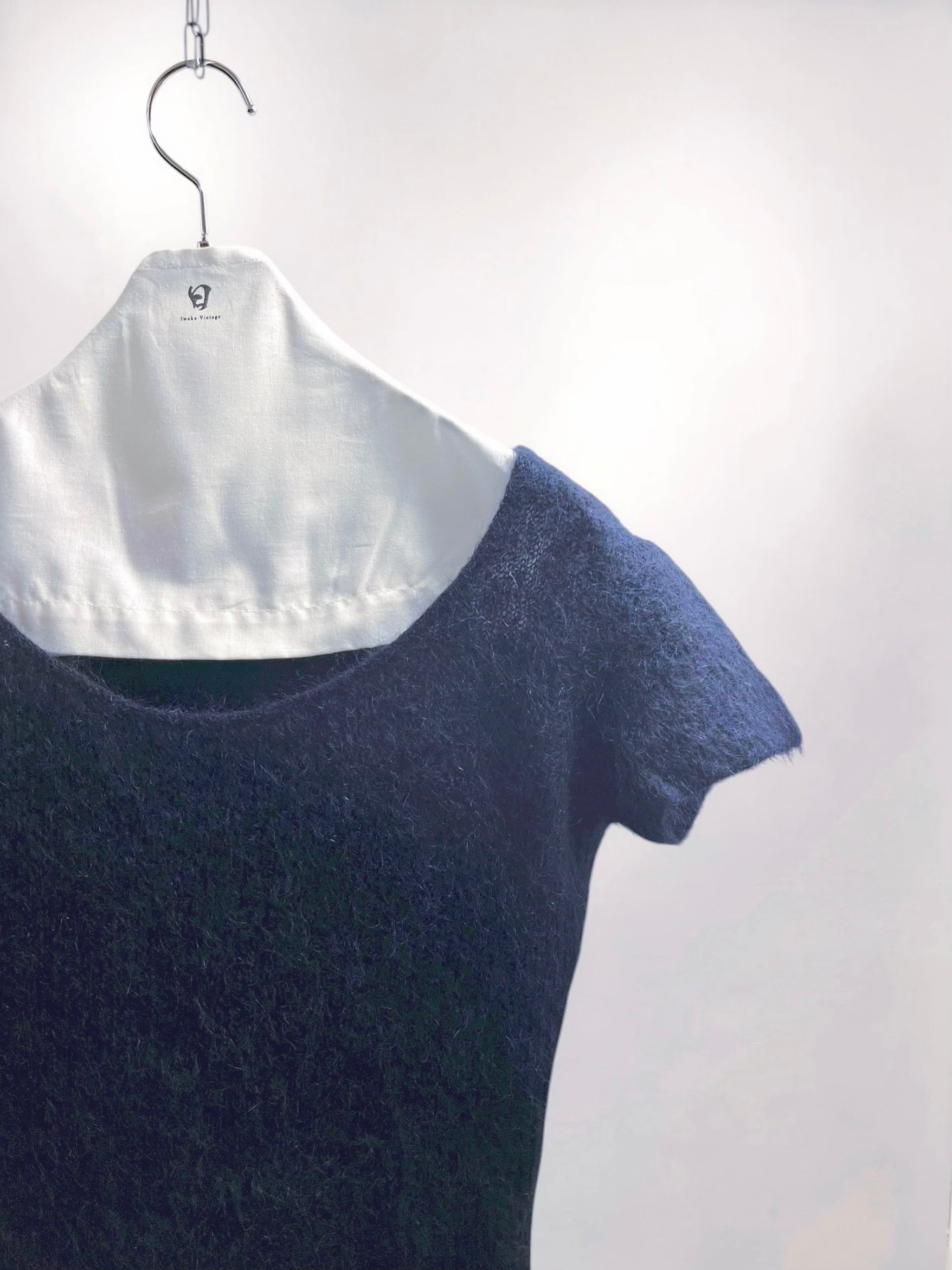 MaxMara Navy Mohair Short-Sleeve Top with Shaggy Texture (Late 90s–Early 2000s) – Italy Made