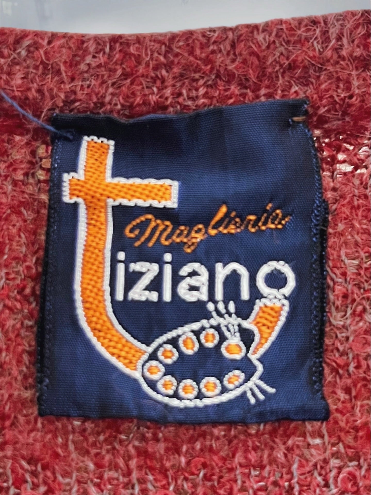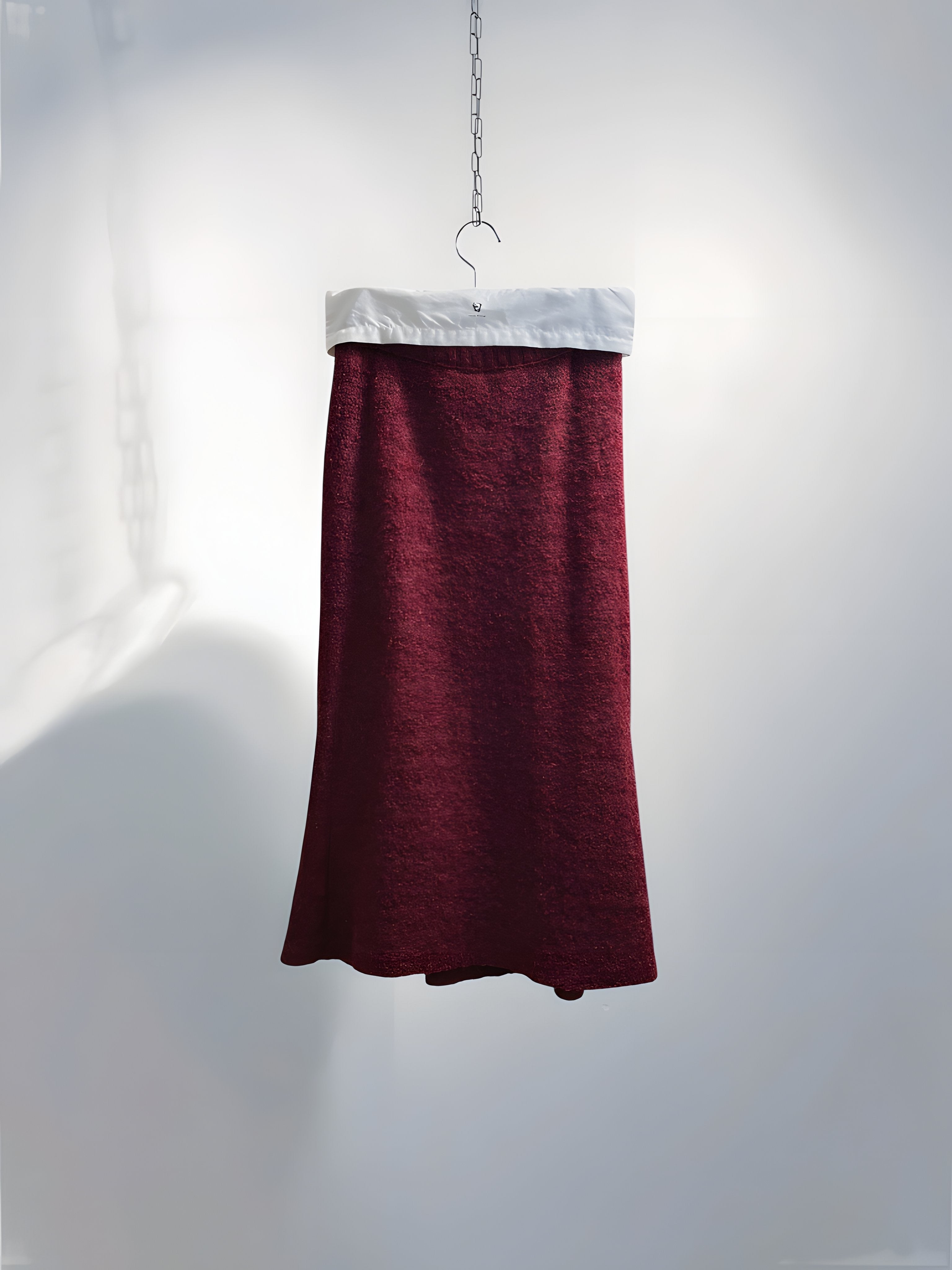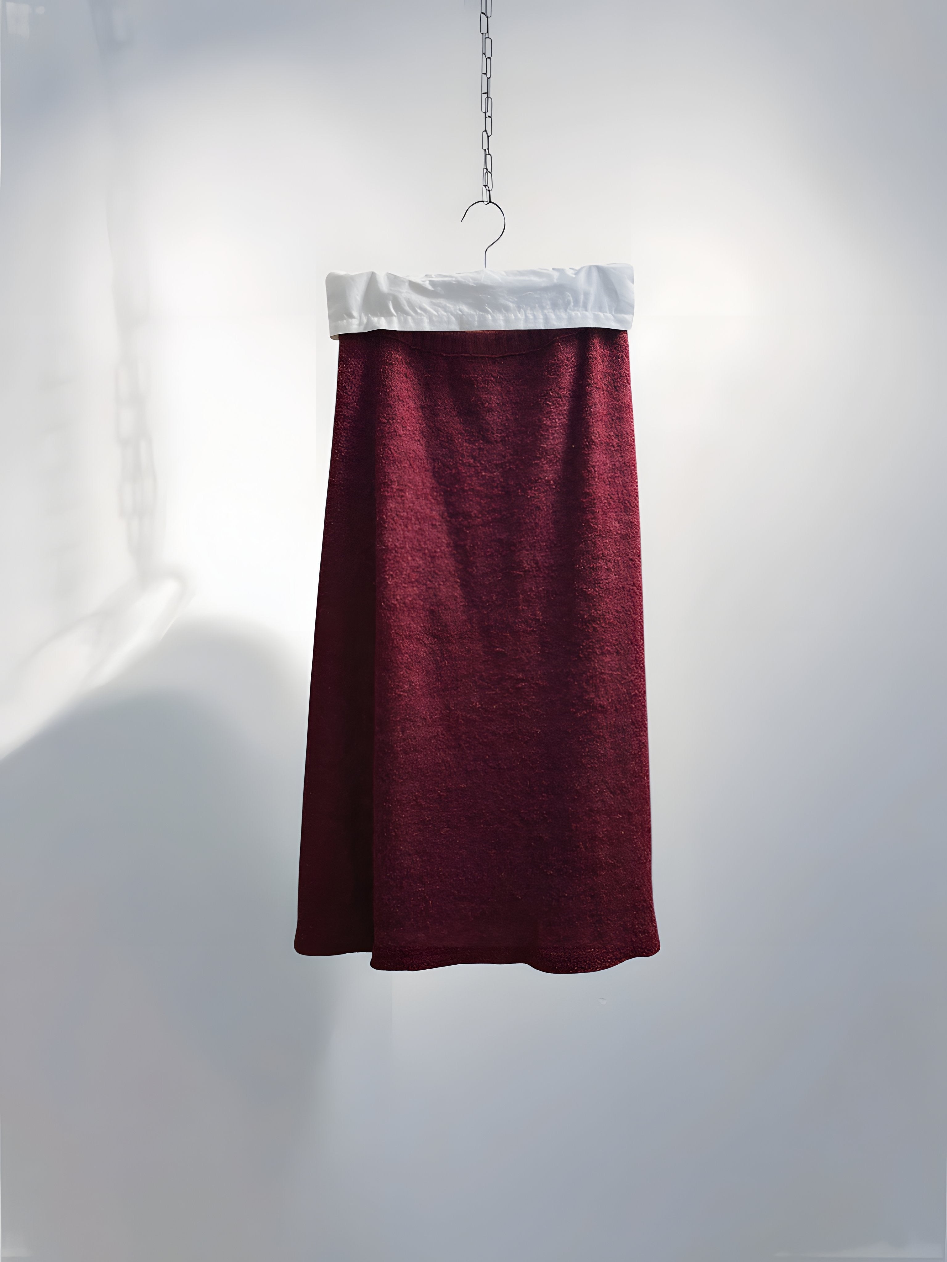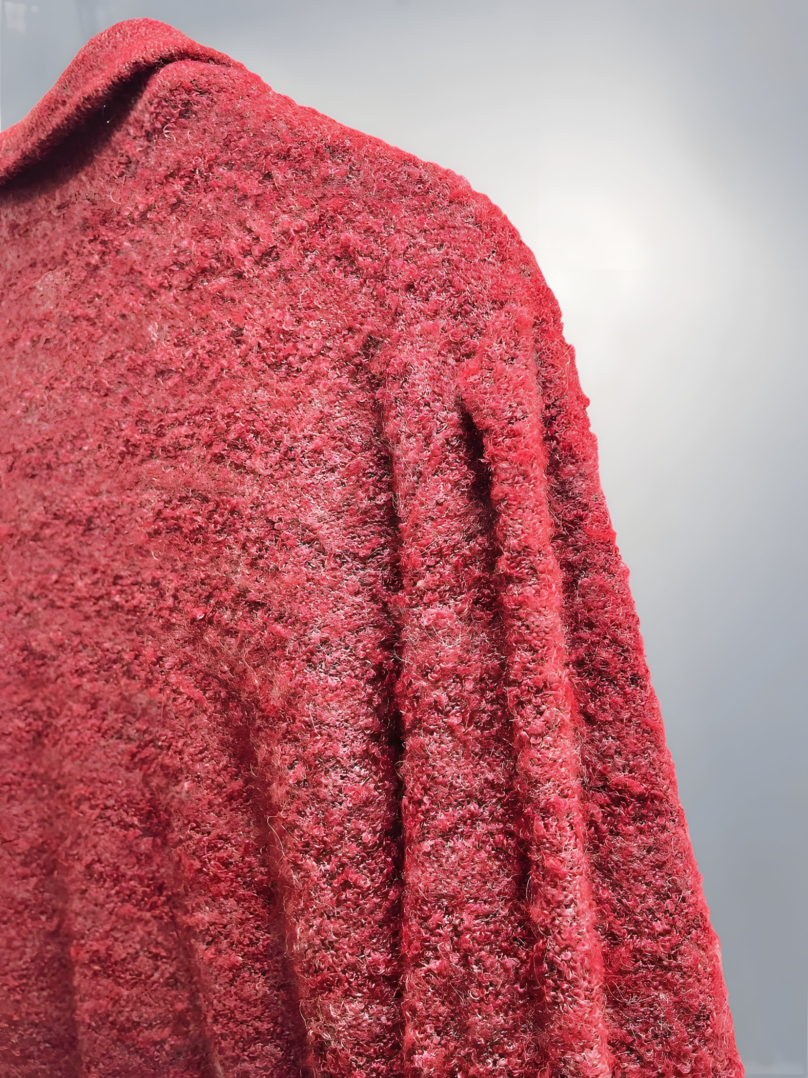 Vintage Bordeaux Wool Blend Knit Set with Open Collar (70s) – Textured Bouclé Finish