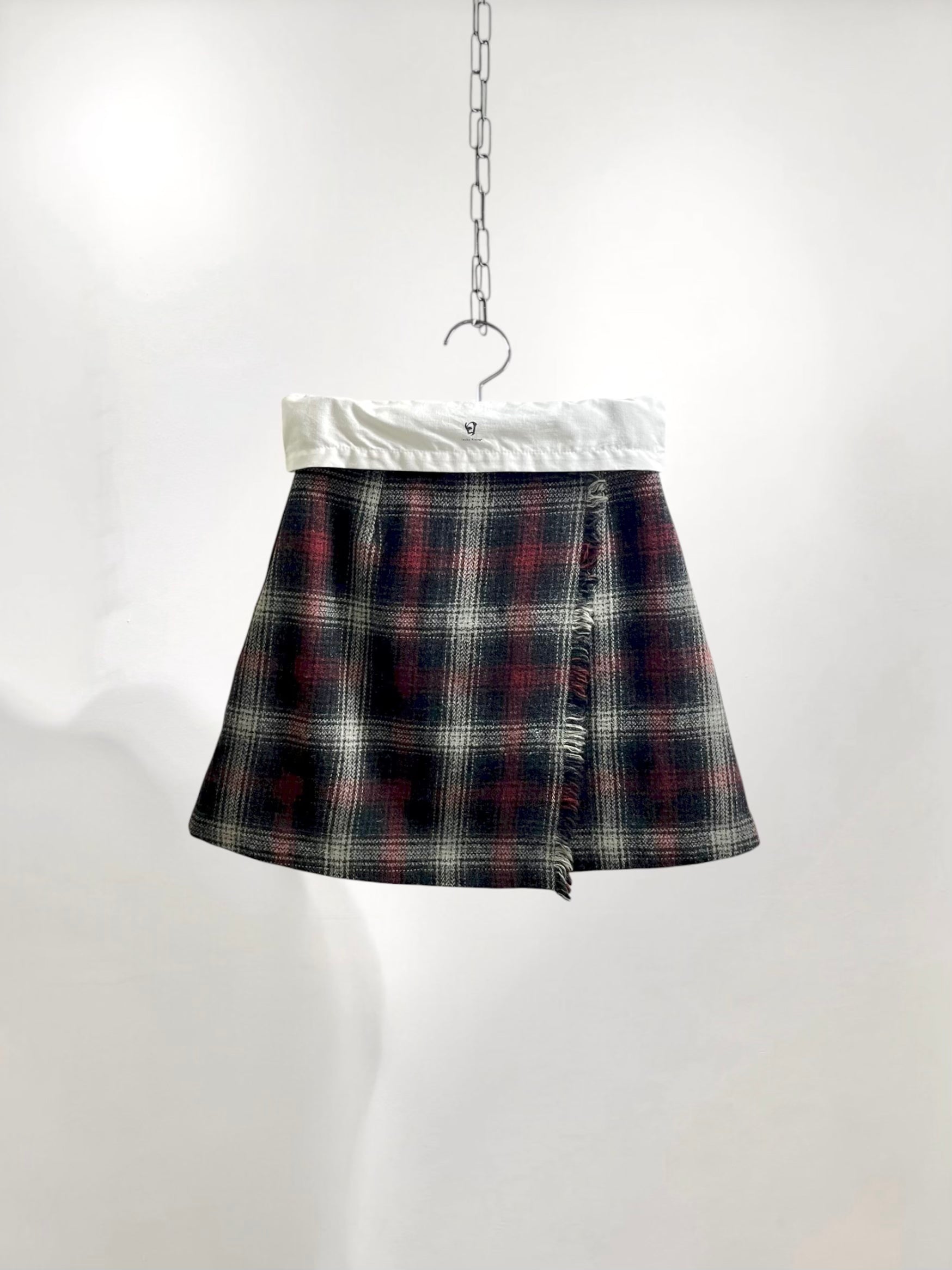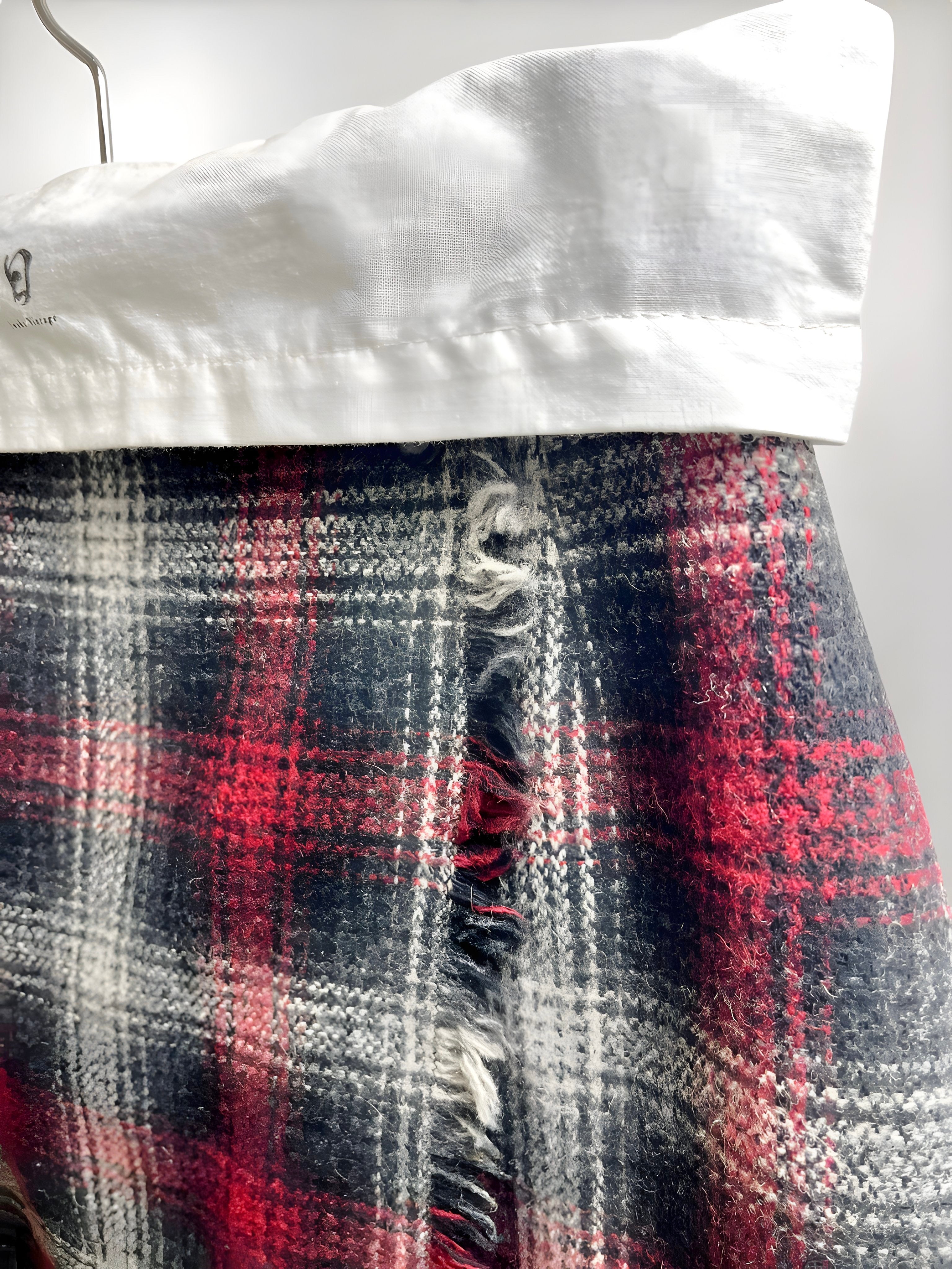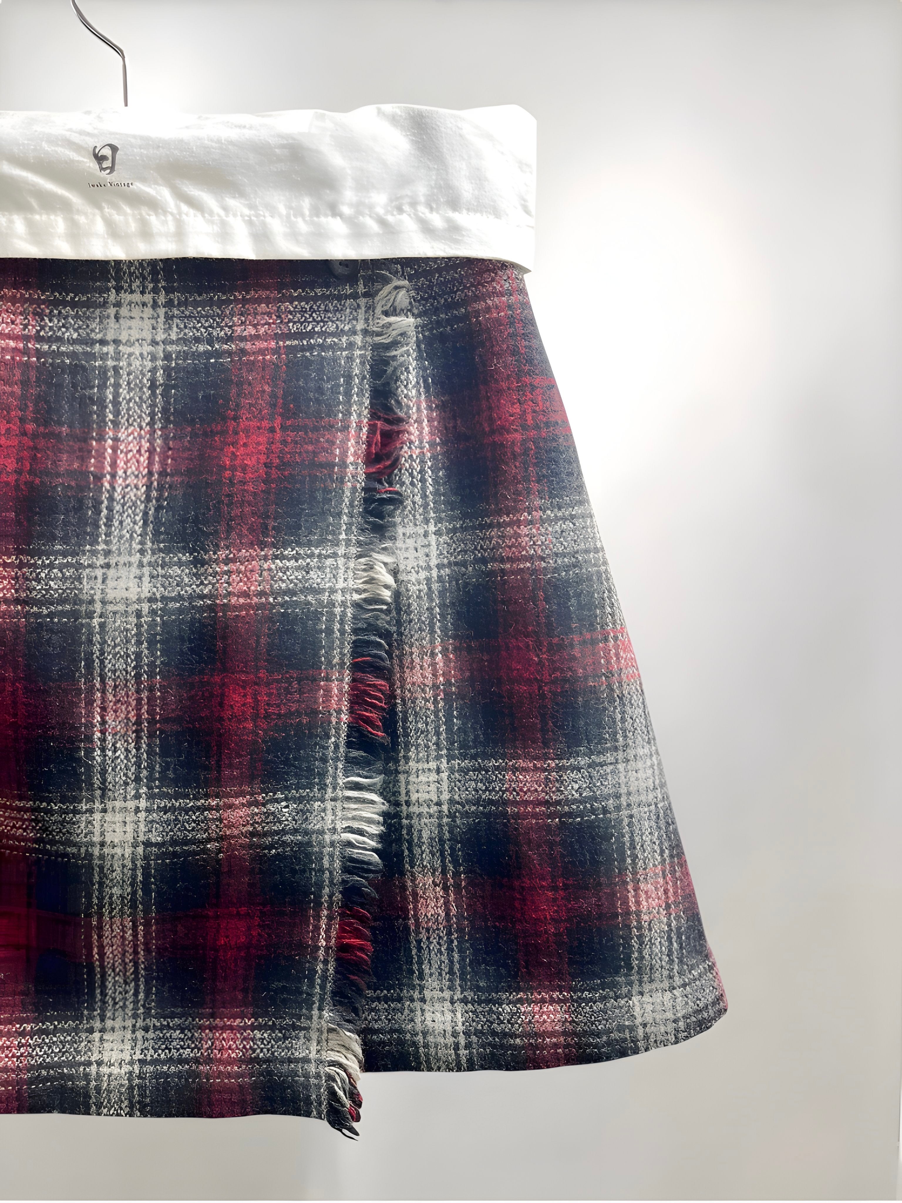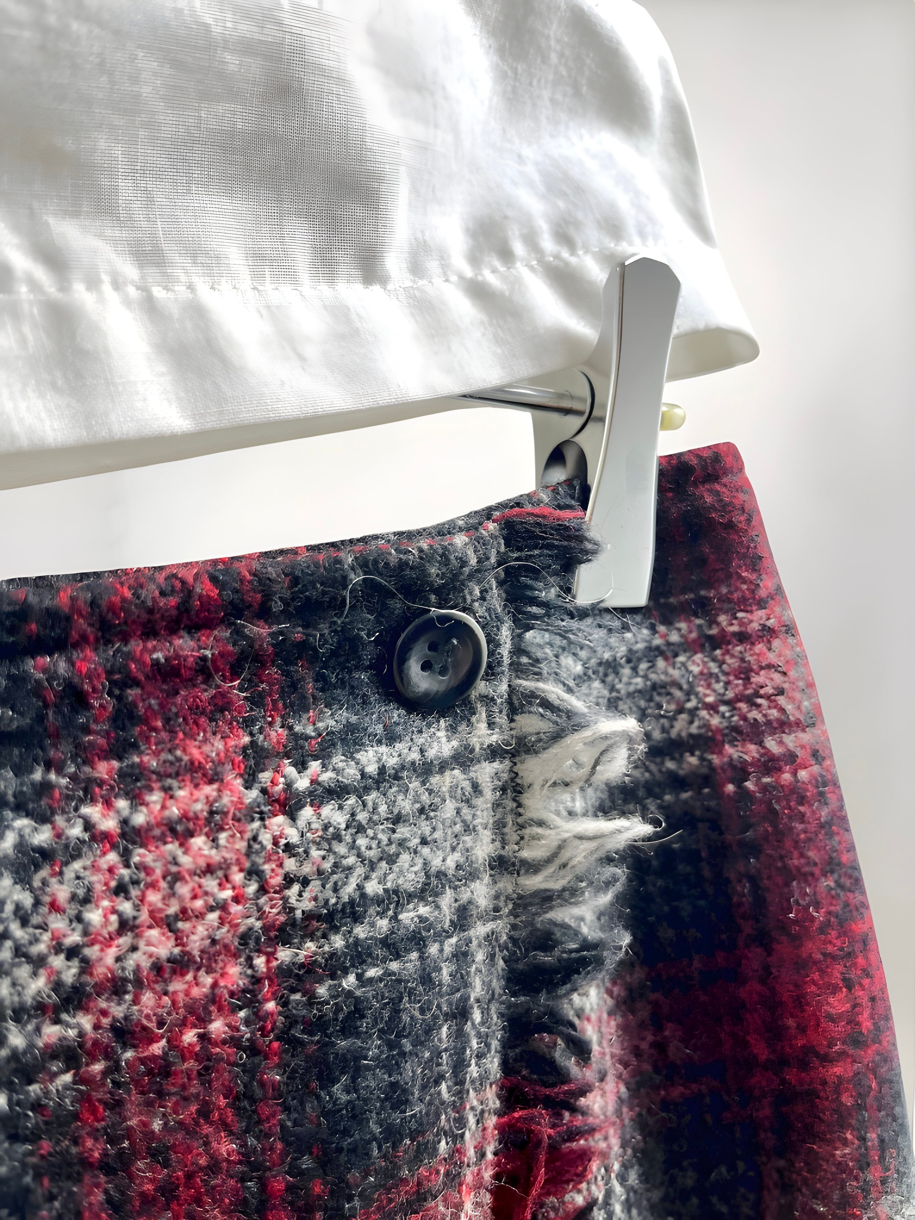 Burgundy Wool Blend A-Line Mini Skirt with Fringed Finish Plaid (Late 90s–Early 2000s) – Italy Made