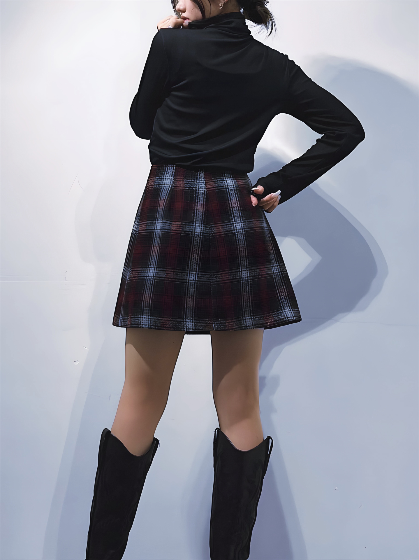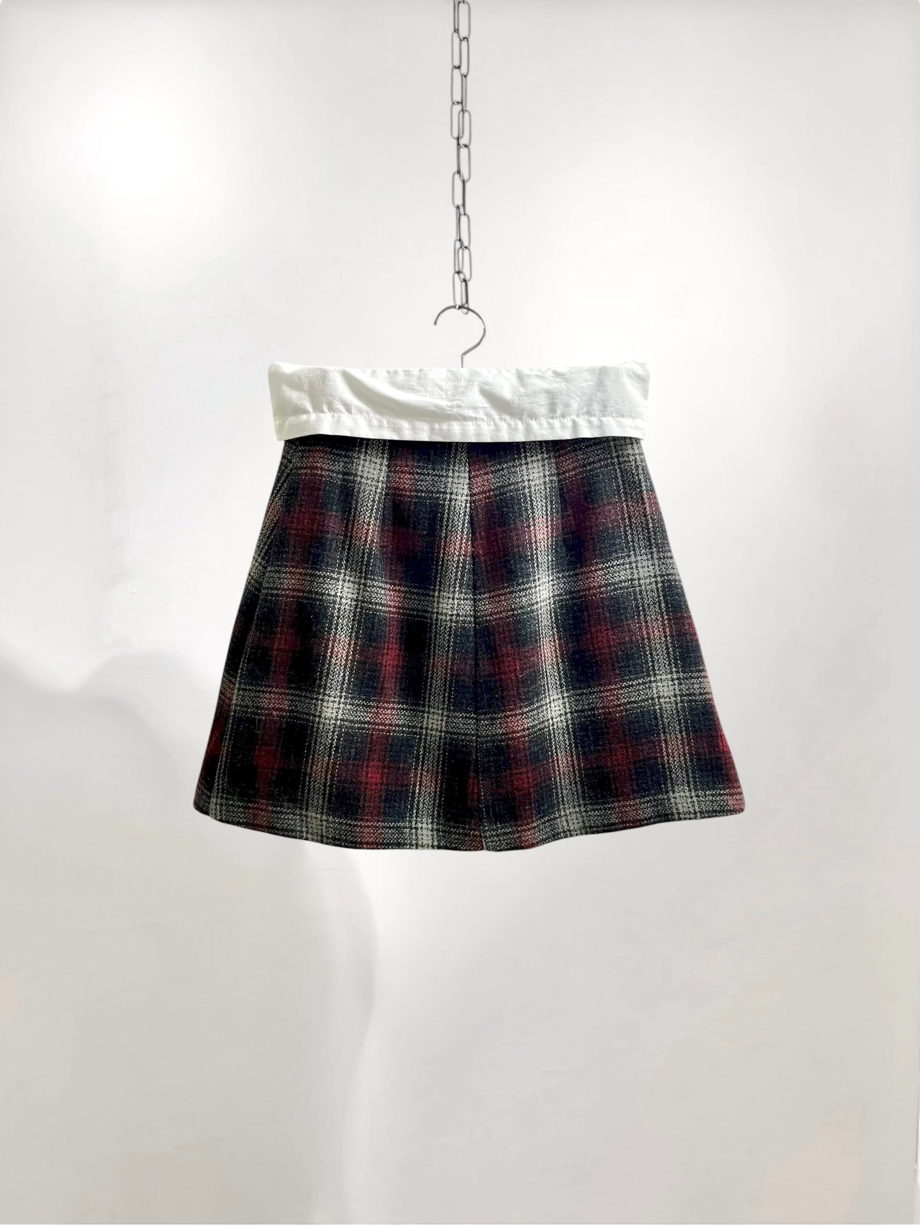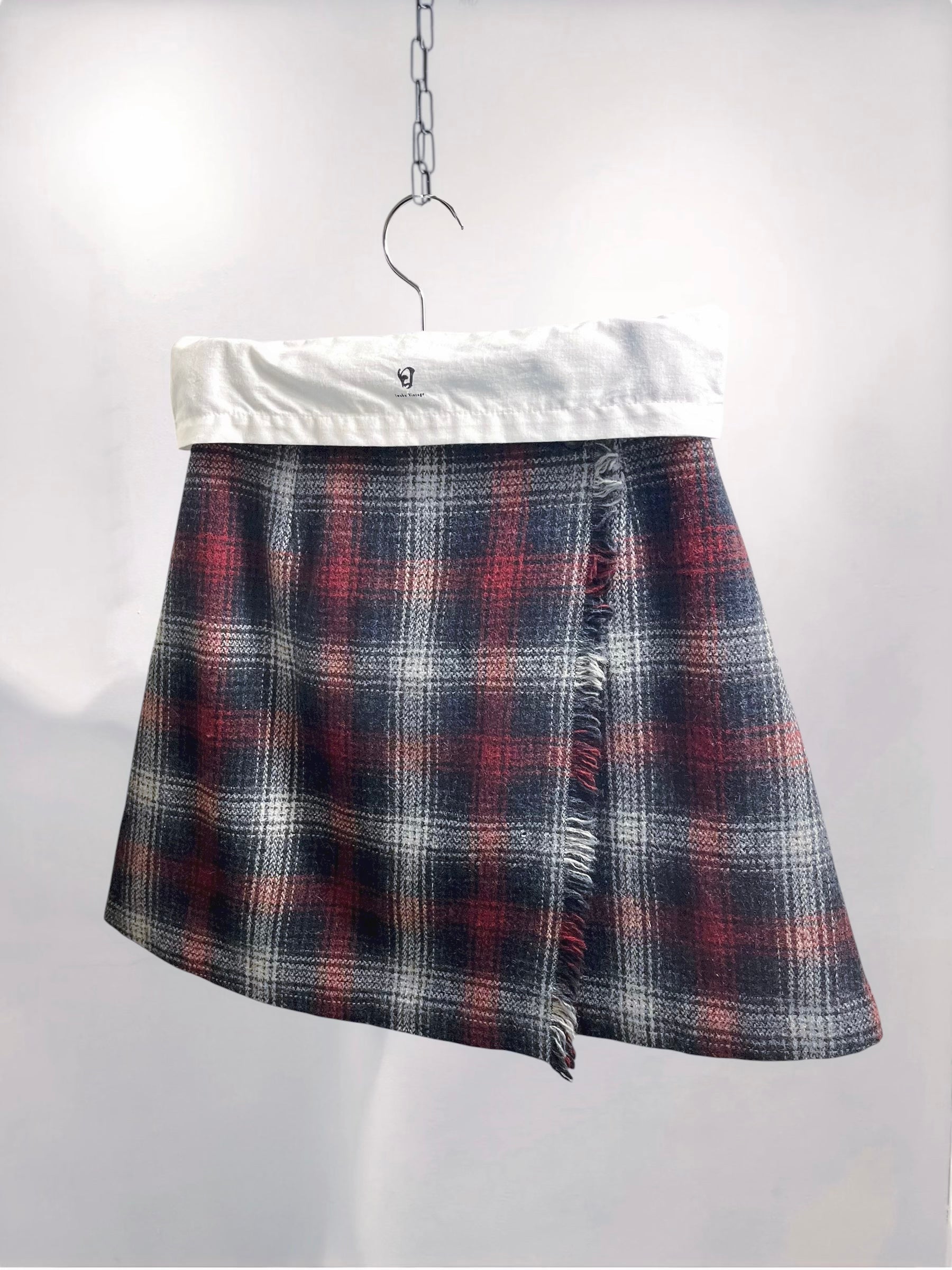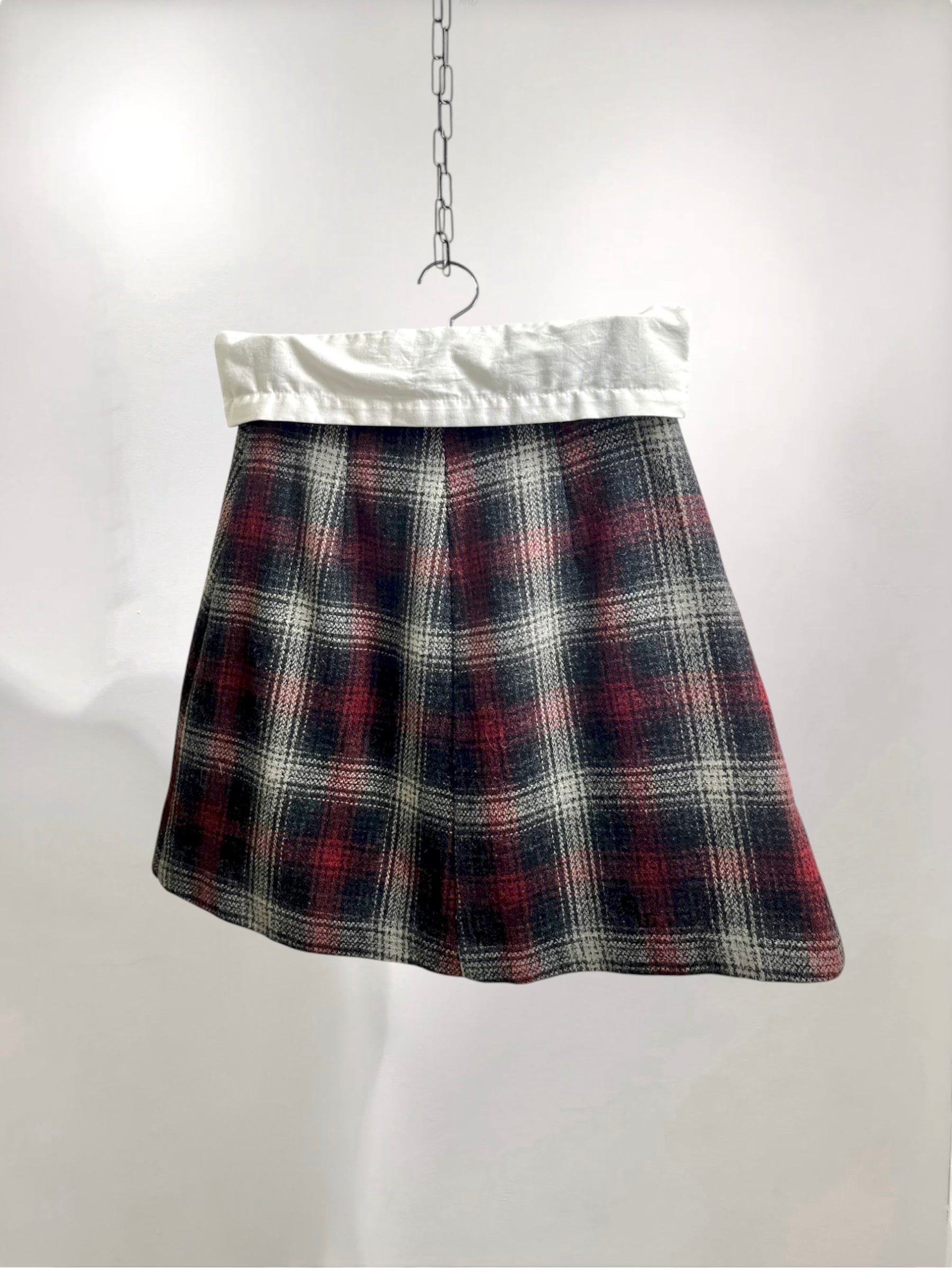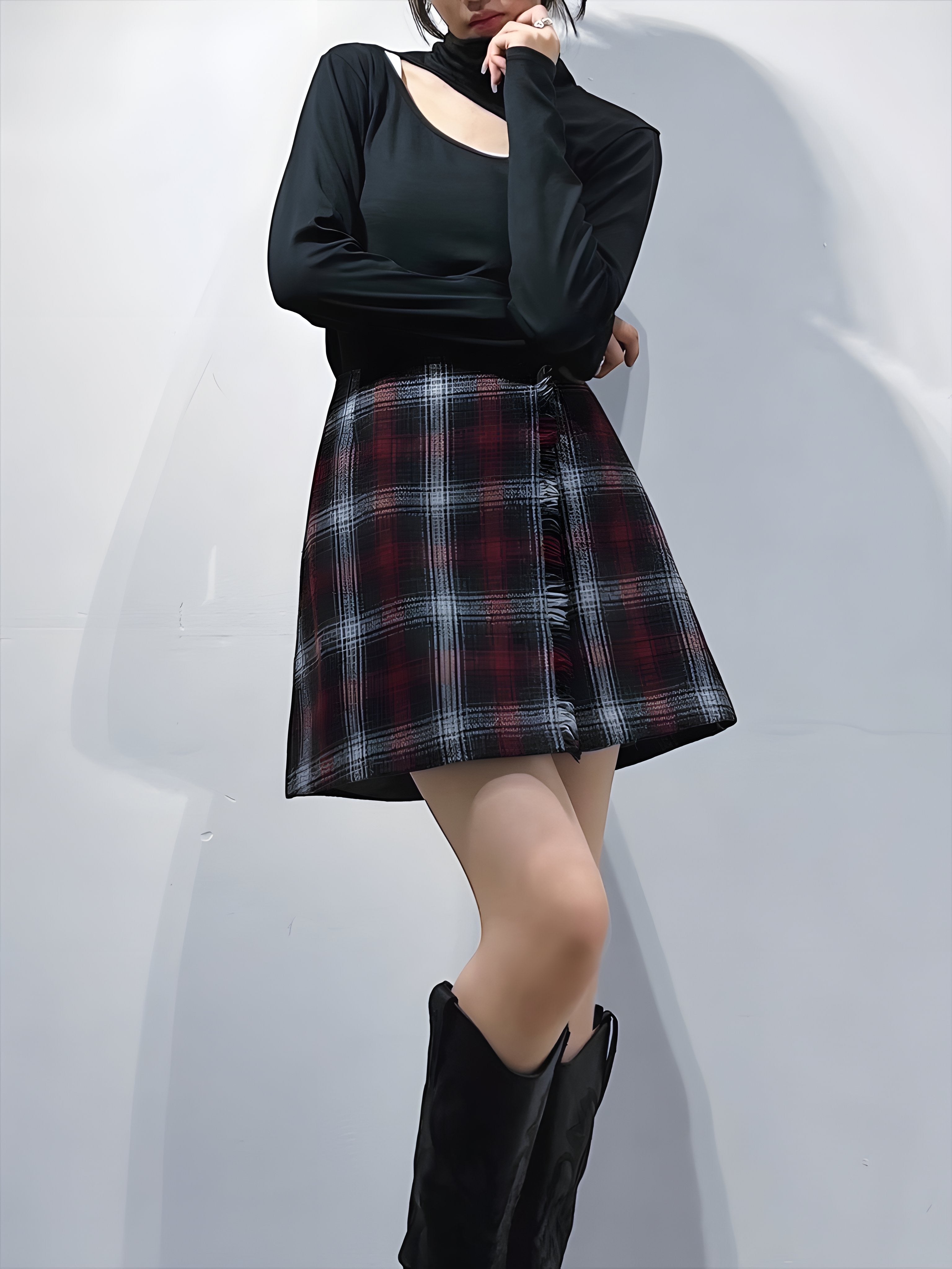 Burgundy Wool Blend A-Line Mini Skirt with Fringed Finish Plaid (Late 90s–Early 2000s) – Italy Made