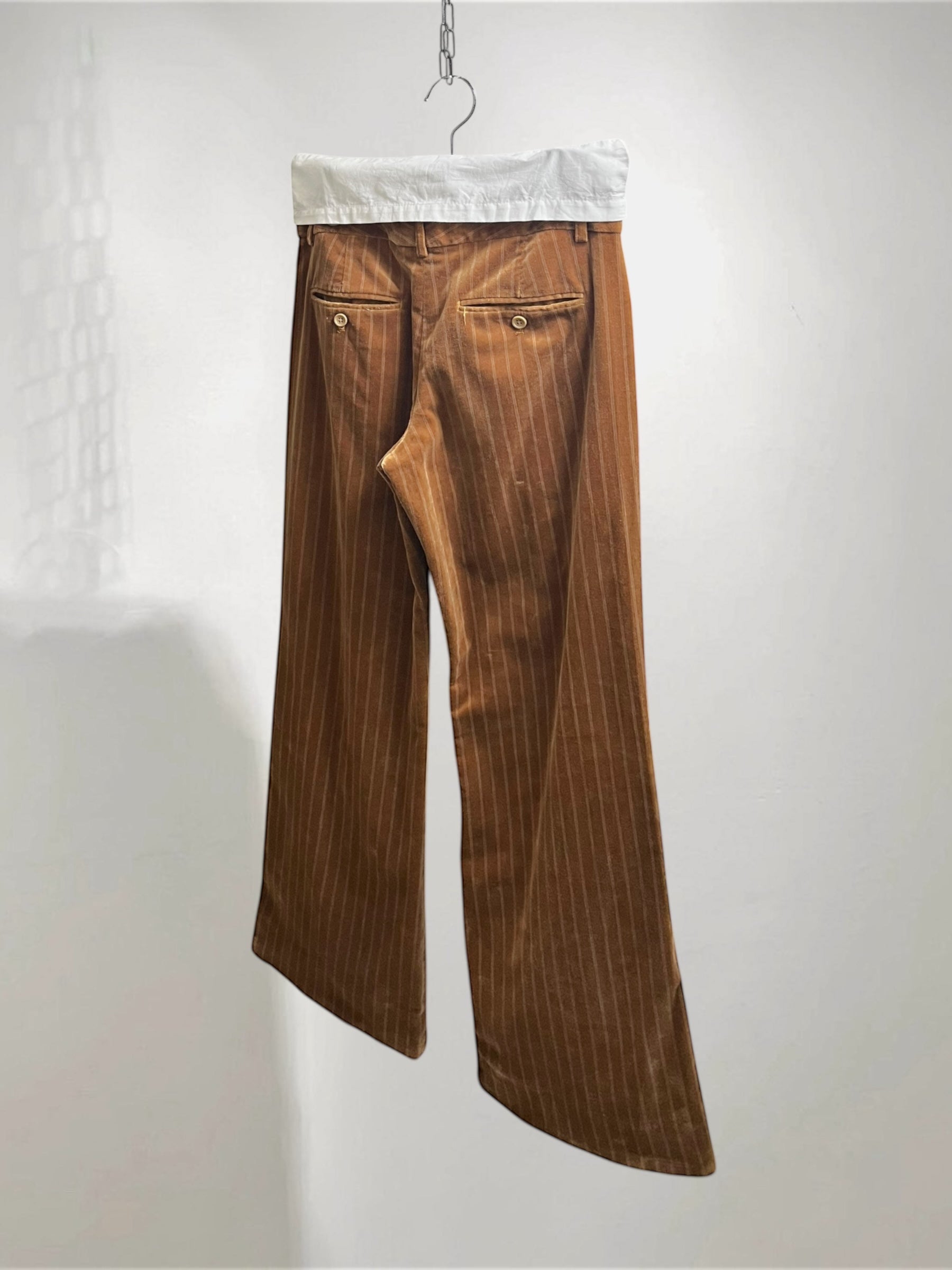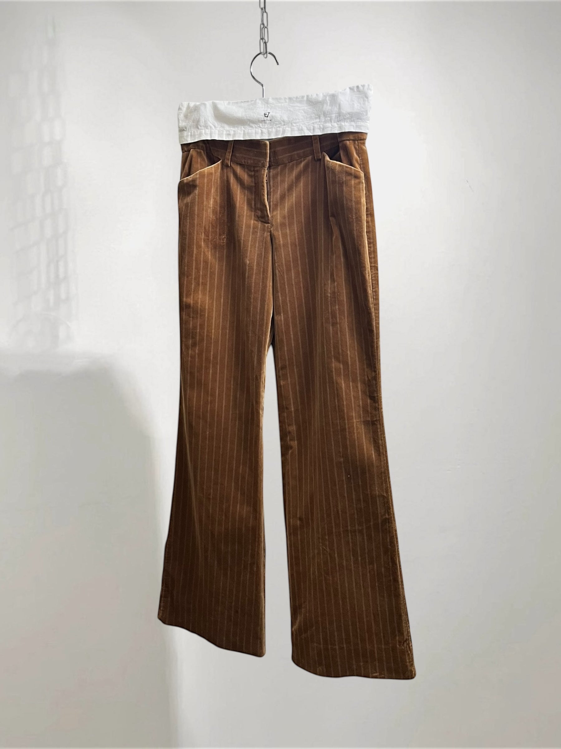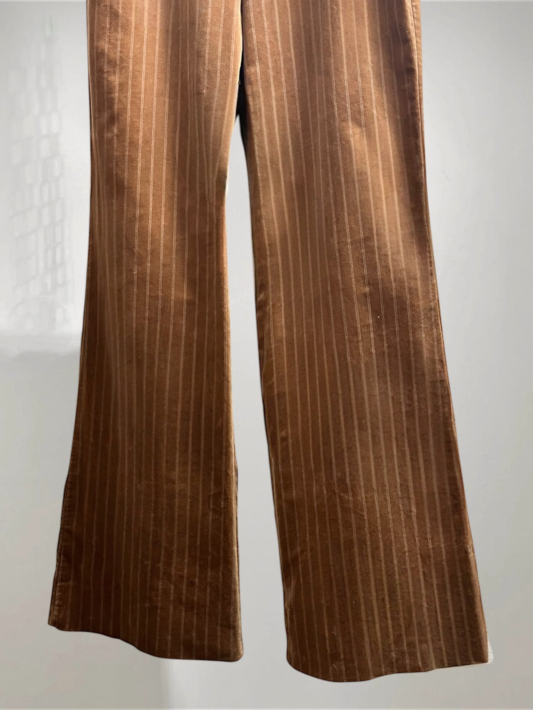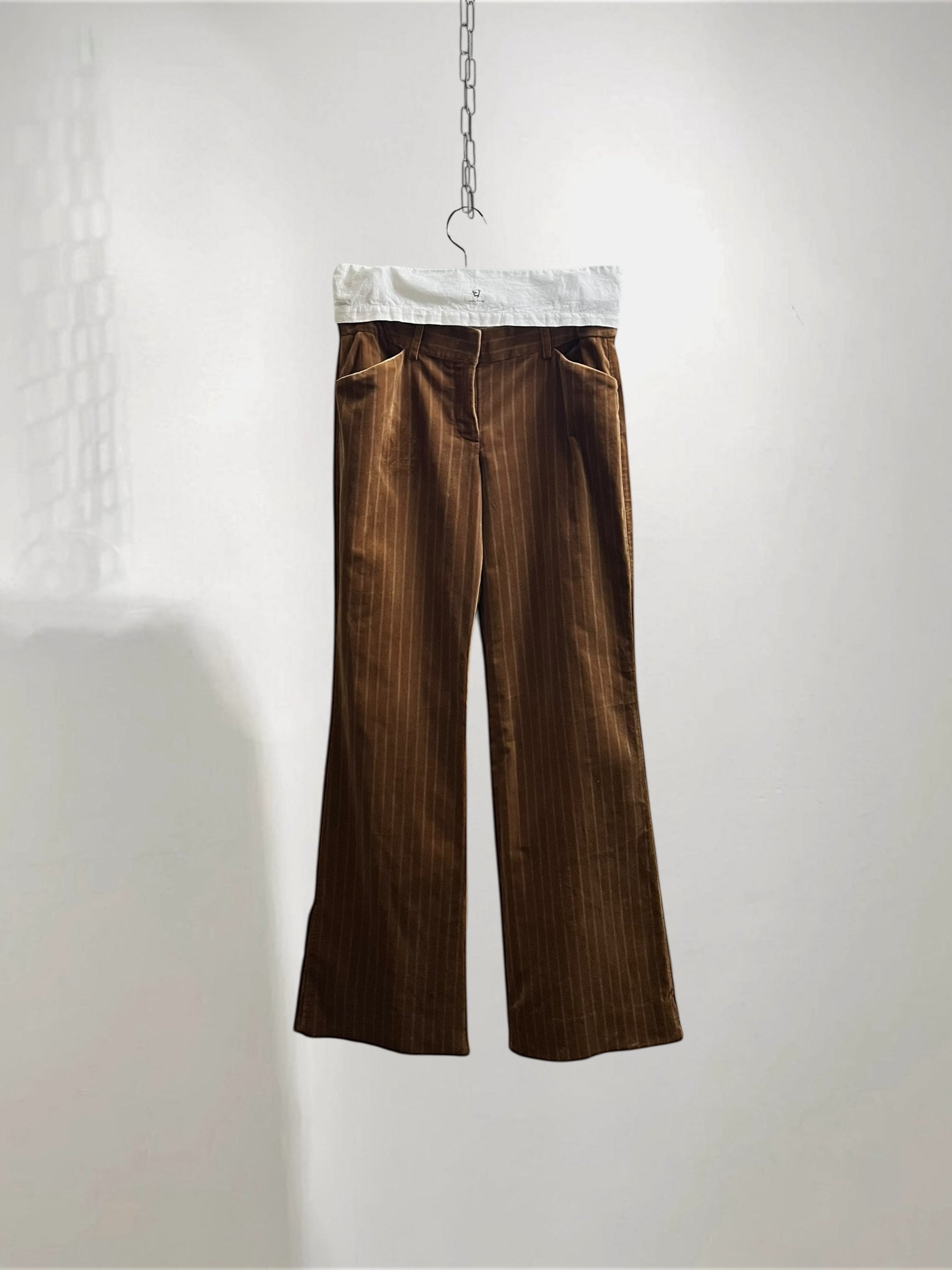 Brown Velvet Flared Pants with Pinstripe (Late 90s–Early 2000s) – Refined Color Contrast