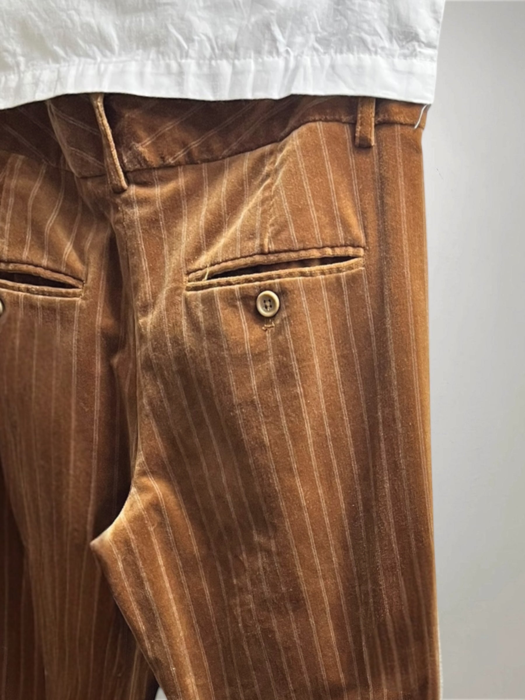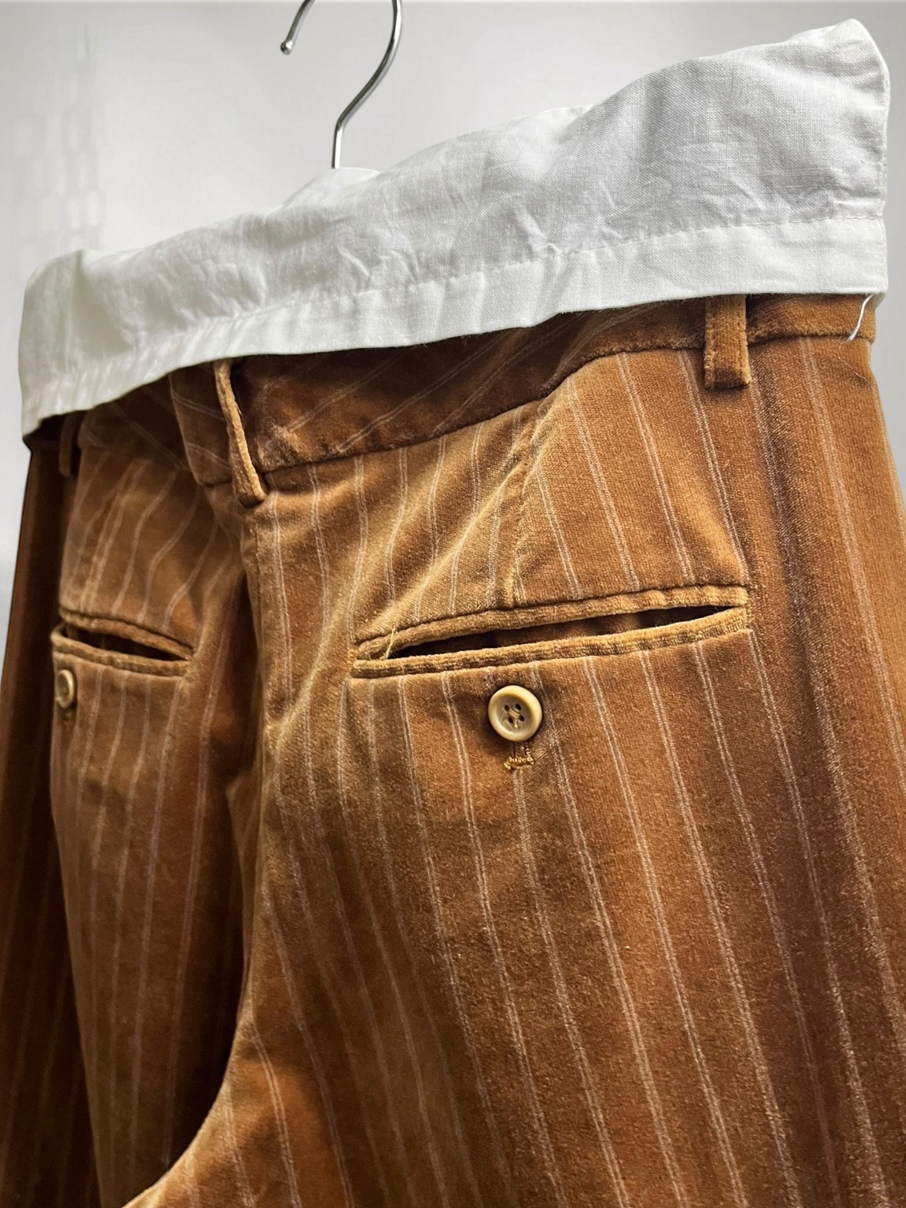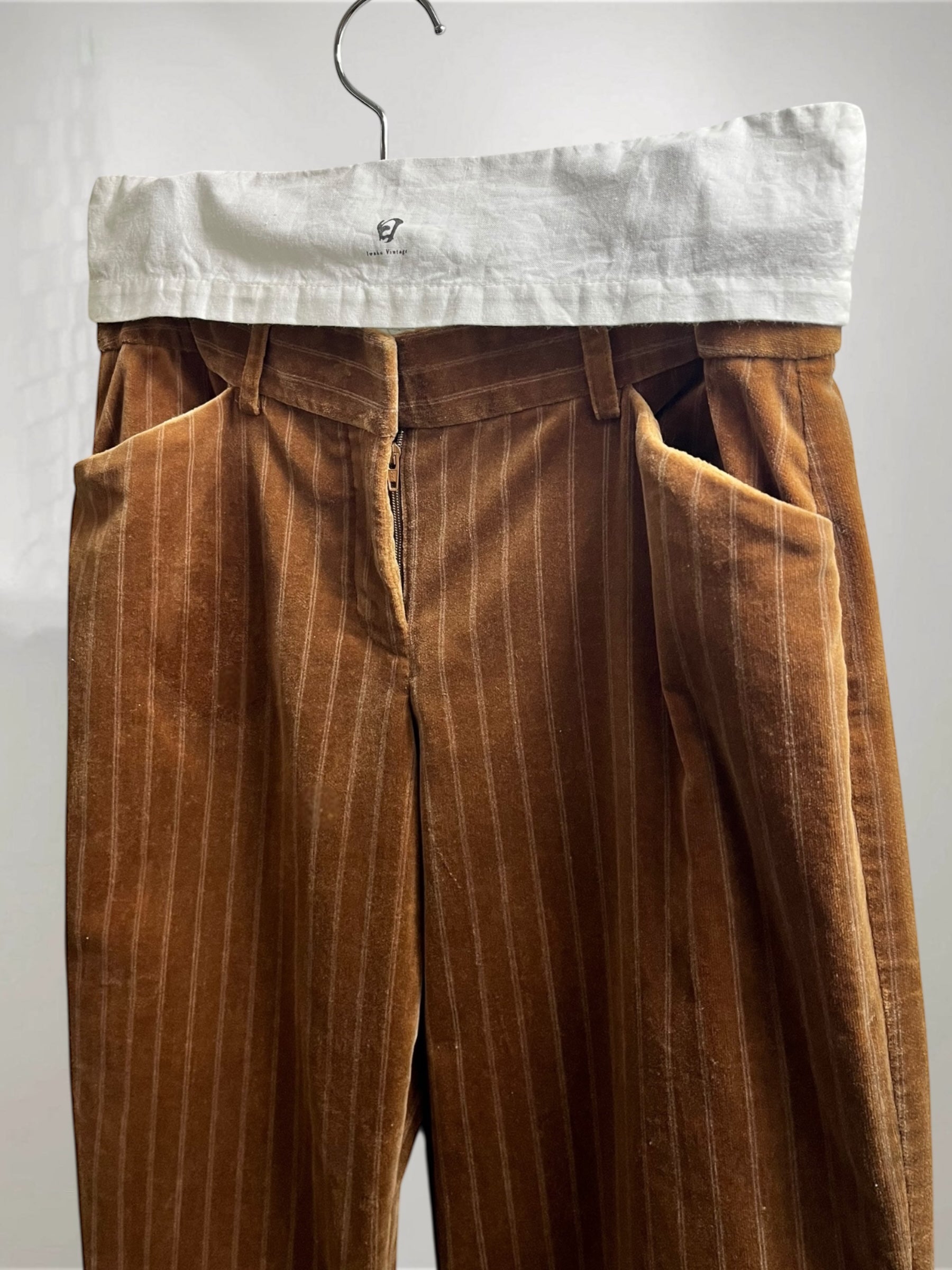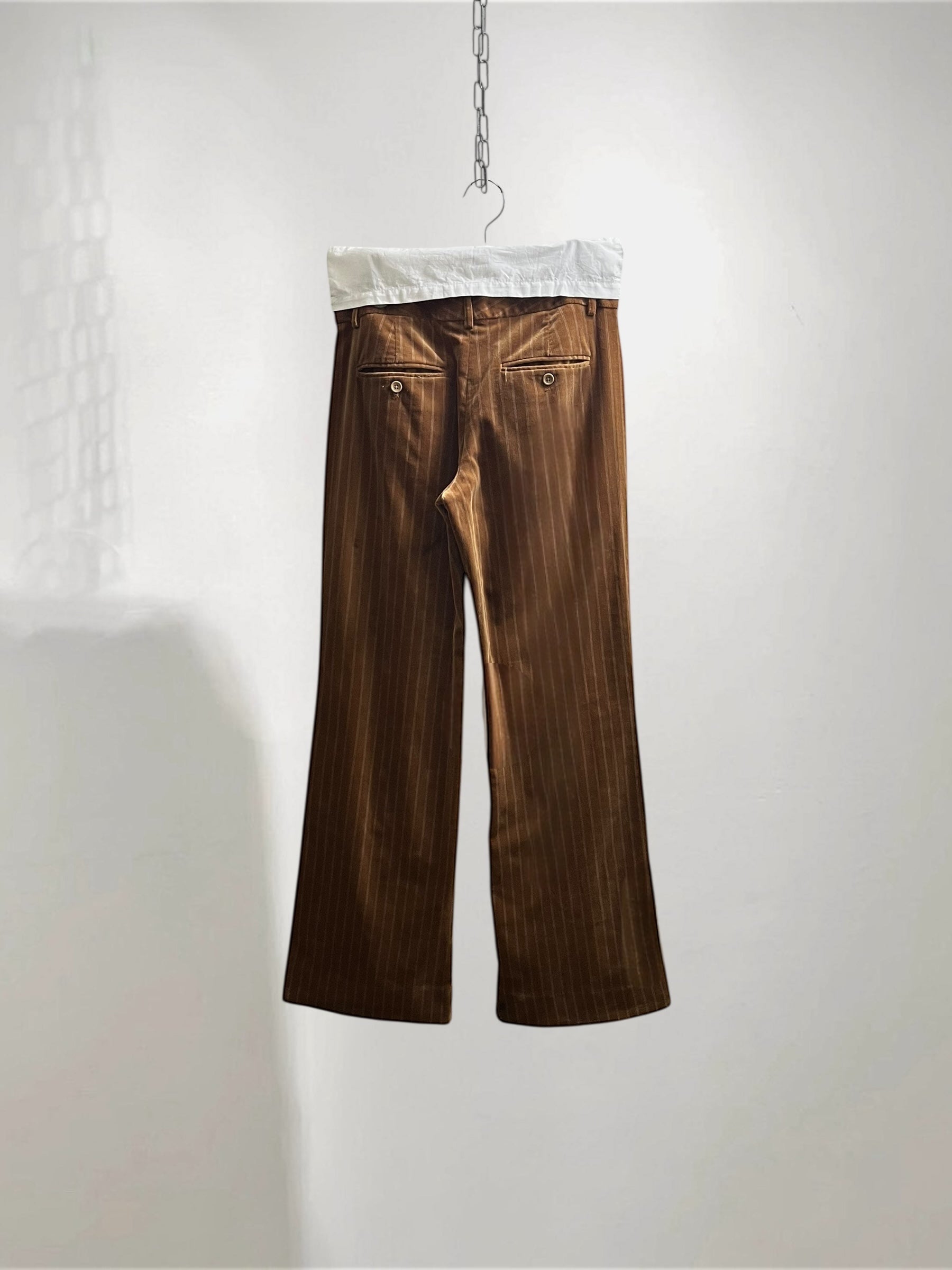 Brown Velvet Flared Pants with Pinstripe (Late 90s–Early 2000s) – Refined Color Contrast