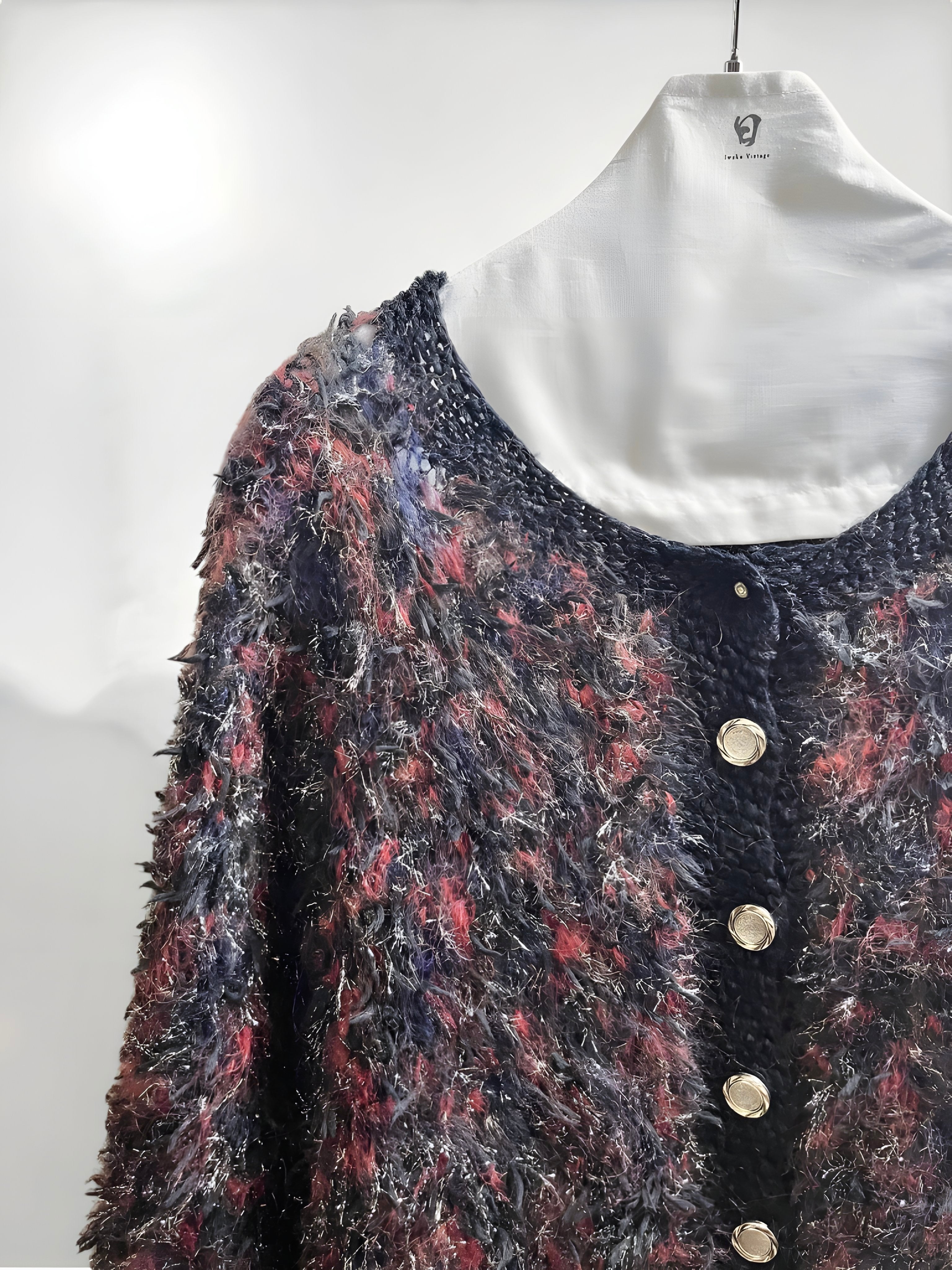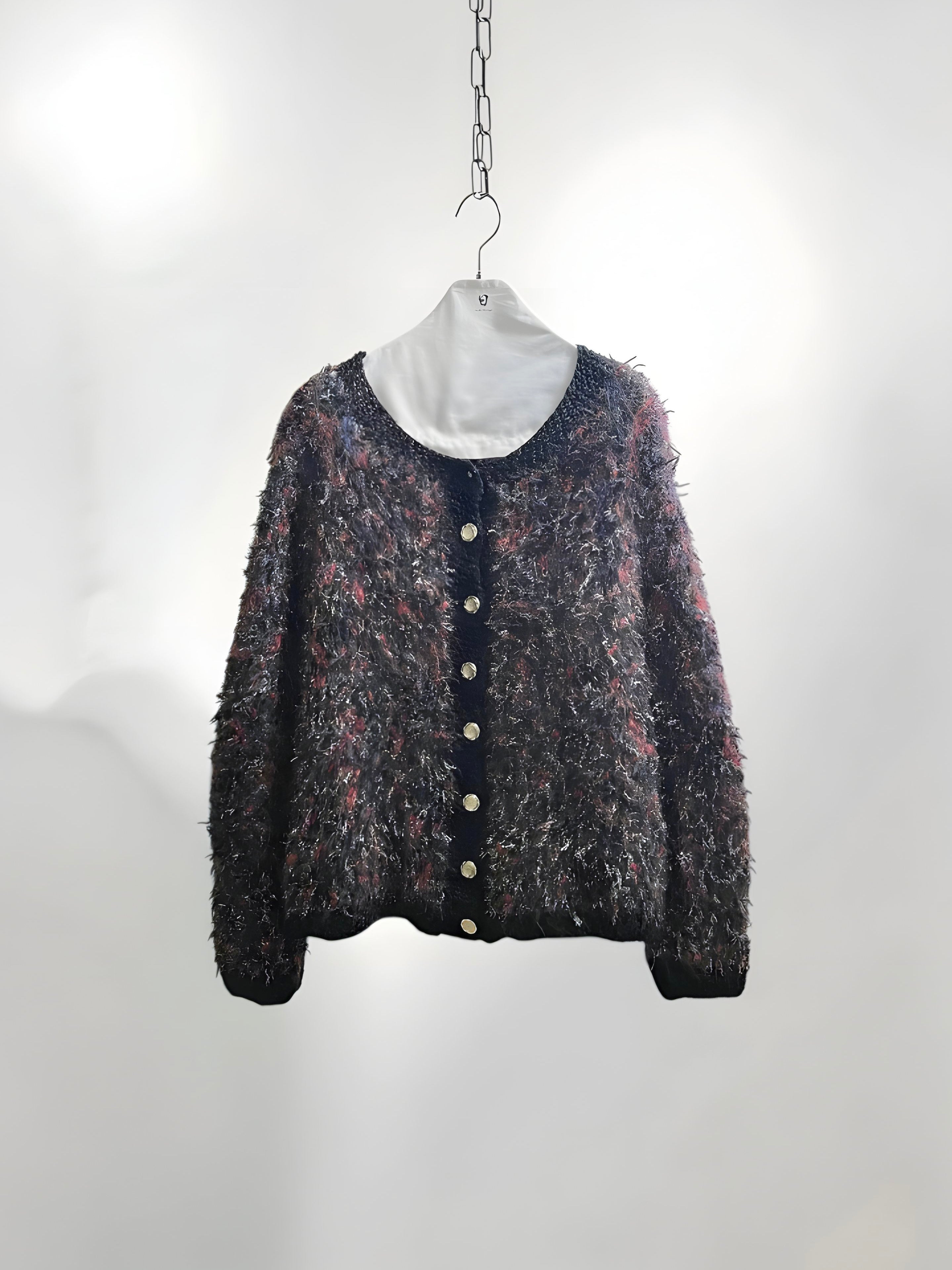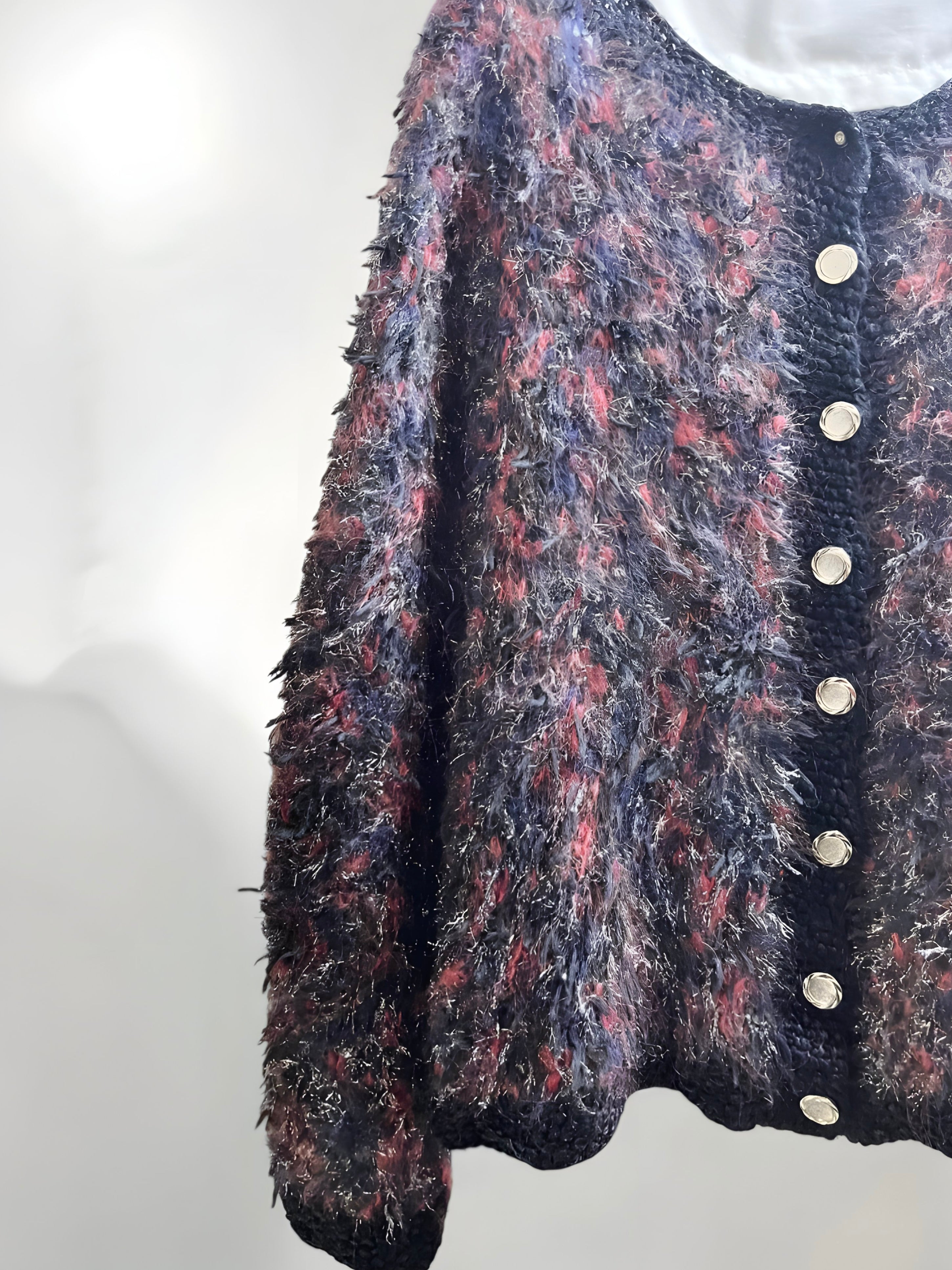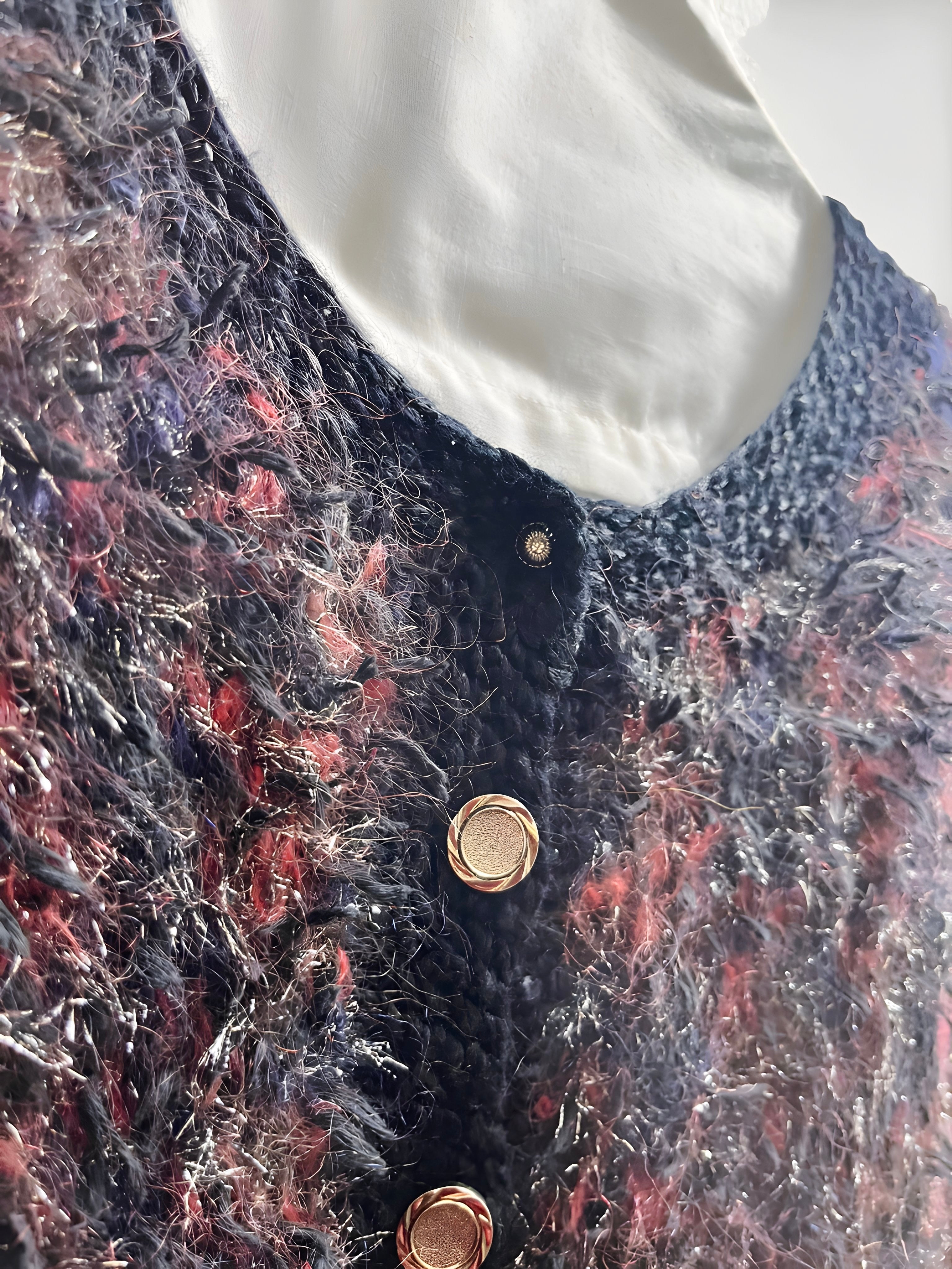Vintage Mohair Cardigan with Eyelash Knit and Gold-Tone Buttons (Late 80s–Early 90s) – Sculptural Texture
