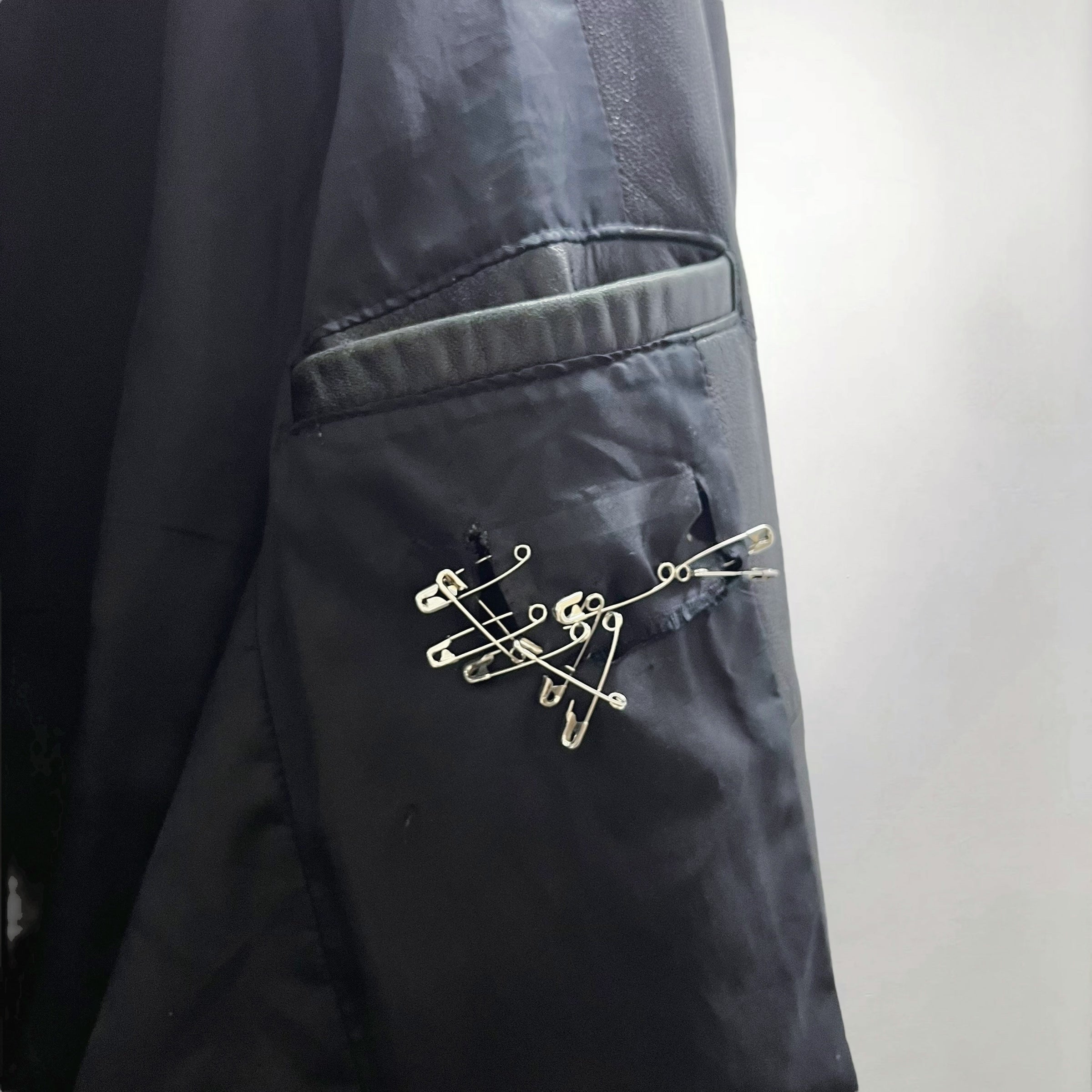Vintage Oversized Lamb Leather Tailored Jacket with Smooth Draping (90s)